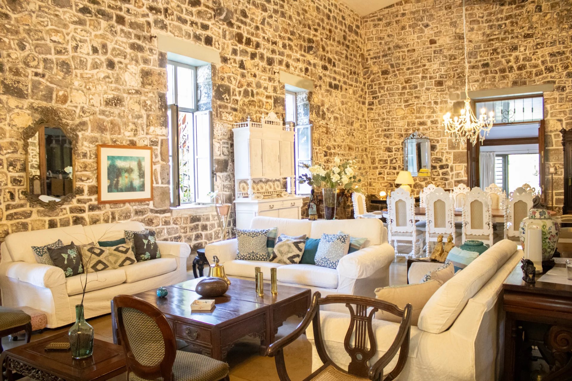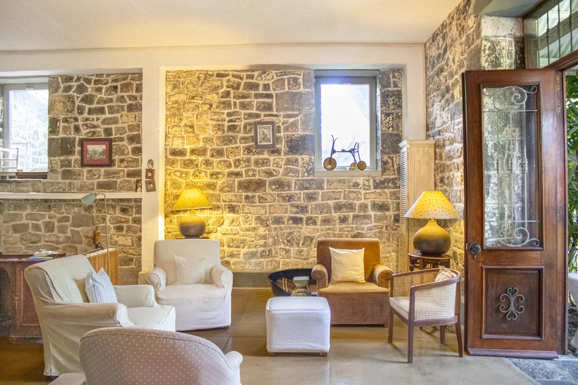 Une conversion magnifique et originale d'une ancienne distillerie en pierre, entourée d'une végétation luxuriante sur 3 arpents, comprenant deux maisons supplémentaires et des garages.