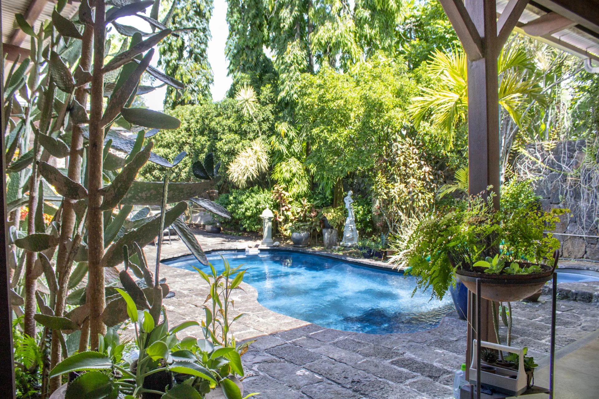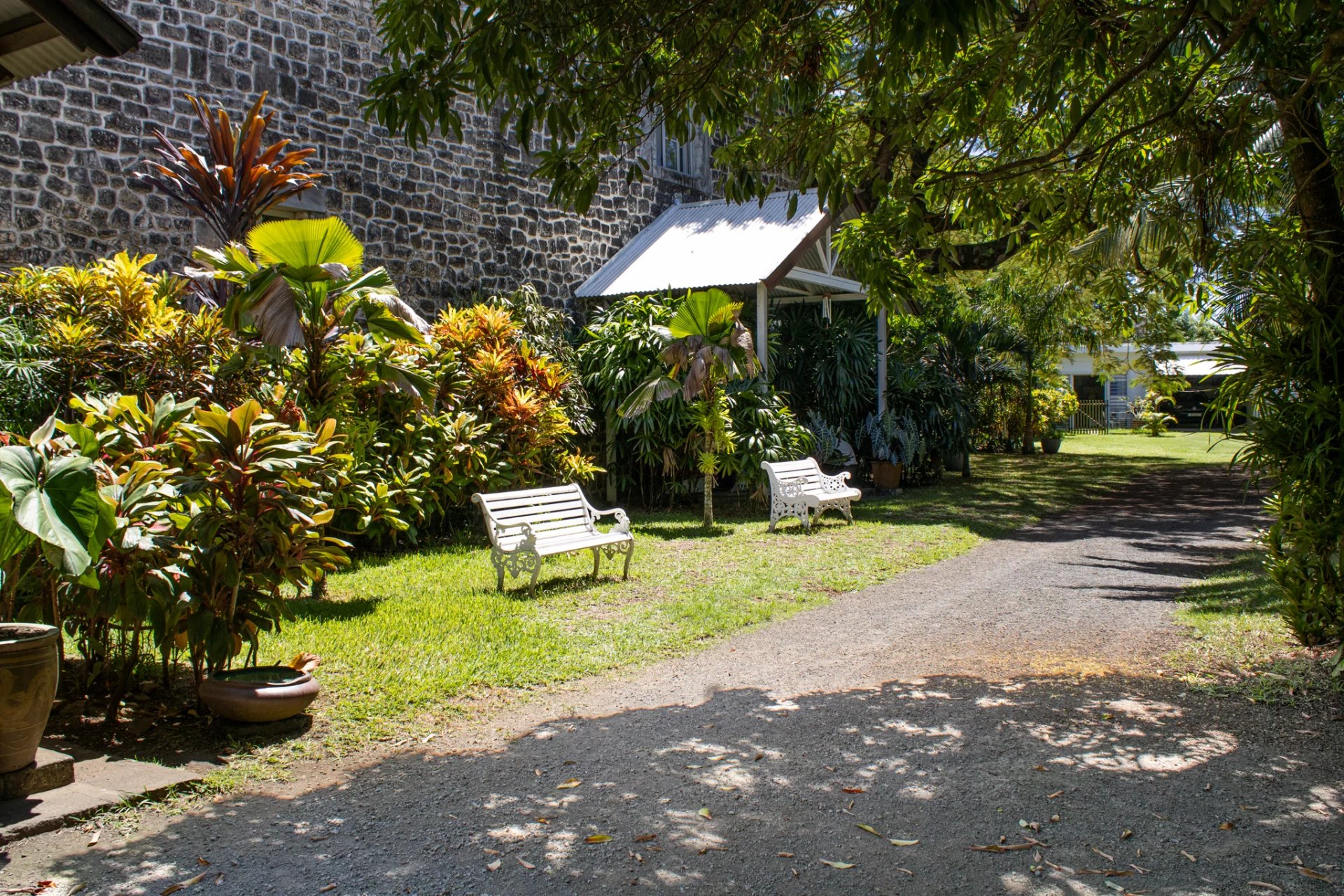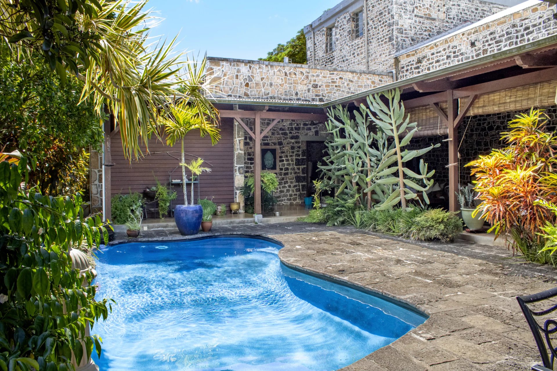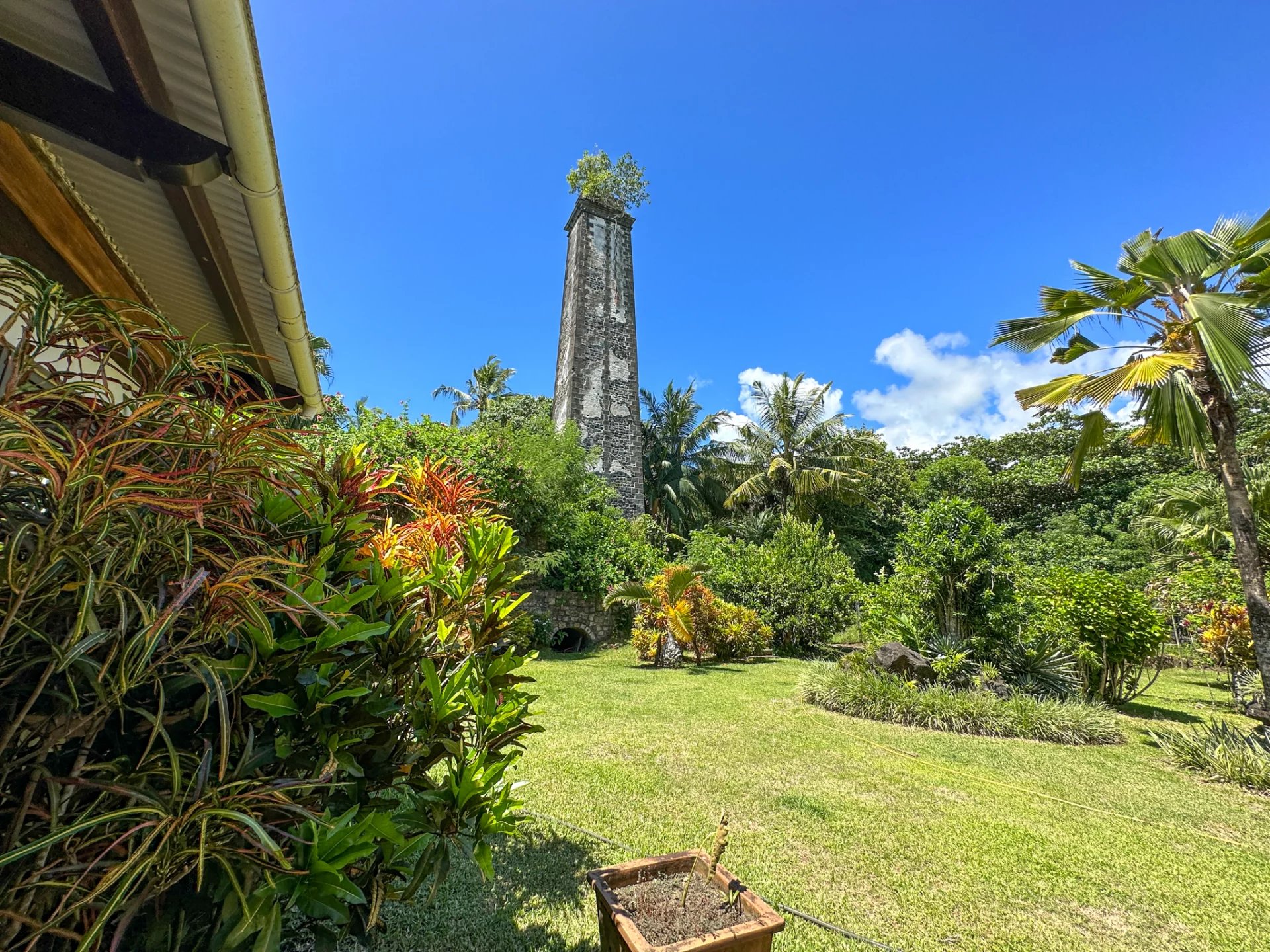Une superbe cheminée domine ce beau jardin.