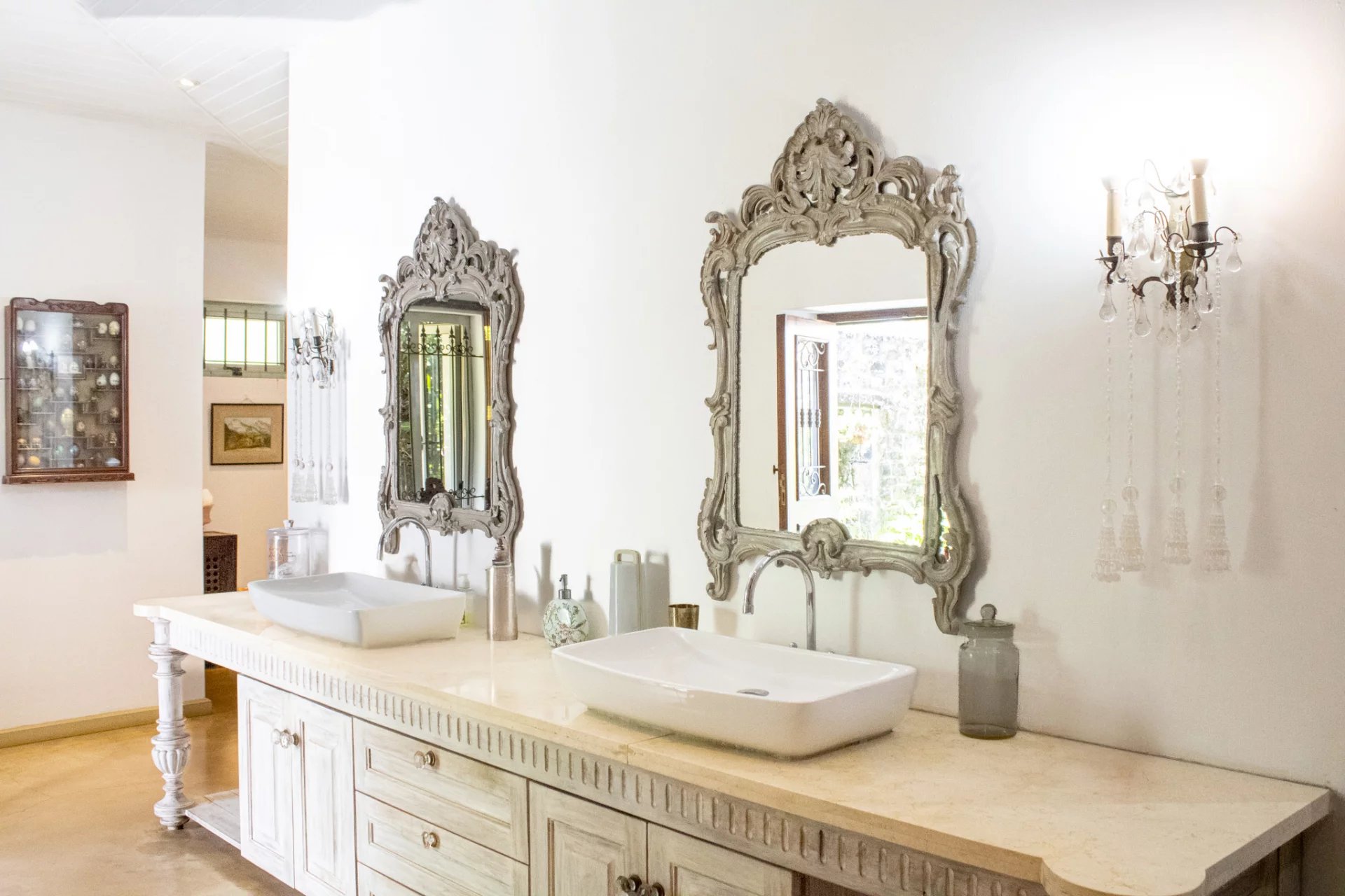 Deux grandes chambres principales avec salles de bains attenantes. Une chambre supplémentaire se trouve à l'étage.