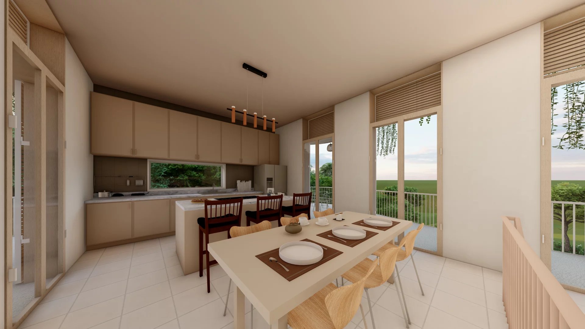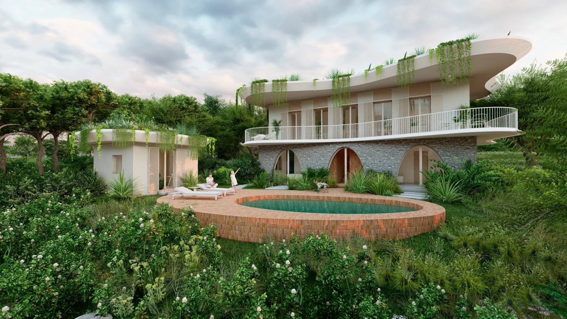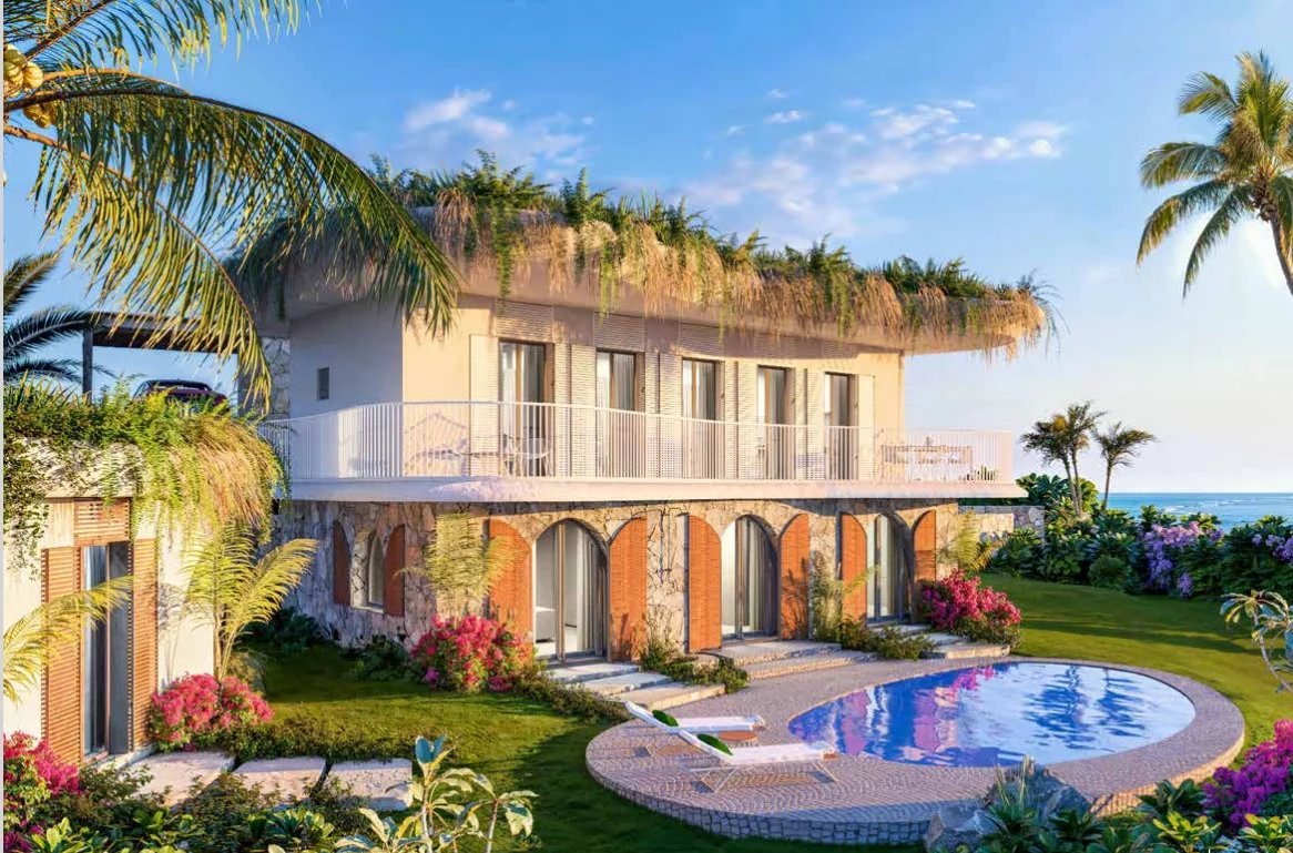 Le salon de 55 m², accessible directement depuis l'entrée, est situé au premier niveau. Cette disposition optimise la lumière naturelle, créant une atmosphère lumineuse et accueillante. Cette villa offre une vaste véranda de 60 m² sur laquelle les résidents pourront profiter de la vue imprenable sur le lagon.