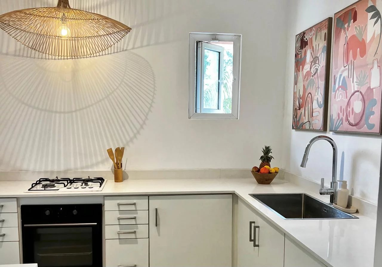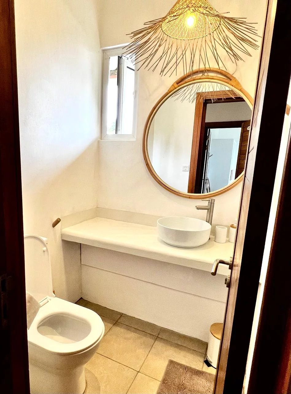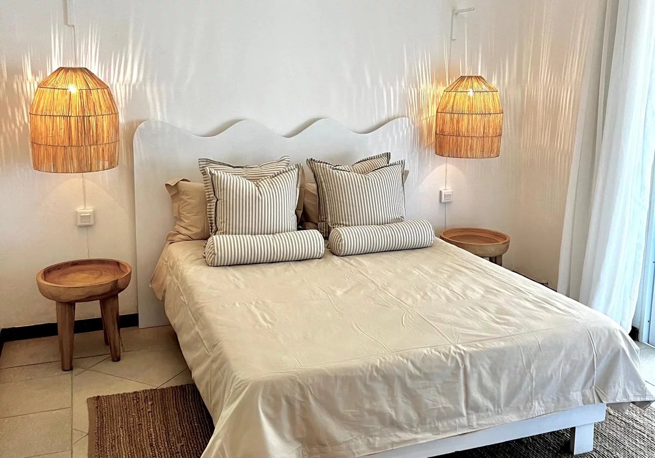 Situé dans la résidence prisée Jardin du Cap, à seulement quelques mètres de la plage publique de Bain Boeuf, ce bien rare se compose de deux unités entièrement rénovées :