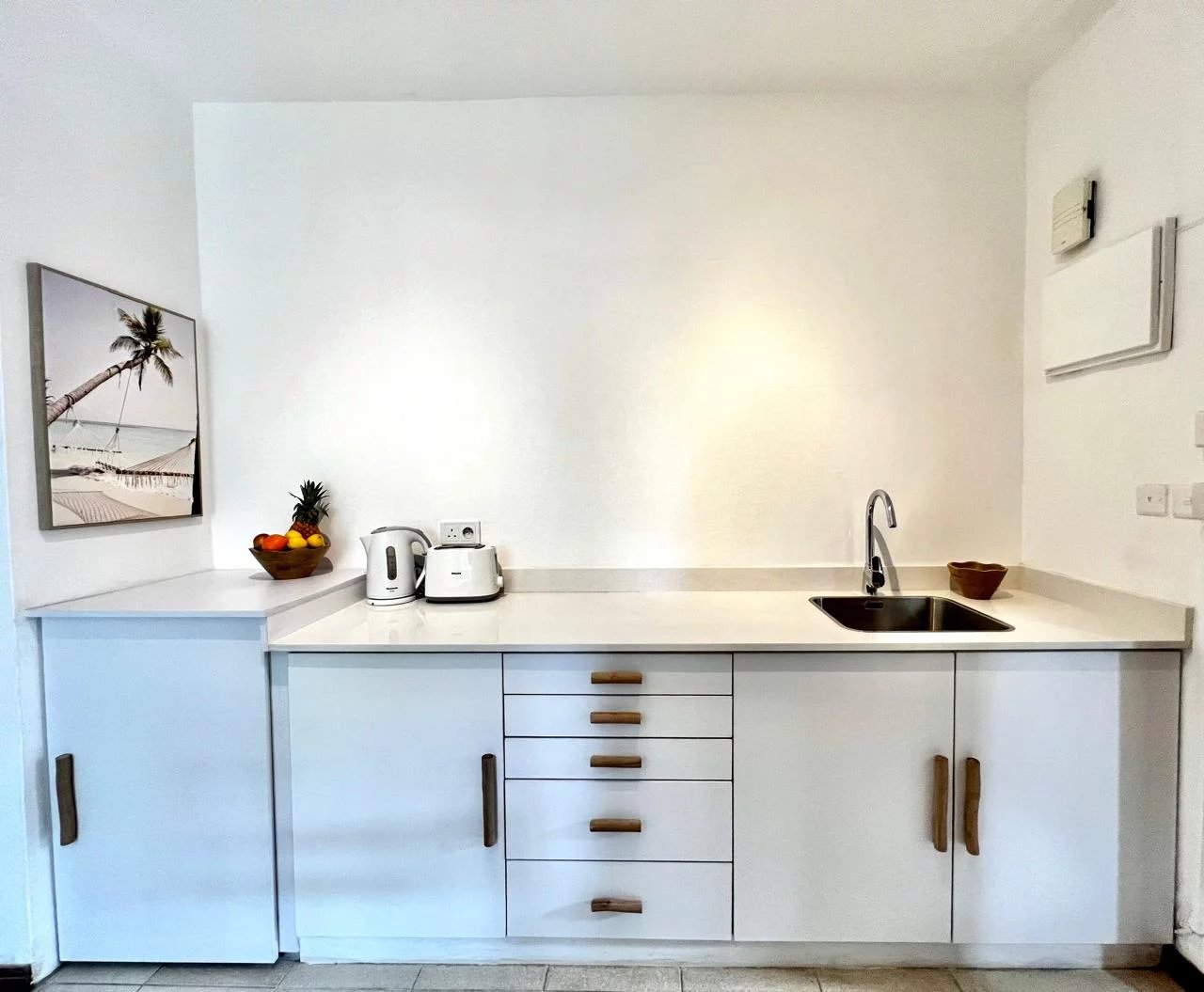 Le studio, totalement renové, comprend un canapé-lit, une cuisine et une salle de bain moderne.