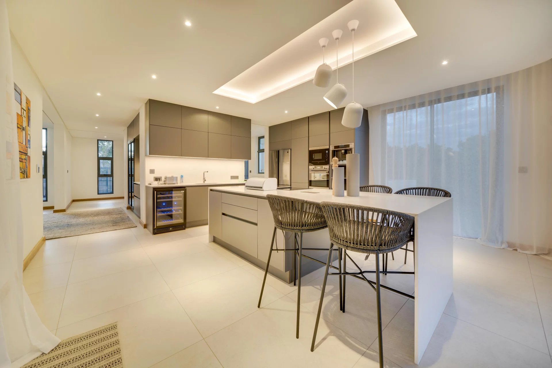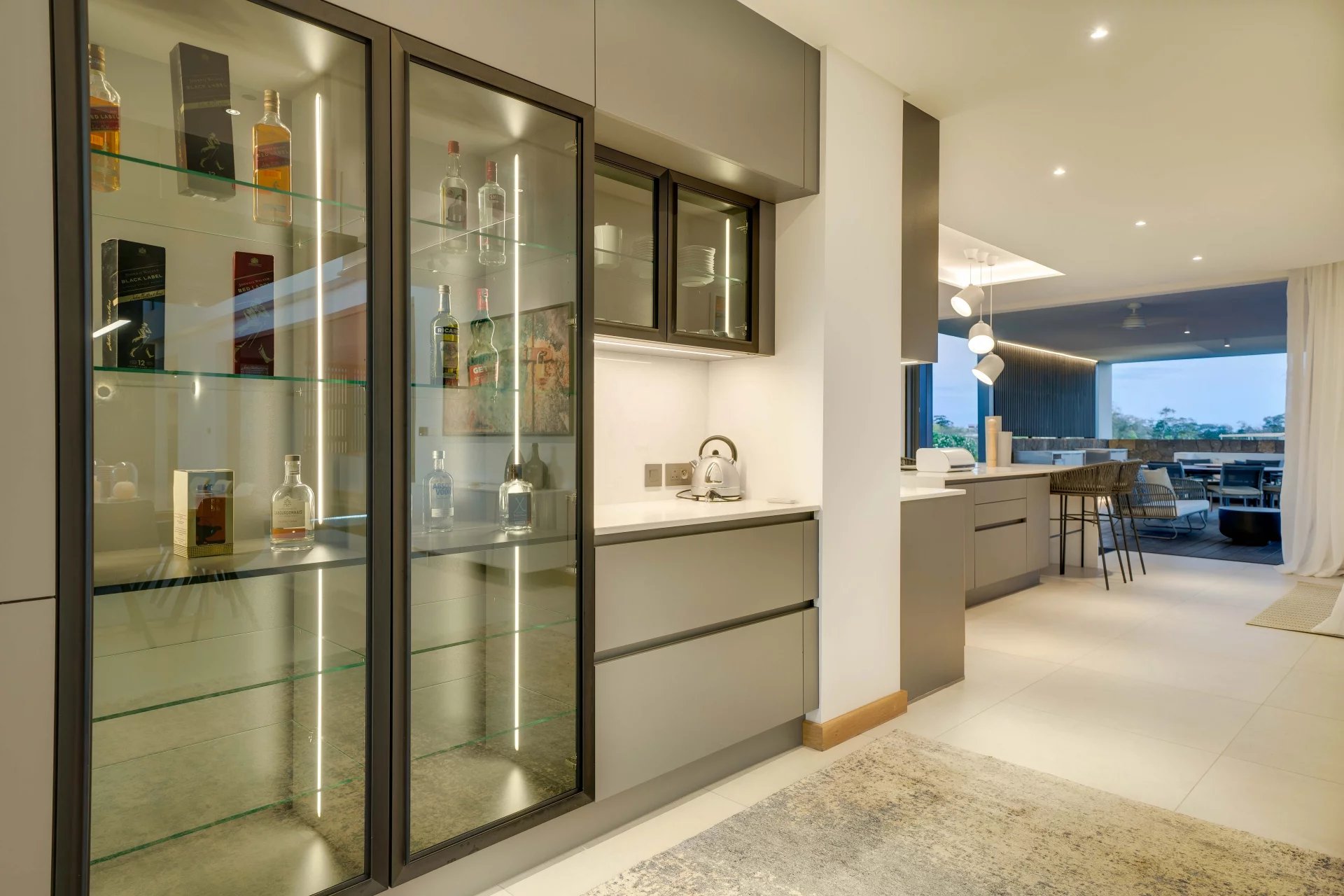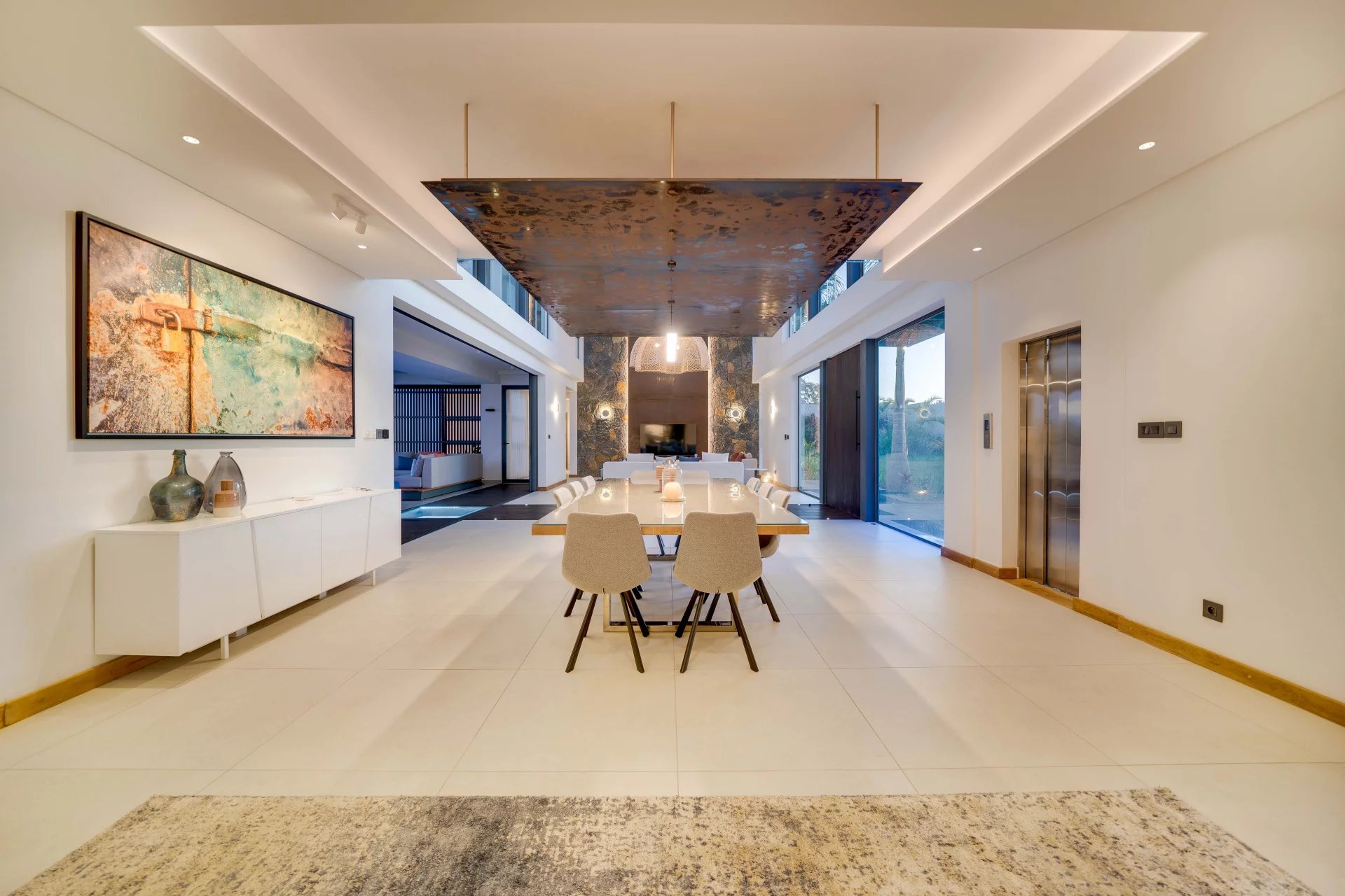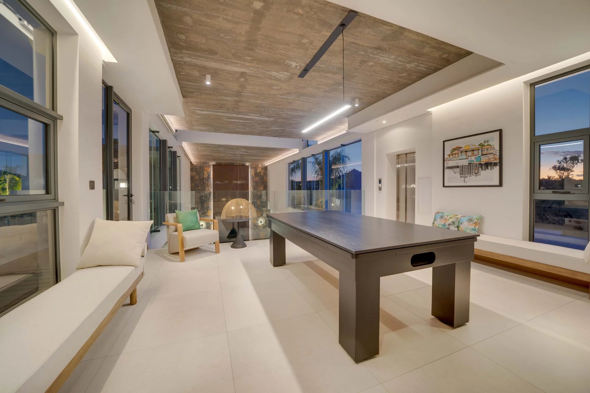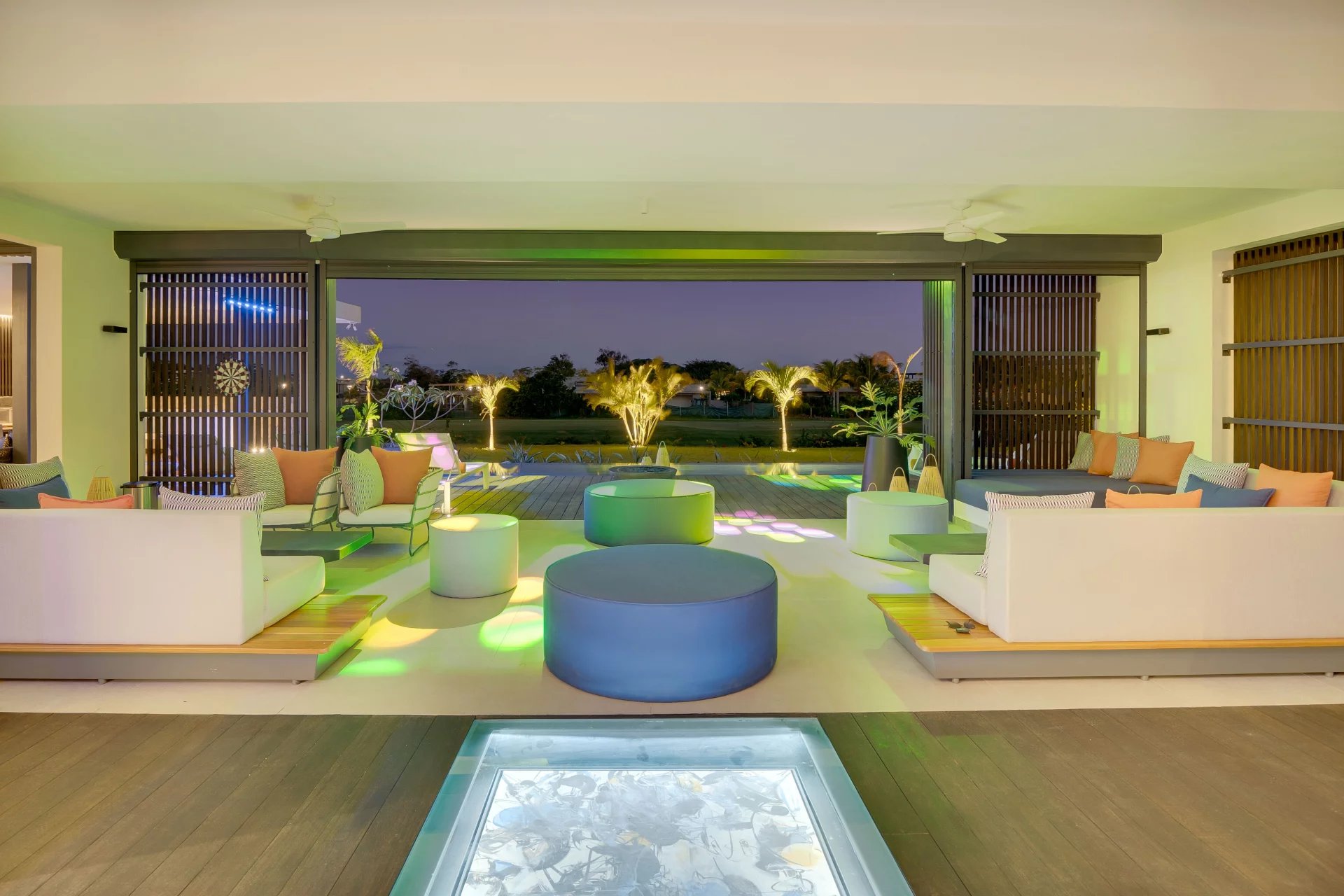 La domotique vous permettra le choix de vos ambiances, musiques et cascades à distance depuis votre smartphone. La nuit laissera place aux jeux de lumières qui donneront une dimension supplémentaire à cette villa d'exception.