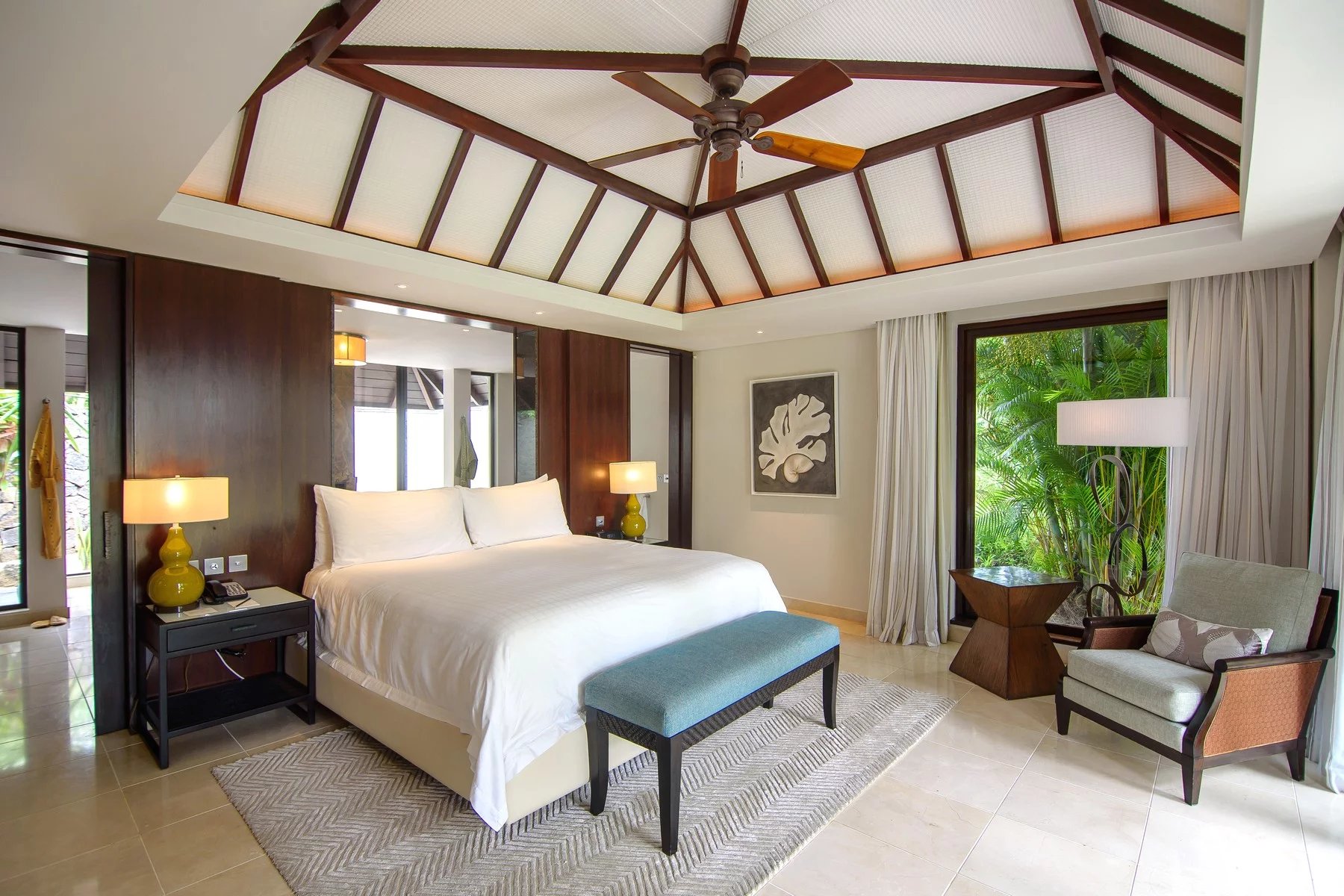 Cette villa se compose d'un séjour, salle à manger, cuisine, deux chambres spacieuses avec salle de bains privative, chacune avec jardin privé et douche extérieure. Située à deux pas de la mer, cette villa d'une superficie de 215 m² sur un terrain d'environ 1 350 m² offre une vue imprenable sur le golf et les montagnes.