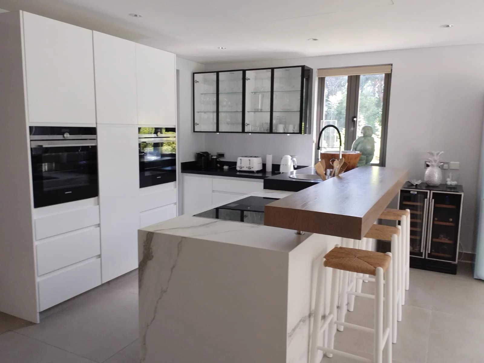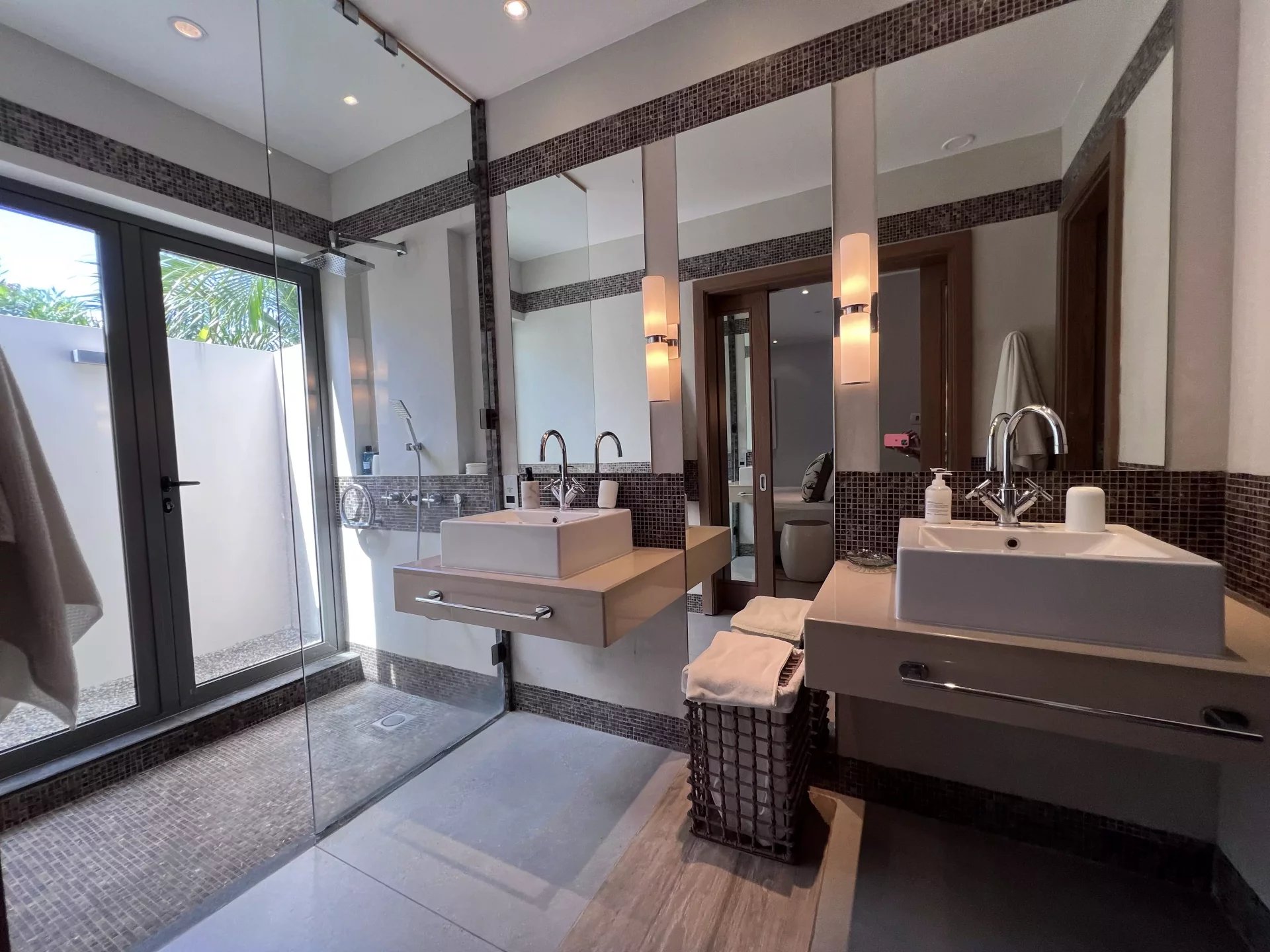 Elle se compose de 3 chambres en suite, chacune dotée de sa salle de bains moderne et ouvrant sur un jardin paisible. Les espaces de vie incluent un séjour et une salle à manger de 30 m², une cuisine ouverte de 40 m², parfaitement équipée, ainsi qu’une arrière-cuisine et une buanderie.