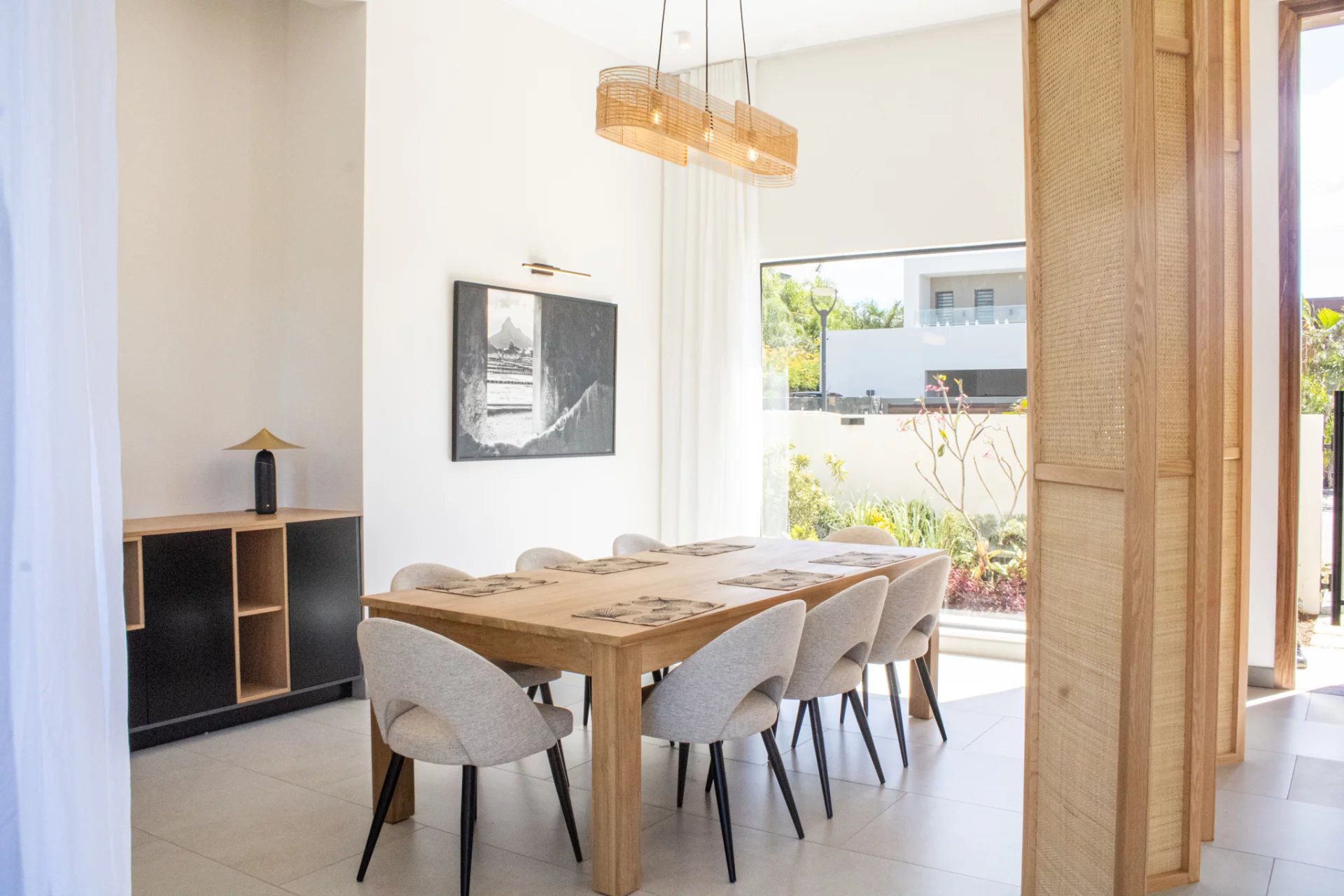 Nichée au cœur du quartier Hedonia, cette villa de 410 m² propose un art de vivre raffiné au sein du domaine Anahita. Elle bénéficie d’un terrain de 1 740 m² avec jardin paysager, piscine à débordement et vues dégagées sur les collines et le golf.