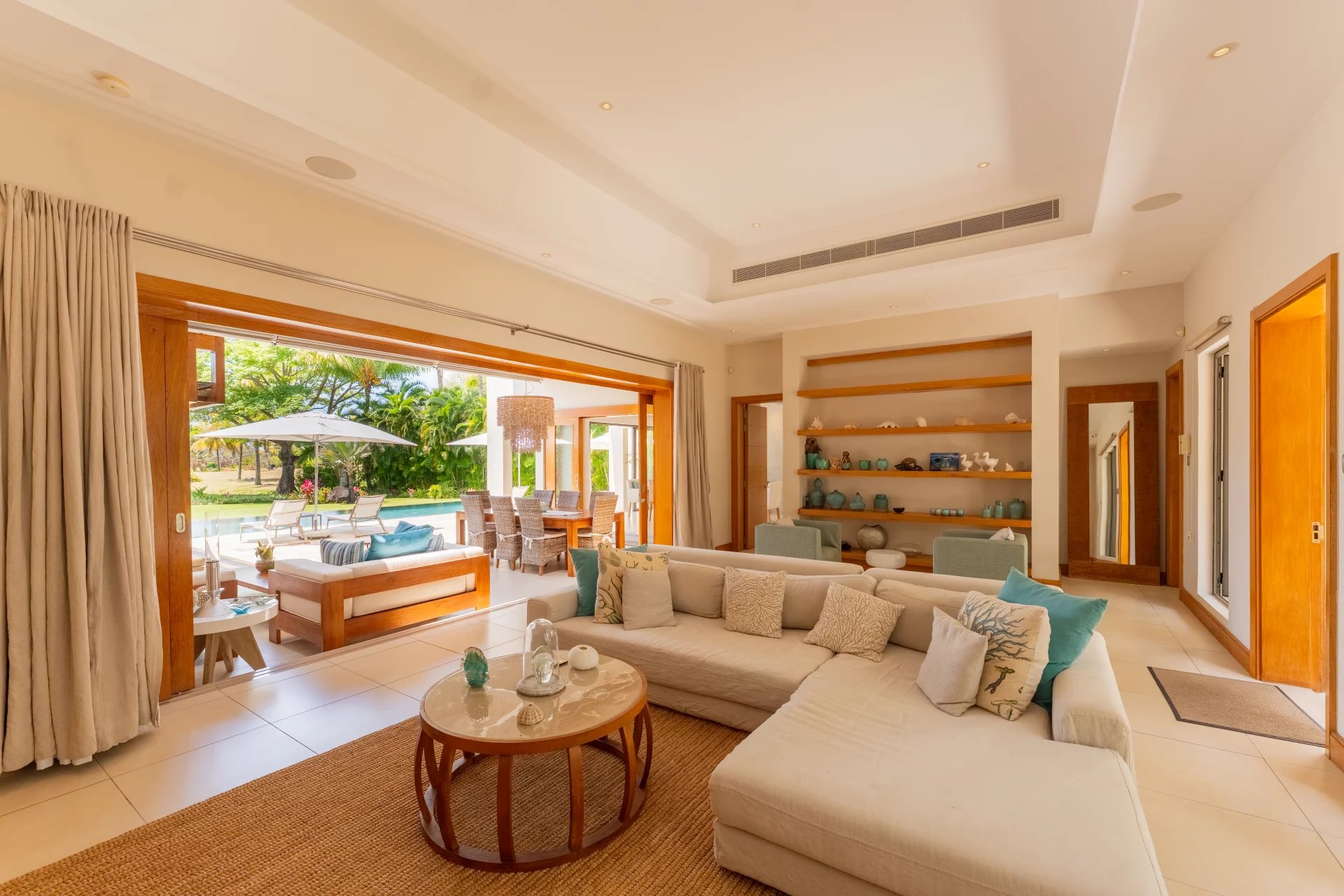 Située au cœur du prestigieux domaine sécurisé d’Anahita Golf & Resort, cette splendide villa de plain-pied d’environ 450 m² habitables, implantée sur un terrain paysager de 2 134 m², offre un cadre de vie rare, alliant confort, élégance et sérénité. La pièce de vie principale séduit par ses volumes généreux et sa luminosité naturelle. La cuisine ouverte sur la salle à manger crée un espace convivial et contemporain, idéal pour recevoir. L’ensemble s’ouvre sur une vaste terrasse prolongée par un jardin tropical soigneusement aménagé et une grande piscine, offrant une vue imprenable sur le parcours de golf et une atmosphère paisible sans aucun vis-à-vis. La villa dispose de quatre chambres en suite, toutes de plain-pied et avec accès direct à l’extérieur, garantissant intimité et confort pour chaque occupant. Une buanderie et un garage fermé avec de nombreux espaces de stockage complètent ce bien d’exception. Entièrement meublée, en parfait état et sans aucun travaux à prévoir, la propriété est vendue avec sa voiturette de golf et un abonnement au golf d’Anahita, offrant un accès privilégié à toutes les infrastructures du domaine : golf signé Ernie Els, restaurants, bars, plages privées et accès à l’île aux Cerfs. À quelques pas seulement des restaurants et de la plage, cette villa bénéficie d’une situation de rêve sur le golf et incarne parfaitement l’art de vivre mauricien, alliant luxe discret, modernité et douceur tropicale dans un cadre exceptionnel.