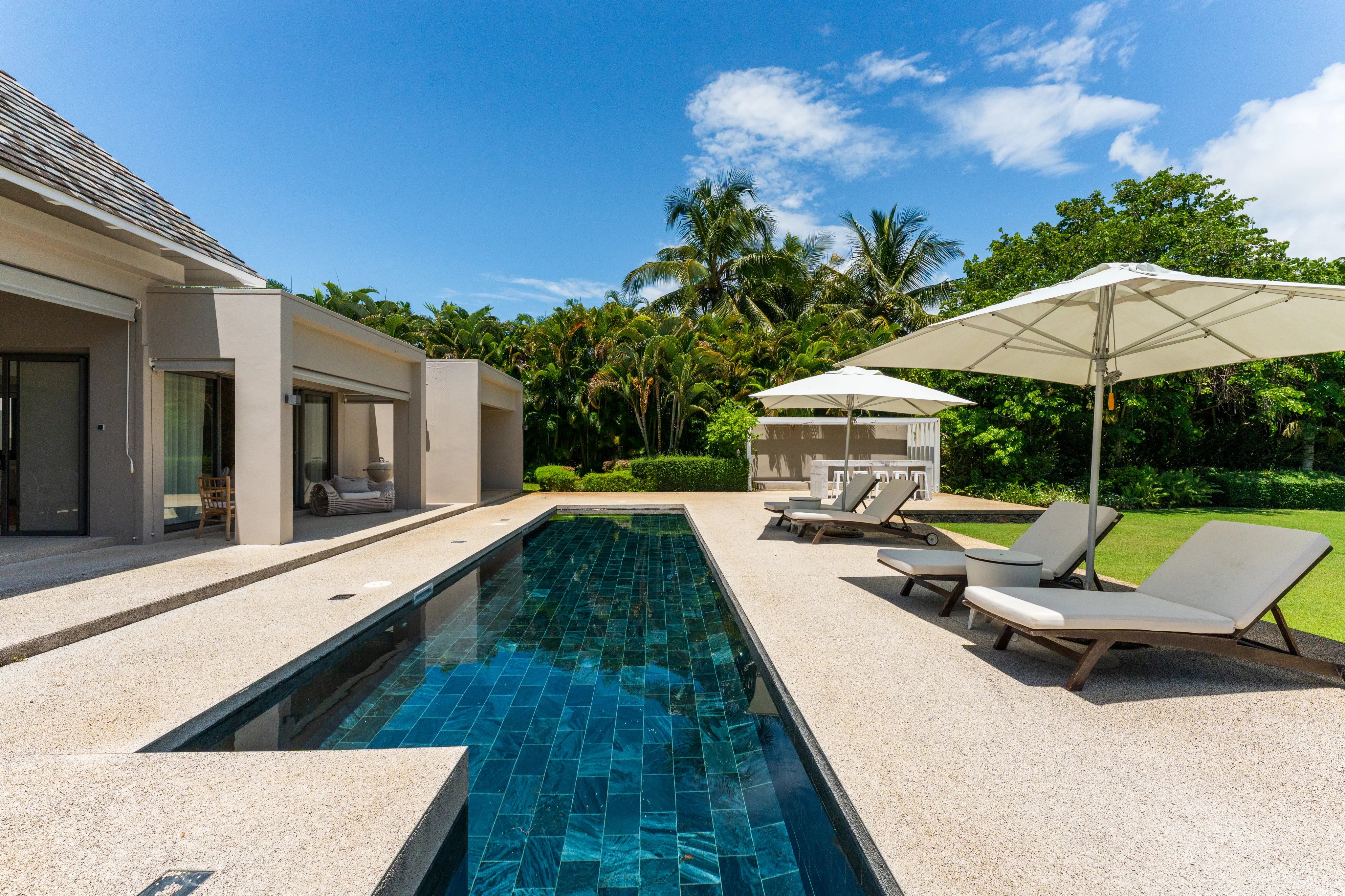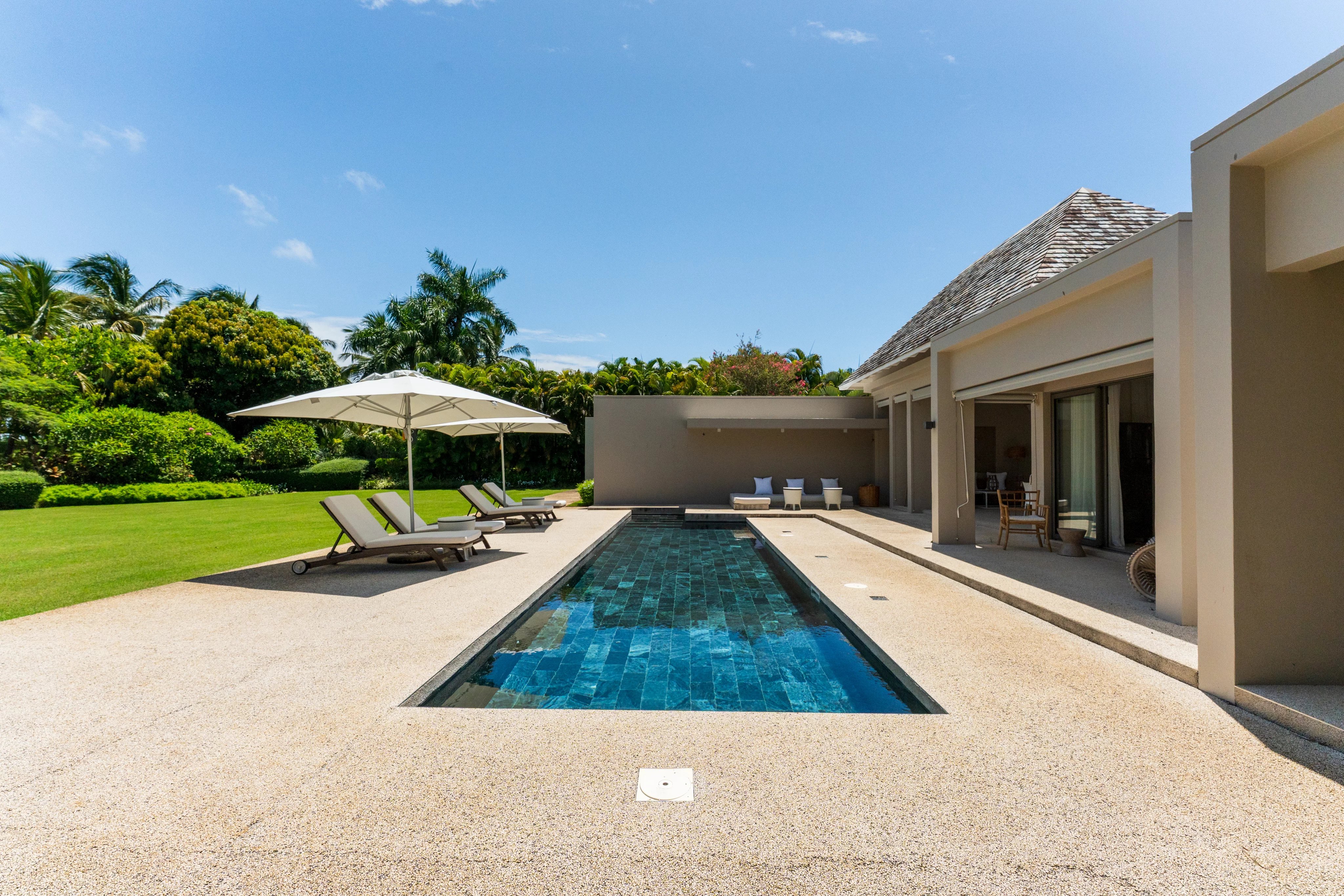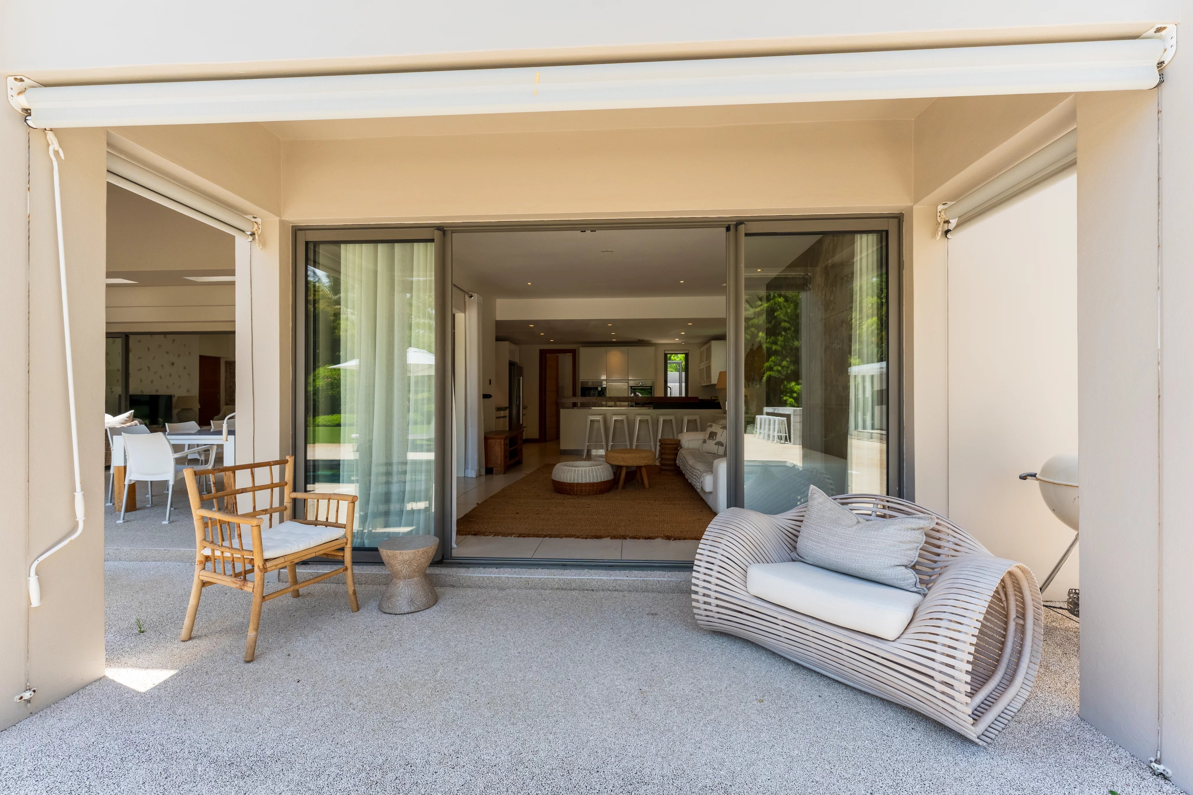 La villa principale comprend un hall d’entrée, deux salons lumineux, une cuisine ouverte entièrement équipée, une arrière-cuisine et une buanderie. Les espaces de vie s’ouvrent sur une vaste terrasse donnant sur un splendide jardin et une piscine, offrant une atmosphère apaisante et une vue dégagée sur le parcours de golf.