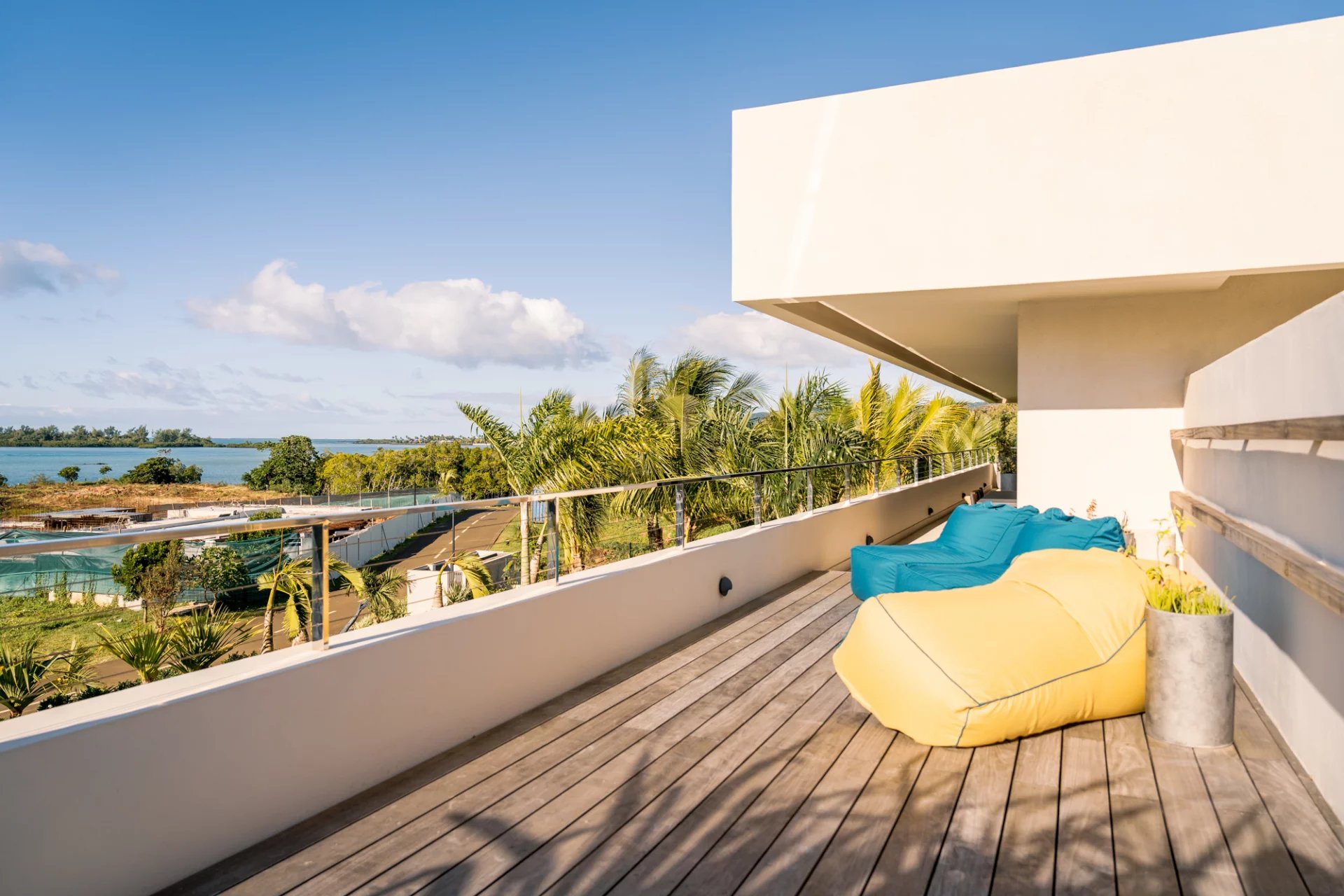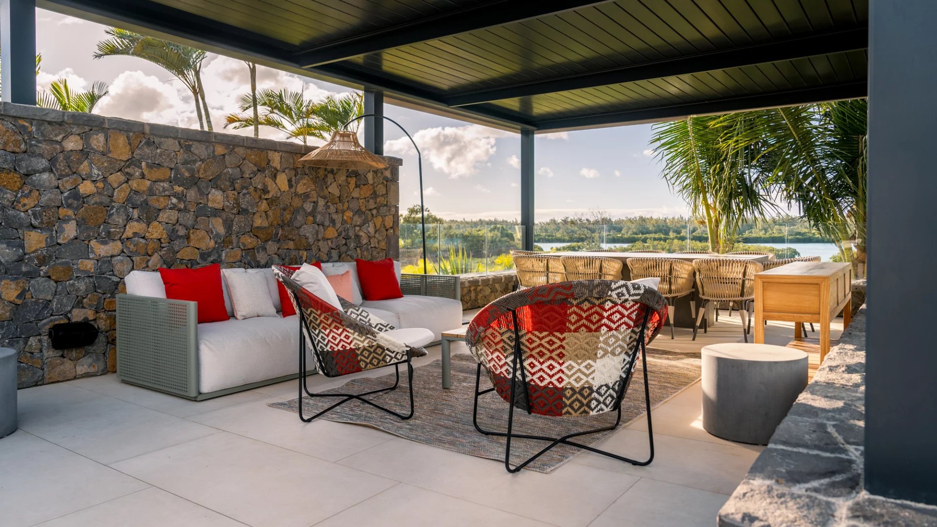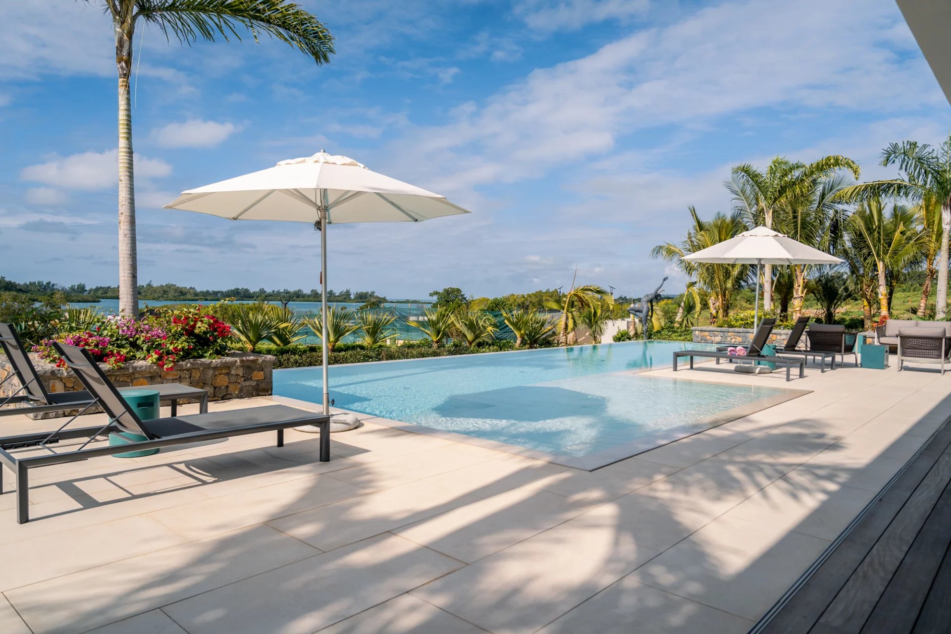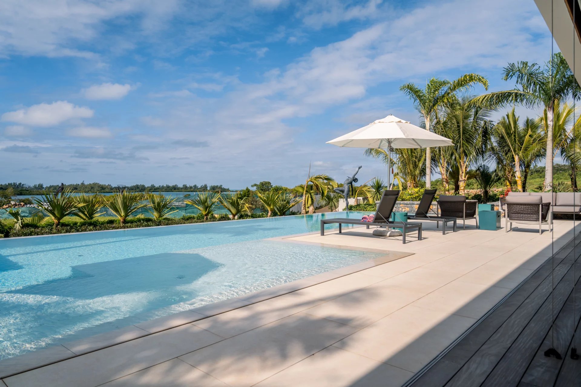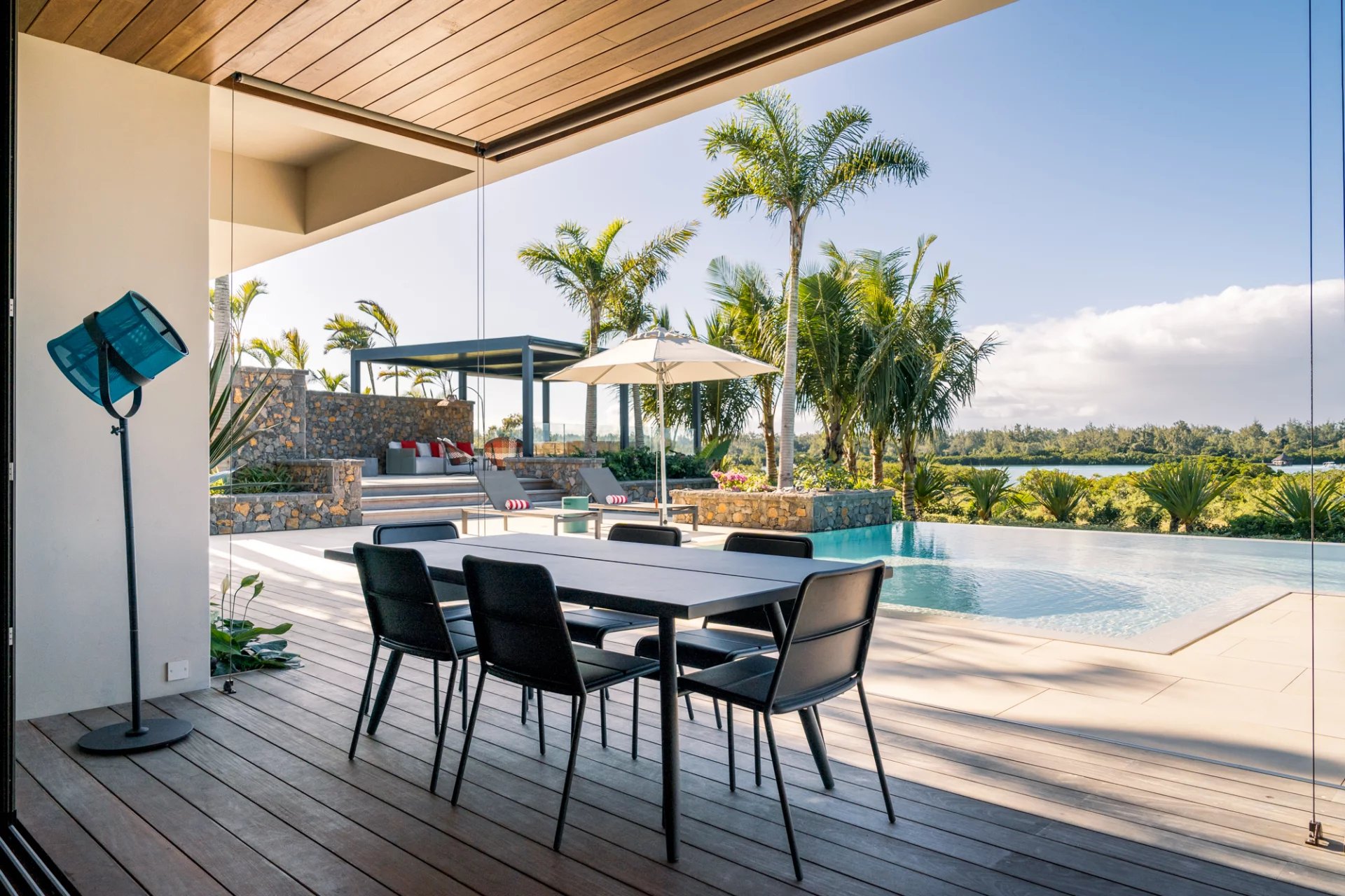 De larges vérandas modernes pour profiter de l’époustouflante vue sur le lagon.