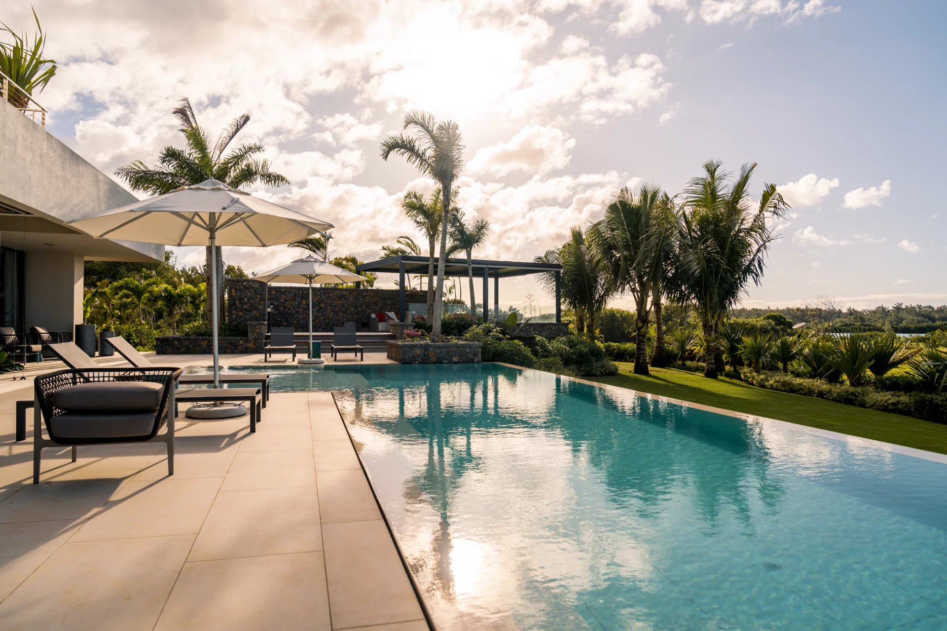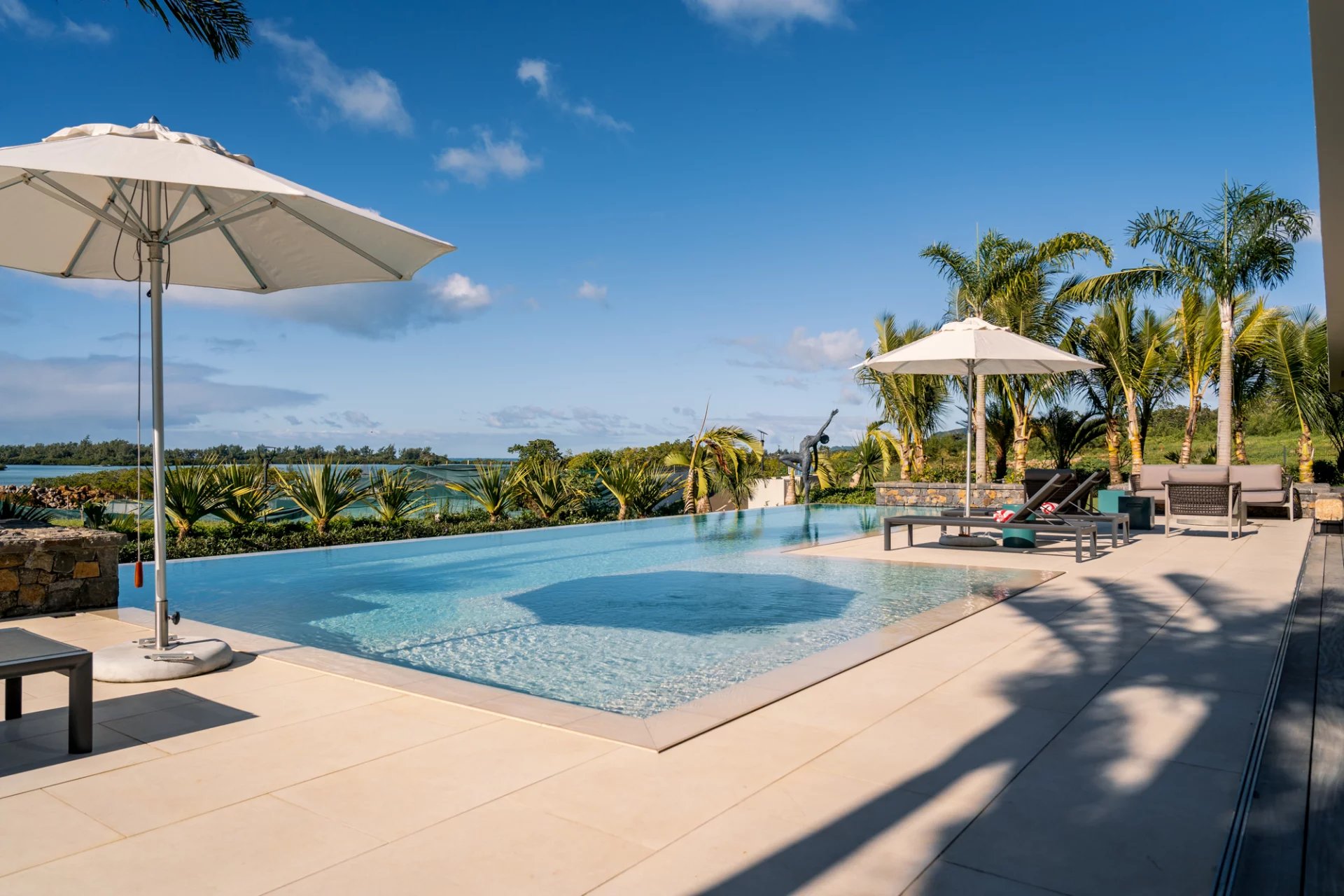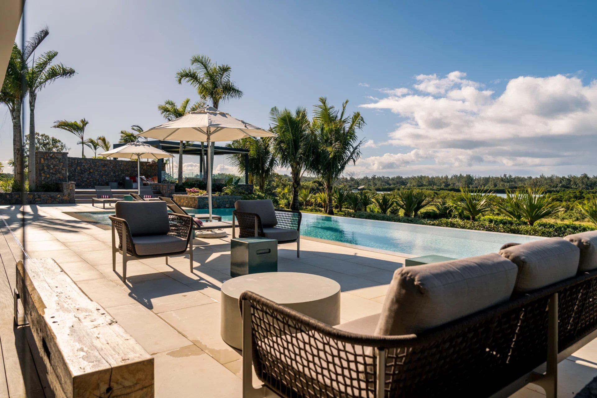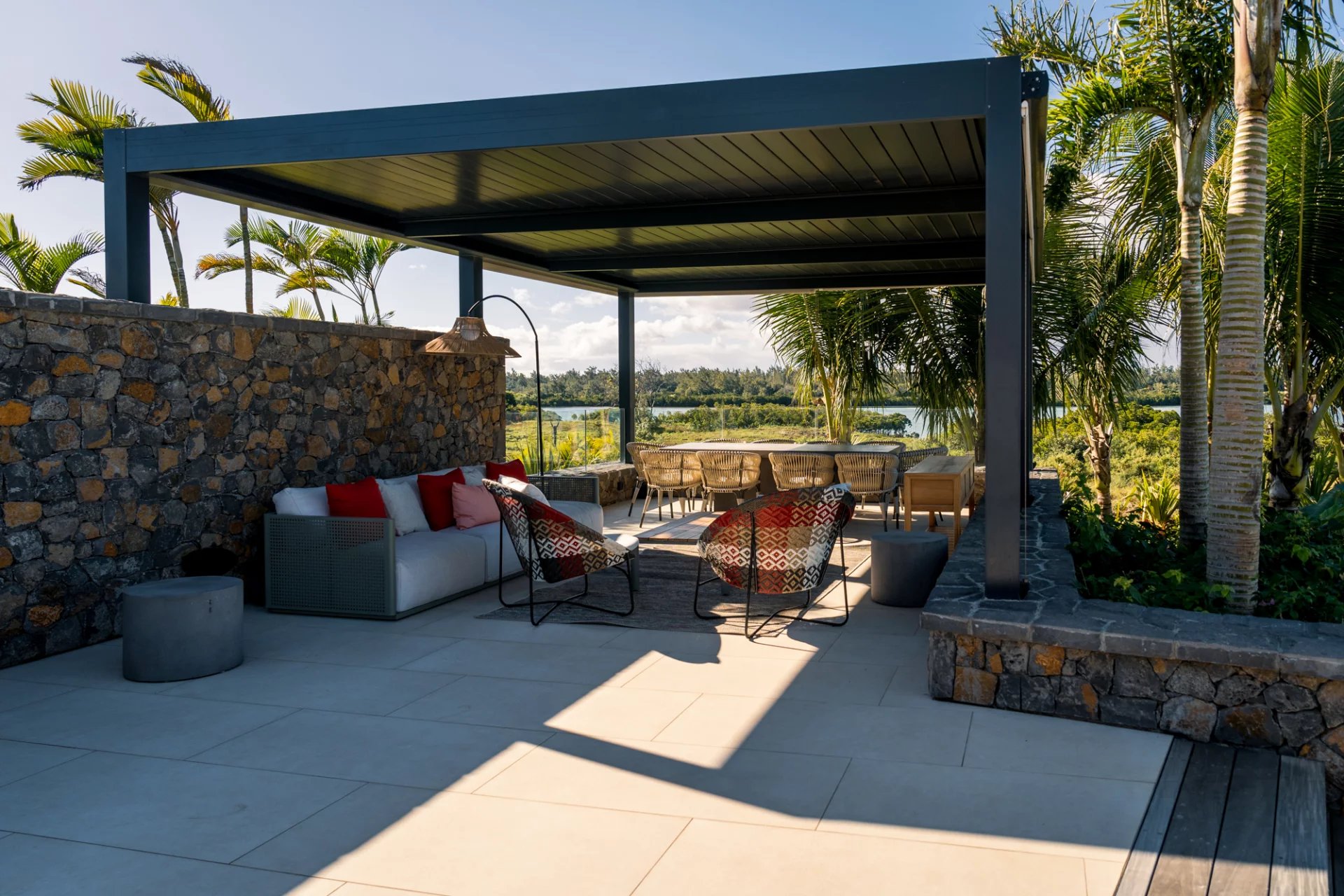 De larges vérandas modernes pour profiter de l’époustouflante vue sur le lagon.