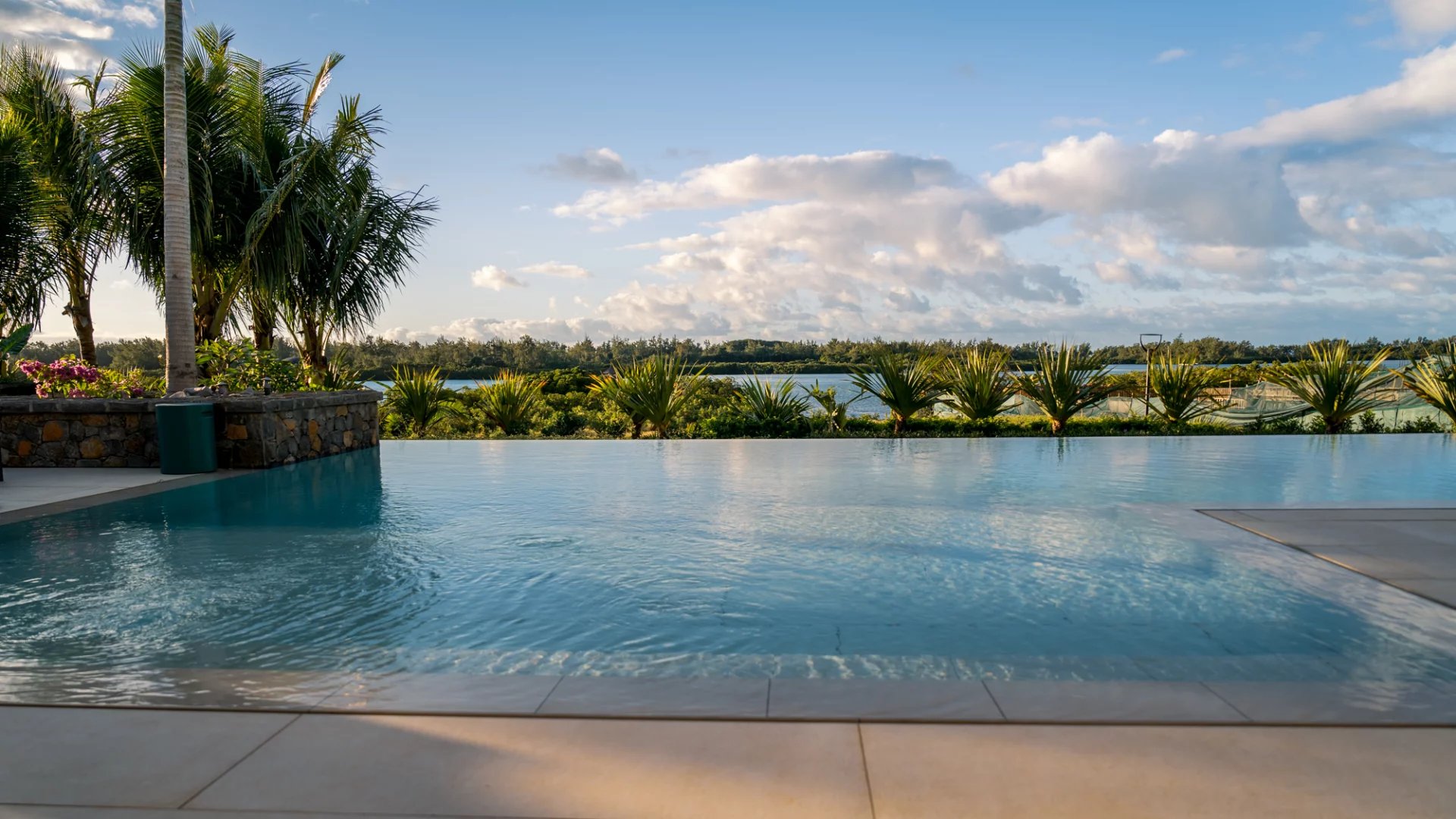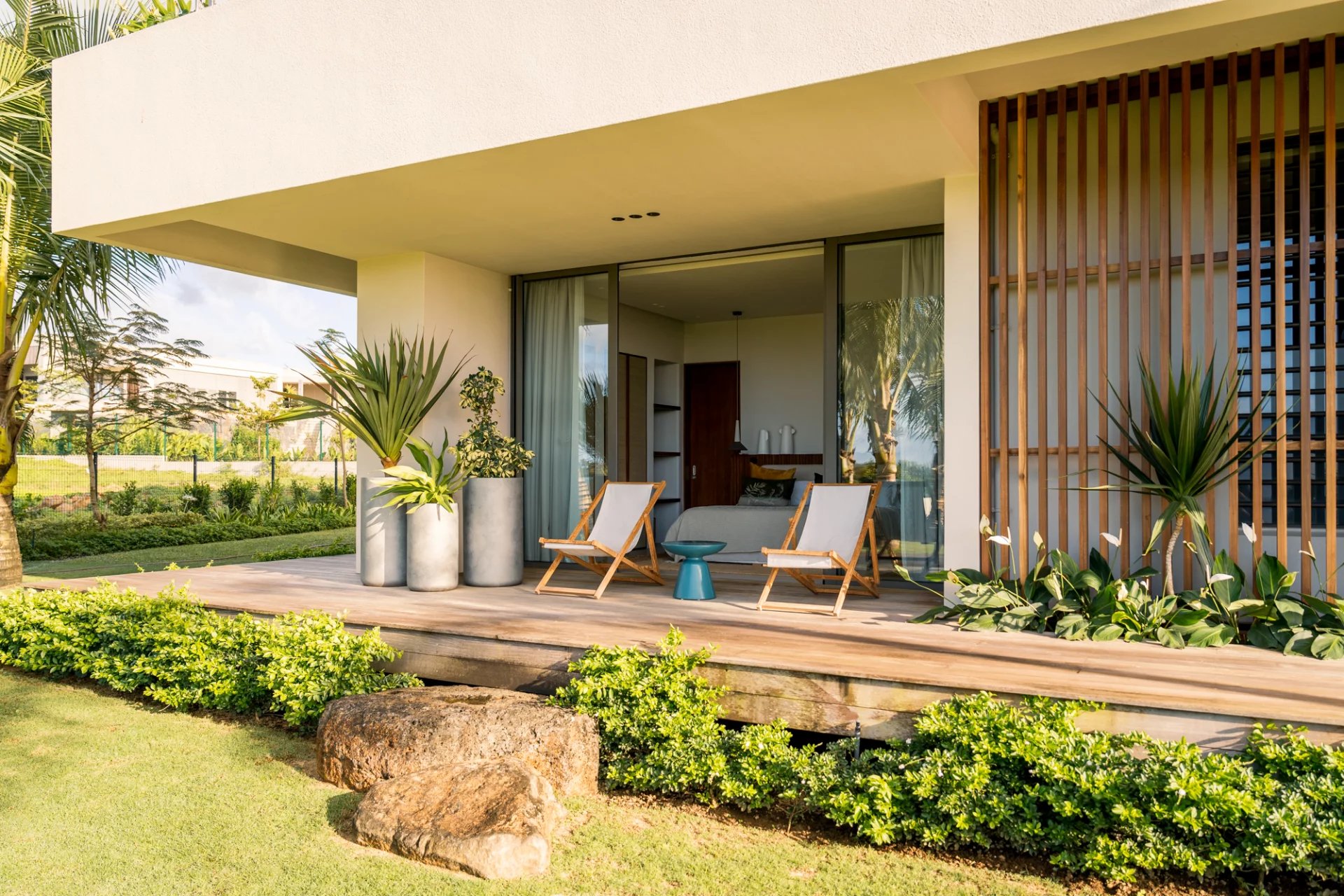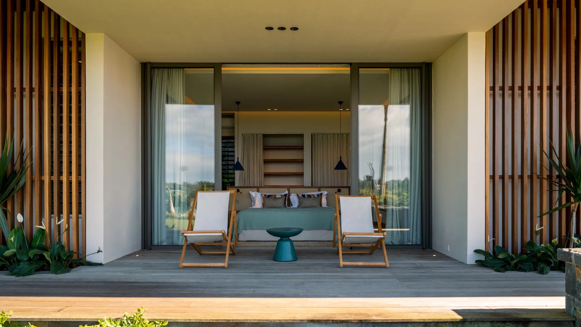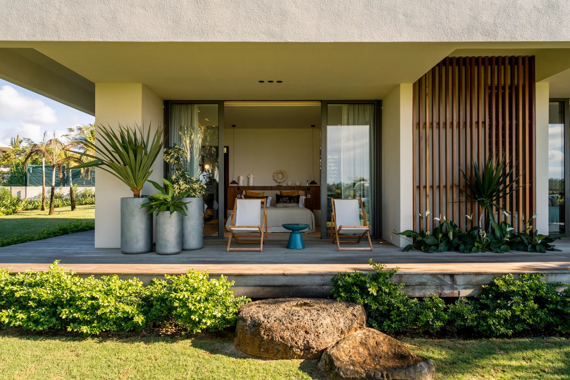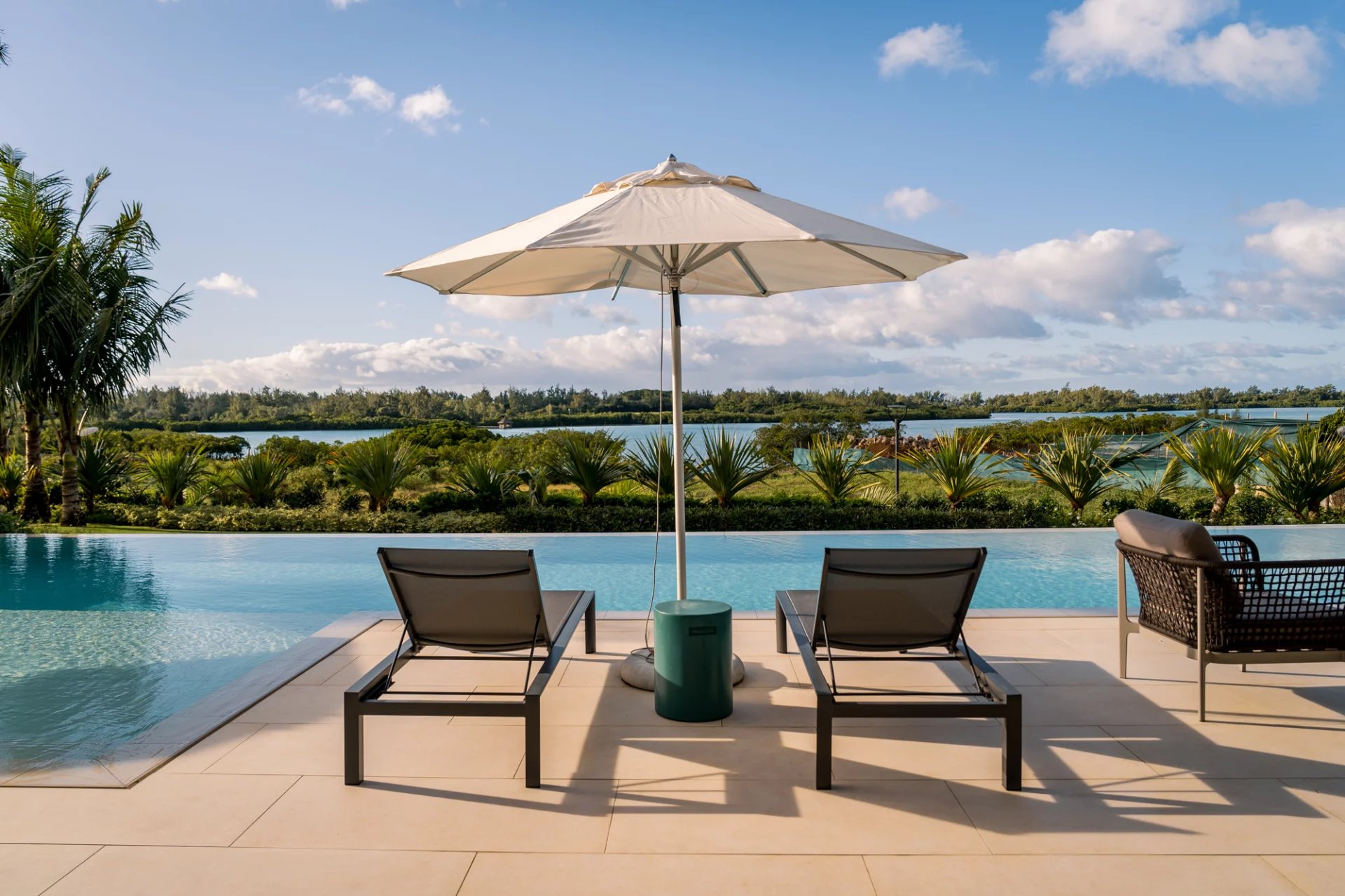 De larges vérandas modernes pour profiter de l’époustouflante vue sur le lagon.