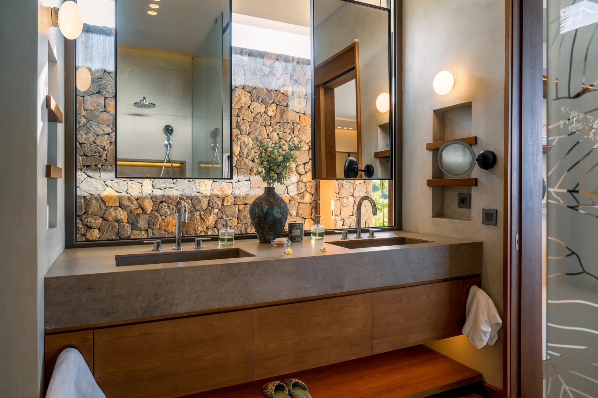 Construite en 2022, cette villa respire la chaleur et l’élégance grâce à des matériaux naturels tels que le bois, la pierre et le béton. Les vastes espaces de vie baignent dans une luminosité exceptionnelle, accentuée par un concept intérieur/extérieur fluide et des ouvertures panoramiques.