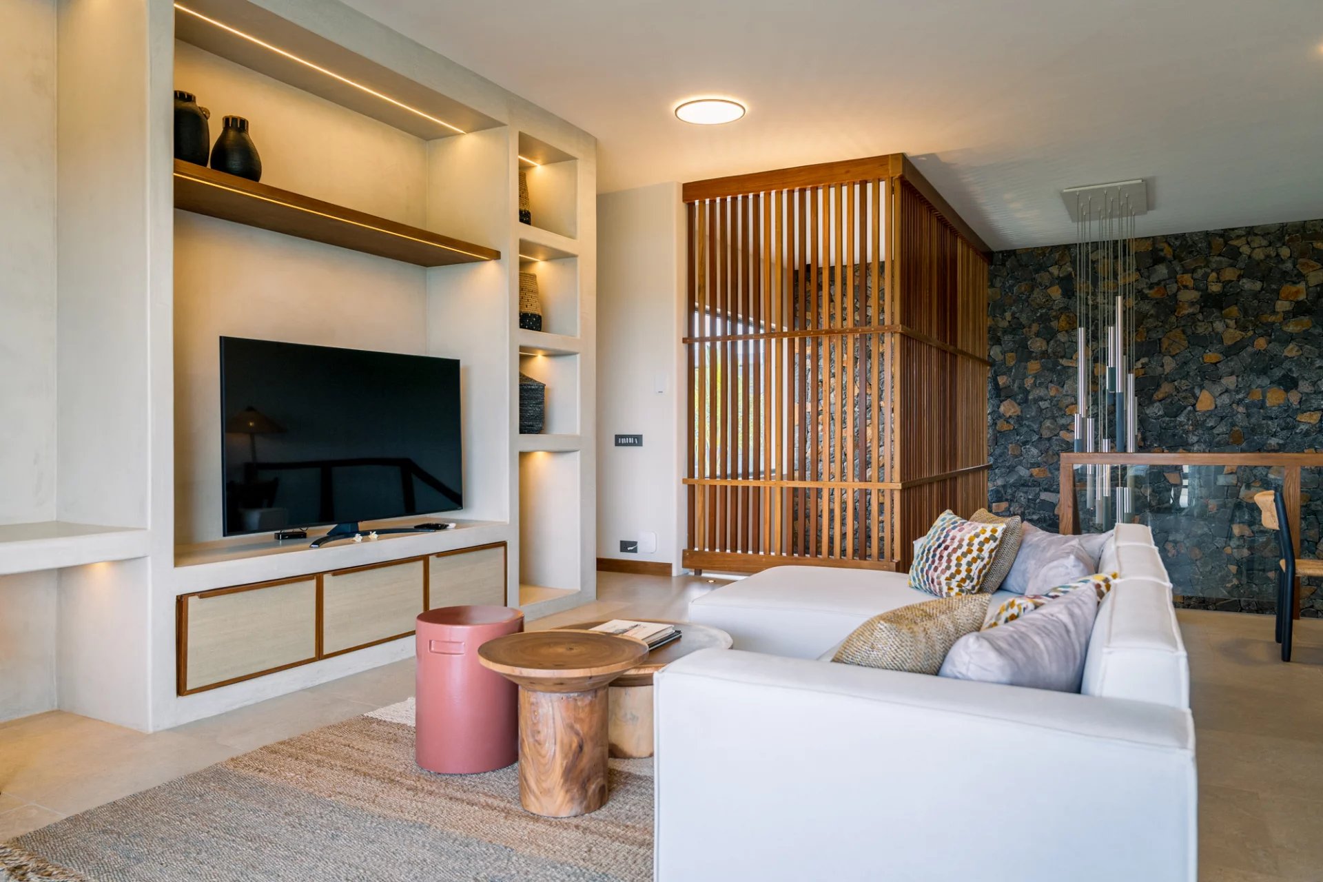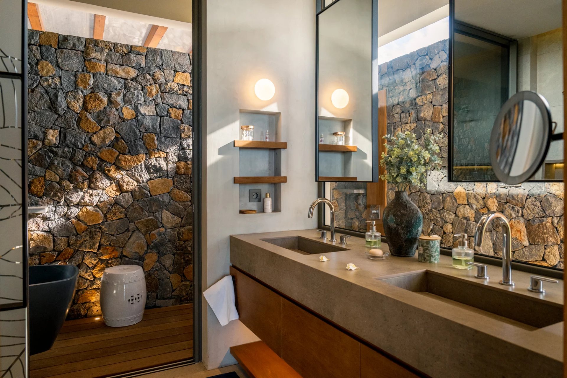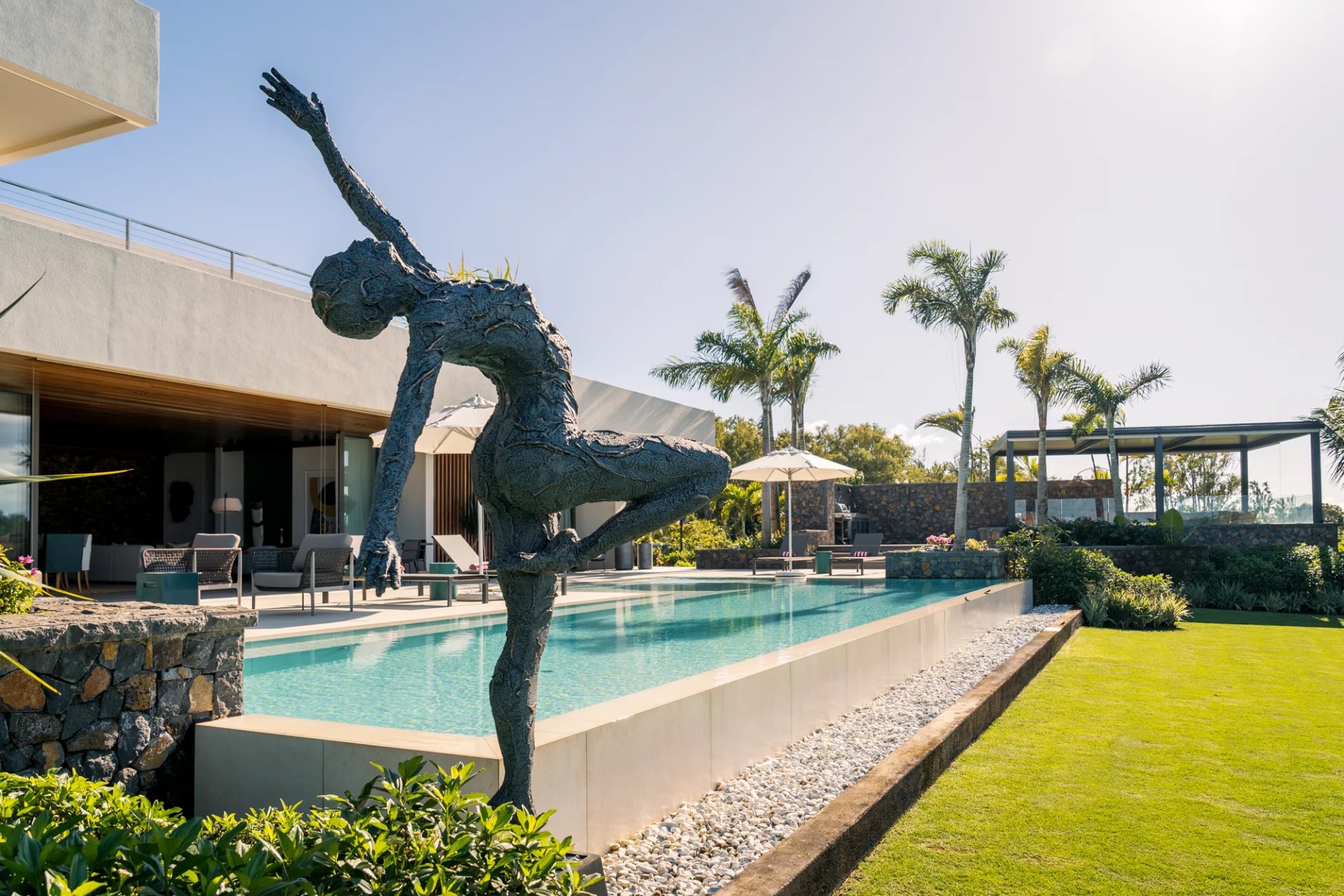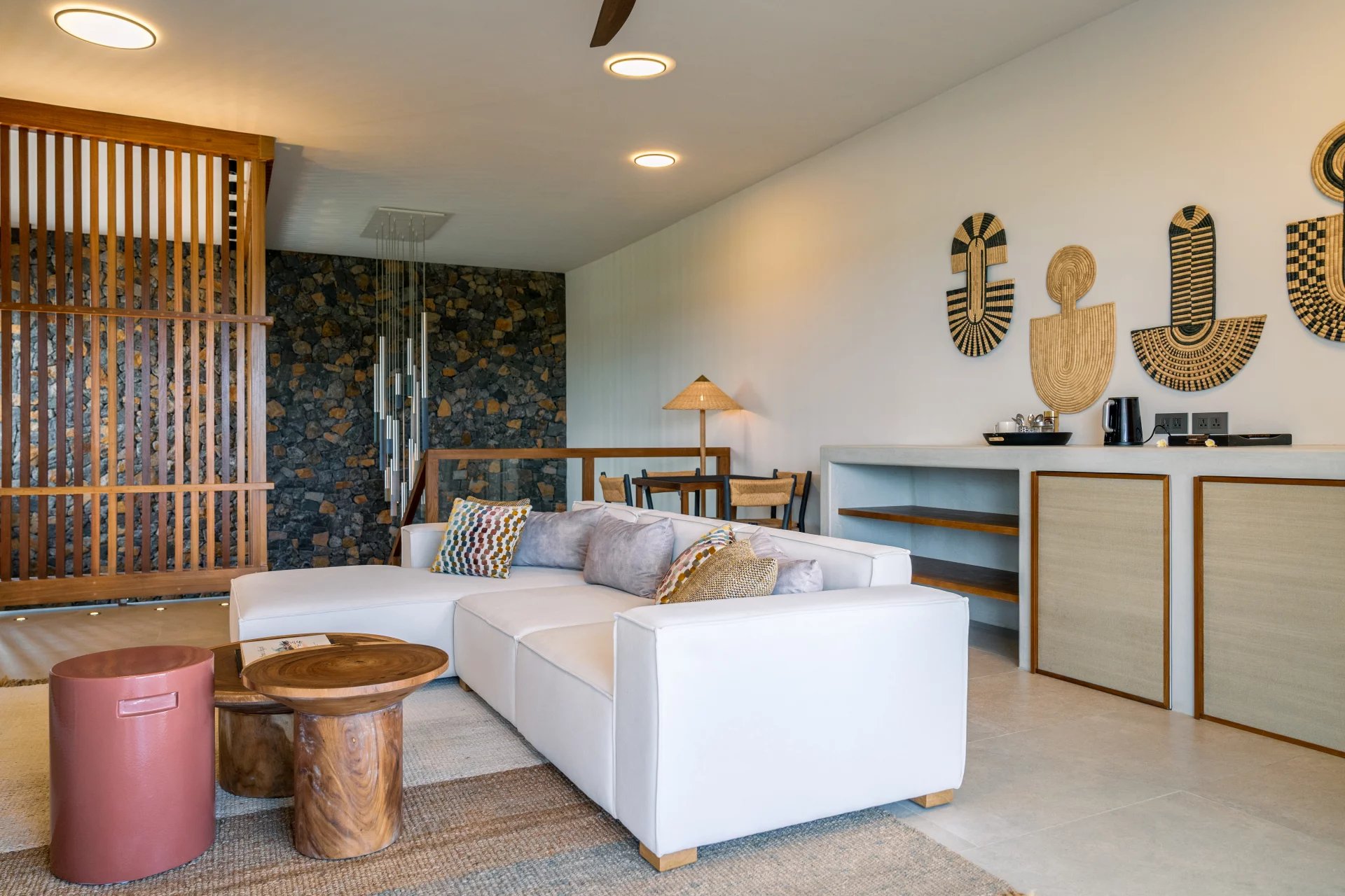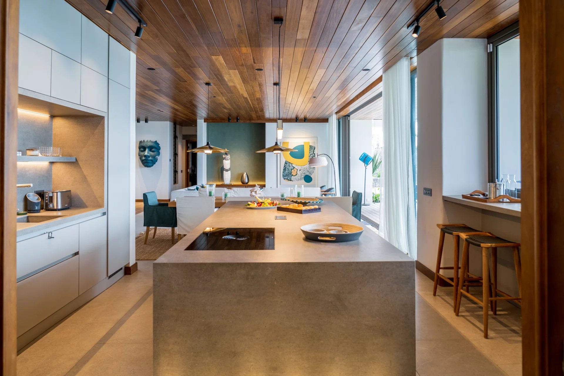 La villa marie à la perfection un design épuré et éco-chic à un confort moderne. Les œuvres d’art uniques et le mobilier sur mesure renforcent son caractère exclusif. Chaque pièce a été conçue pour offrir une expérience de vie intime et luxueuse, tout en répondant aux besoins d’évasion et de déconnexion.