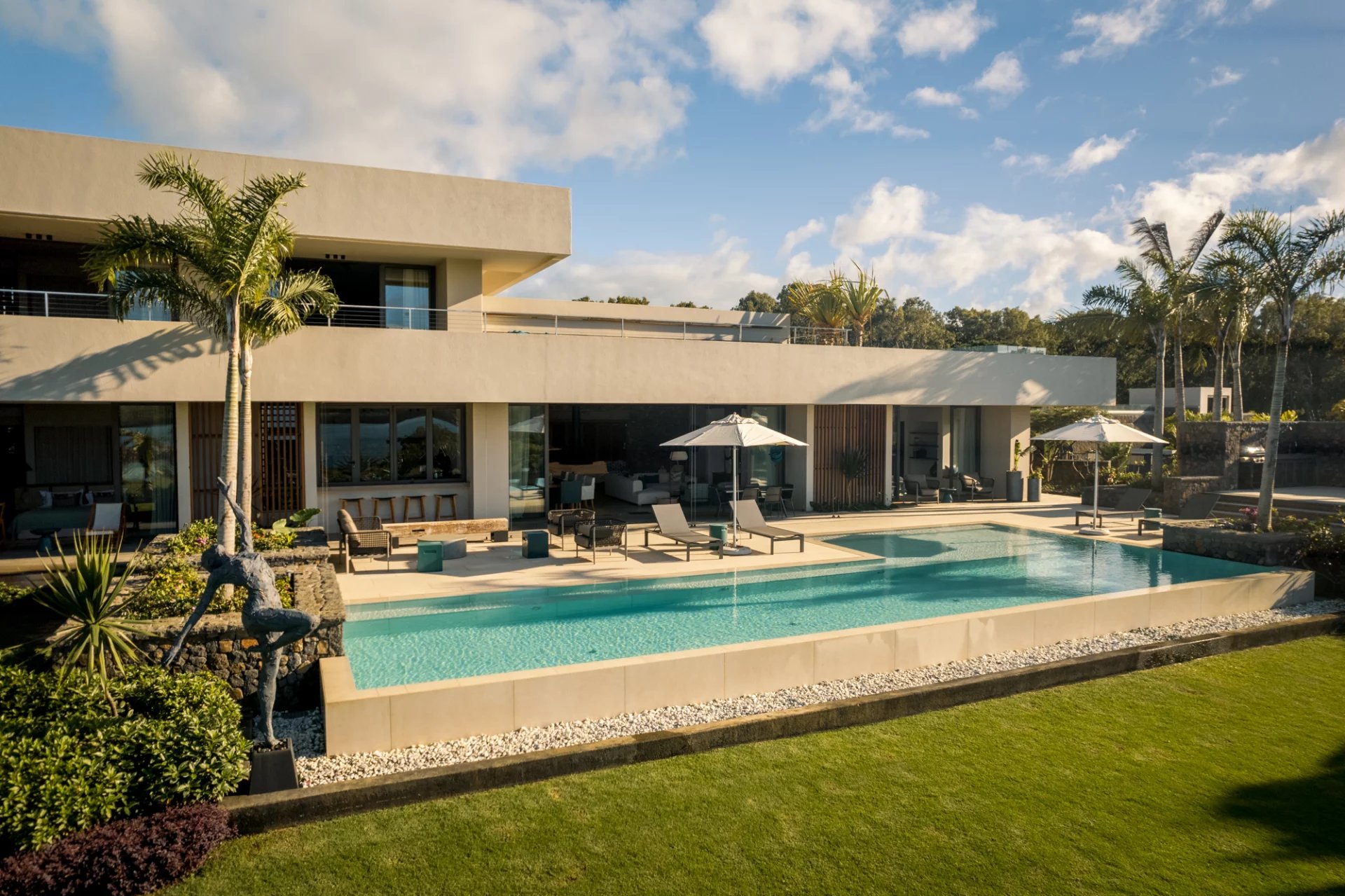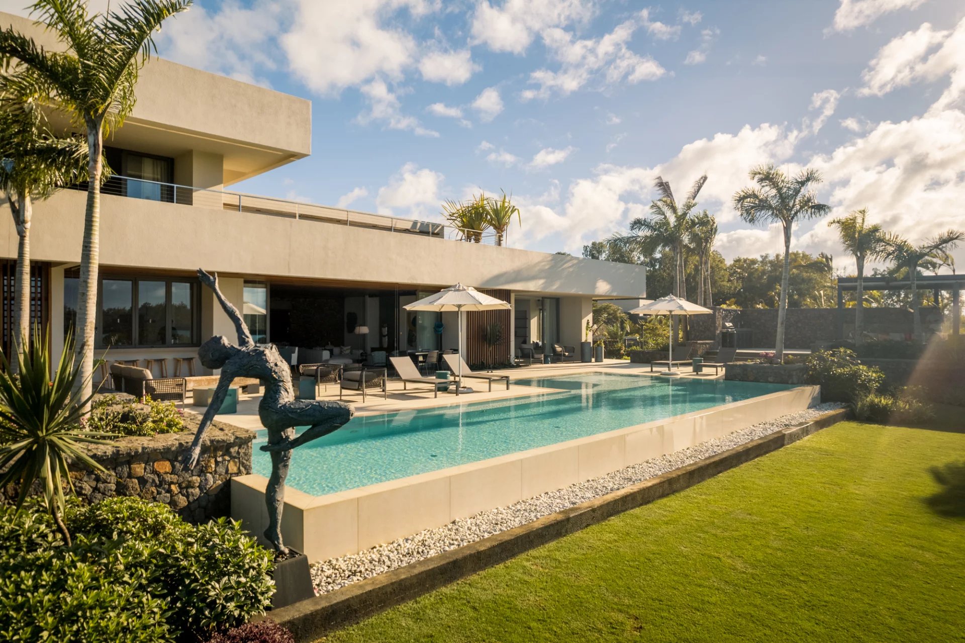 Casa Aura est une villa d’exception située dans le prestigieux domaine d’Anahita Golf and Spa Resort, surplombant le superbe lagon de l’Île aux Cerfs. Avec ses 800 m² d’architecture moderne, elle offre une immersion unique dans un cadre où luxe contemporain et nature tropicale s’harmonisent à la perfection.