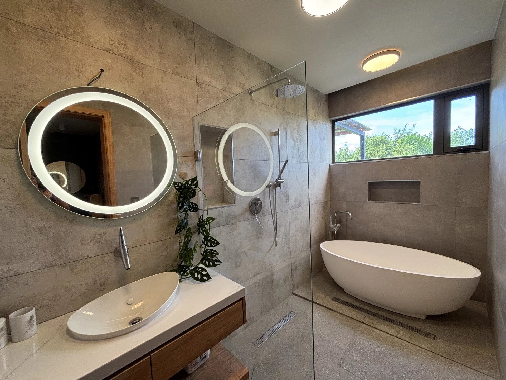 Elle bénéficie de prestations de qualité, d’un système domotique, d’une piscine, d’un jacuzzi, ainsi que d’un garage pouvant accueillir quatre véhicules, avec borne de recharge pour voiture électrique.