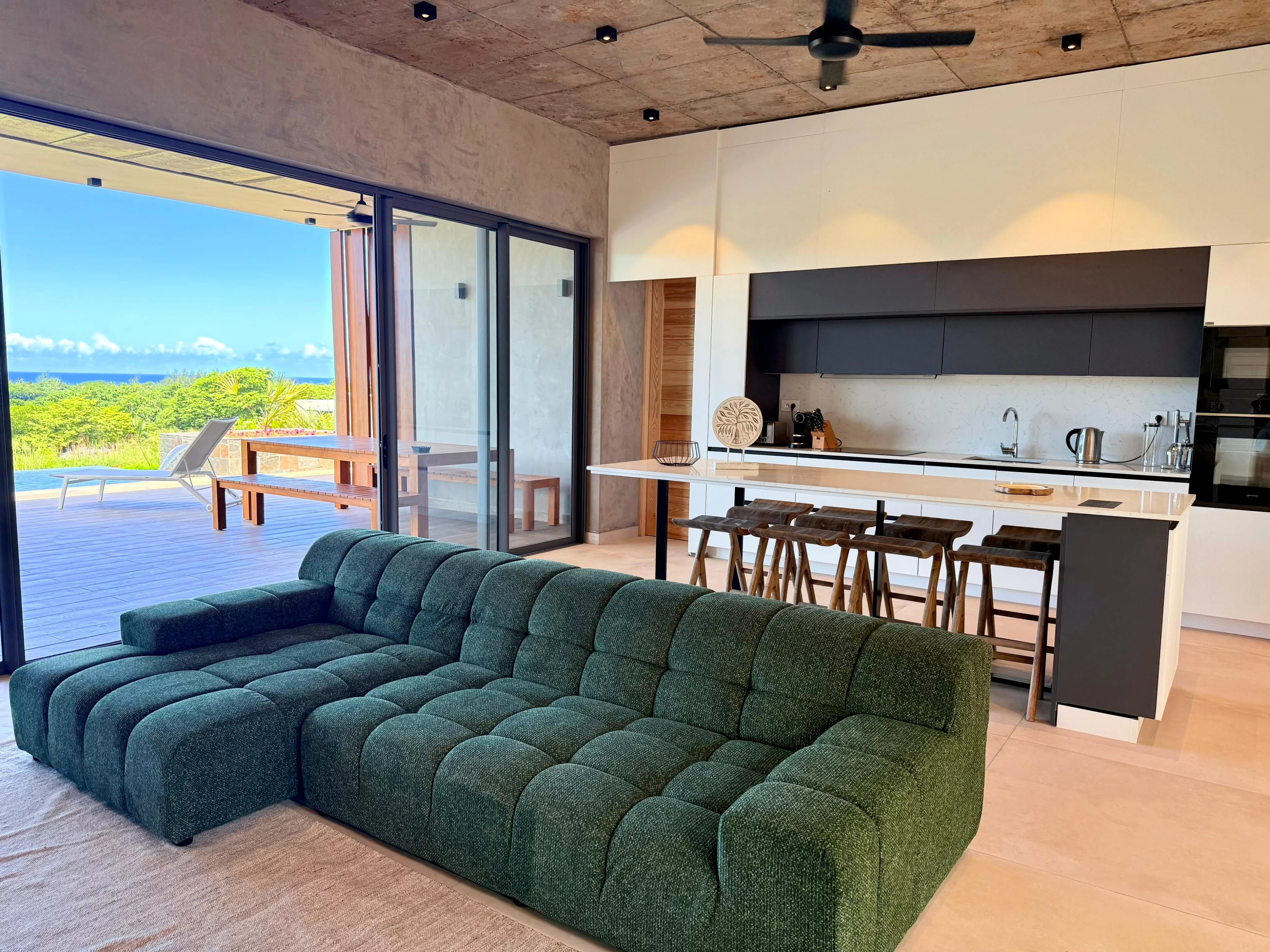 Au cœur de la région prisée de Bel Ombre, cette villa neuve, récemment livrée et située au sein du prestigieux Heritage Villas Valriche, incarne une vision moderne et raffinée de l’art de vivre tropical. Son style chic industriel, épuré et résolument contemporain séduit par ses lignes élégantes et son intégration parfaite dans un environnement naturel d’exception.
