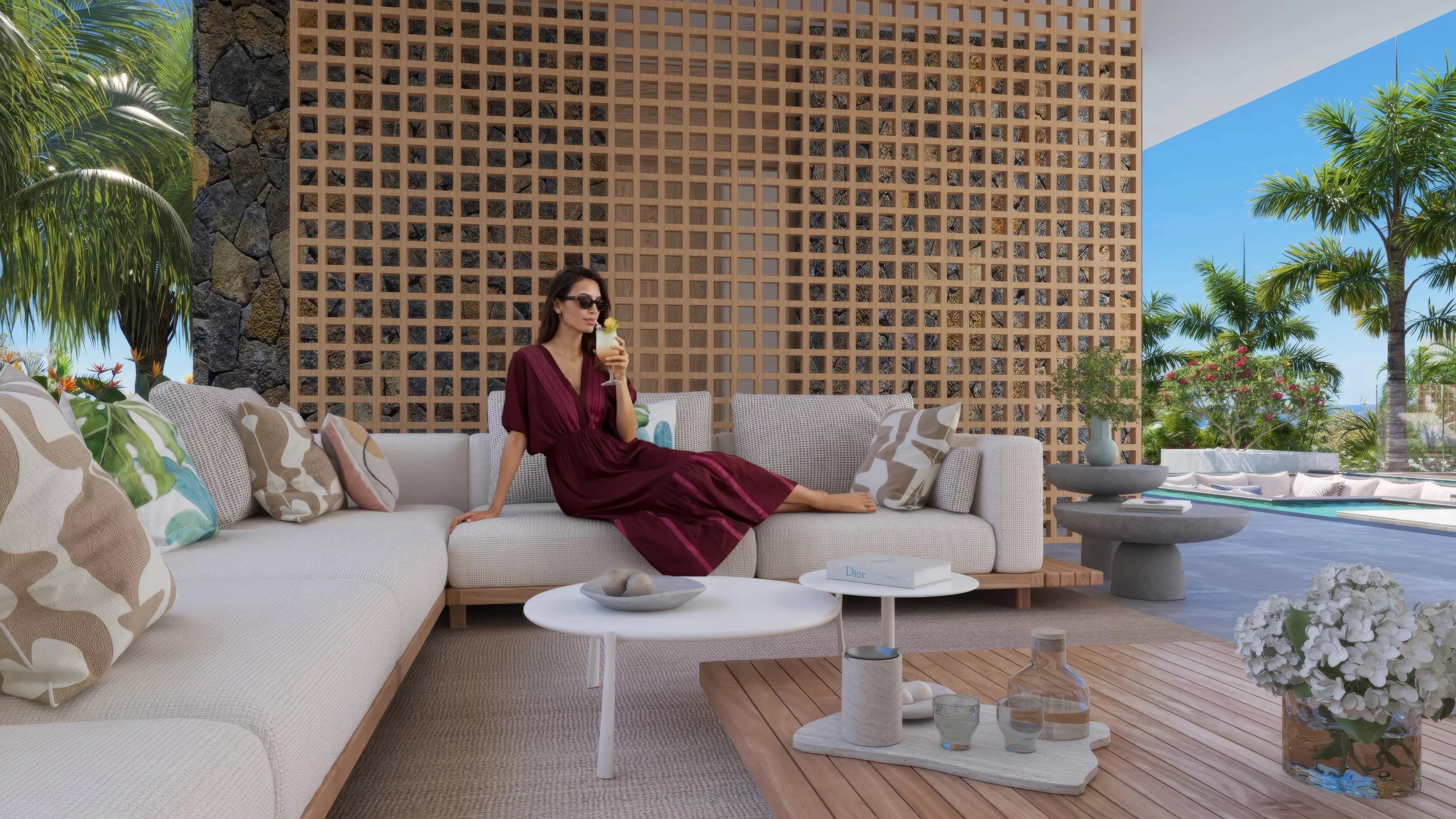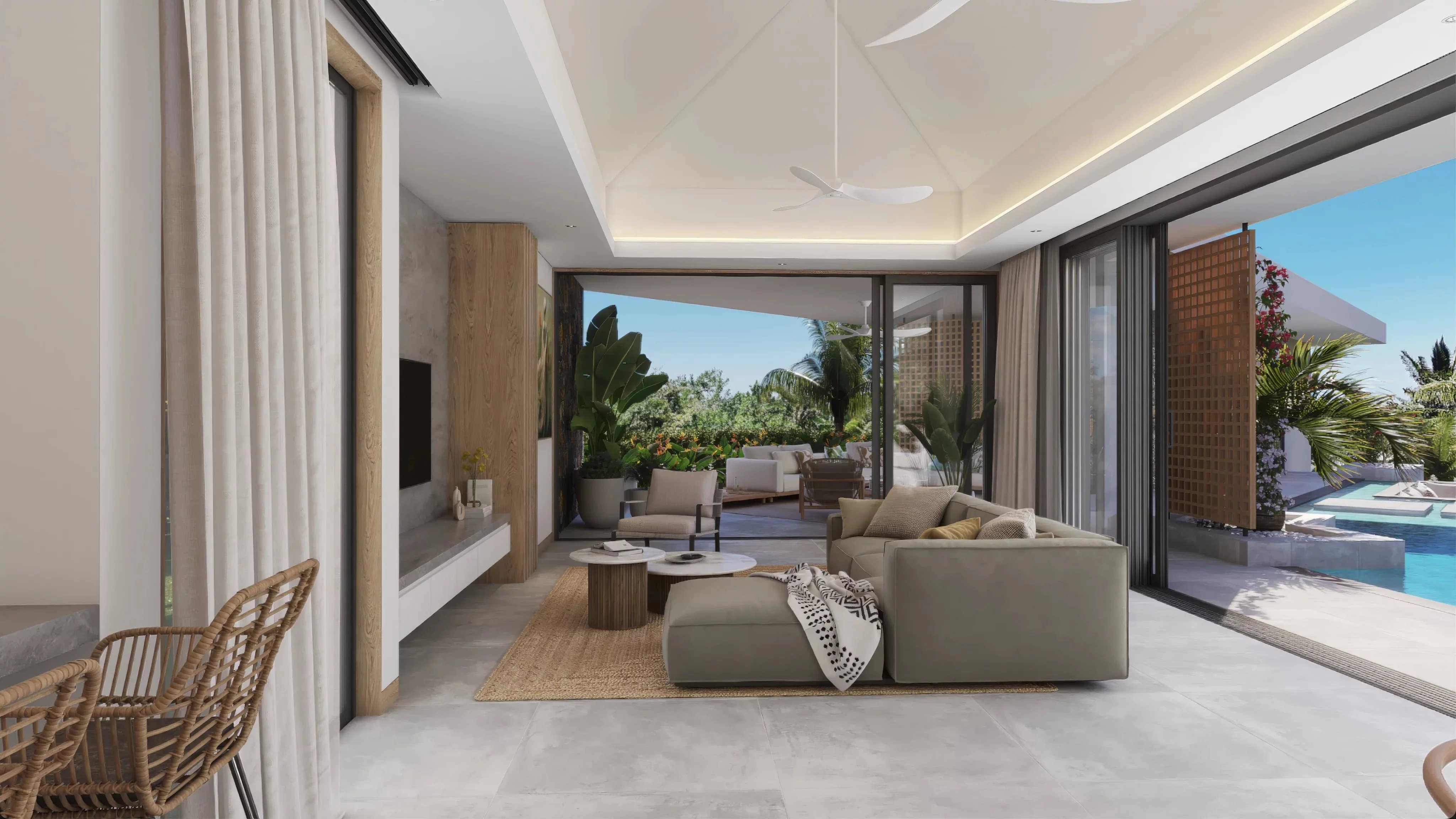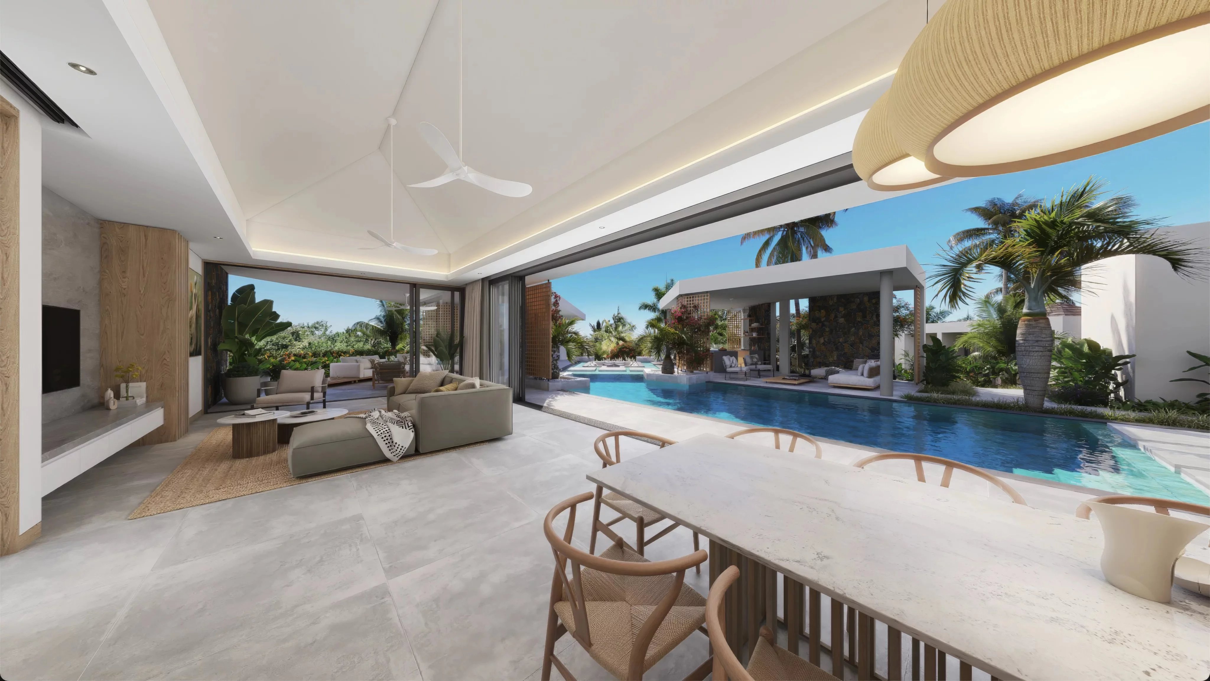 Pensée dans un esprit tropical contemporain, la villa met l’eau au centre de son architecture. La piscine à débordement structure les espaces de vie et crée une atmosphère raffinée et apaisante, très recherchée sur le marché du luxe. Les larges baies vitrées et les volumes ouverts assurent une parfaite continuité entre intérieur et extérieur, renforçant l’attrait du bien pour une clientèle internationale exigeante.