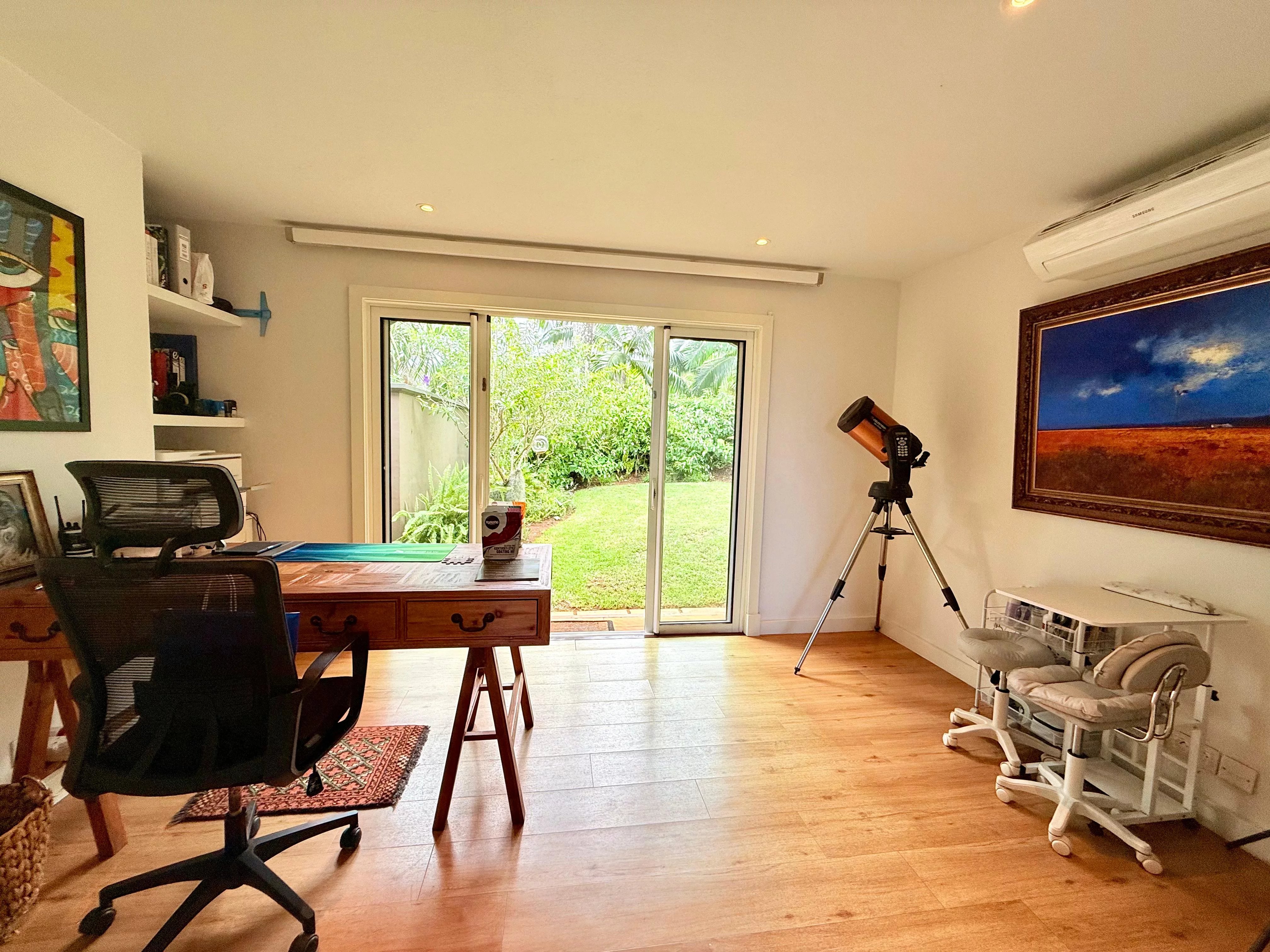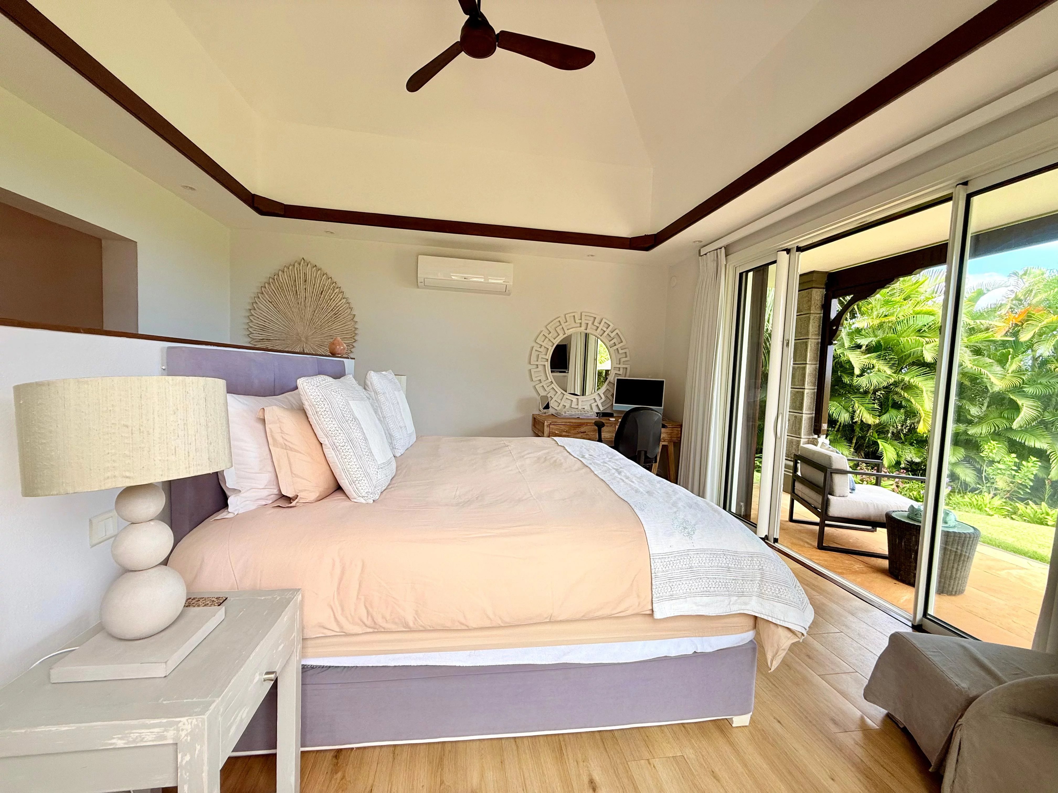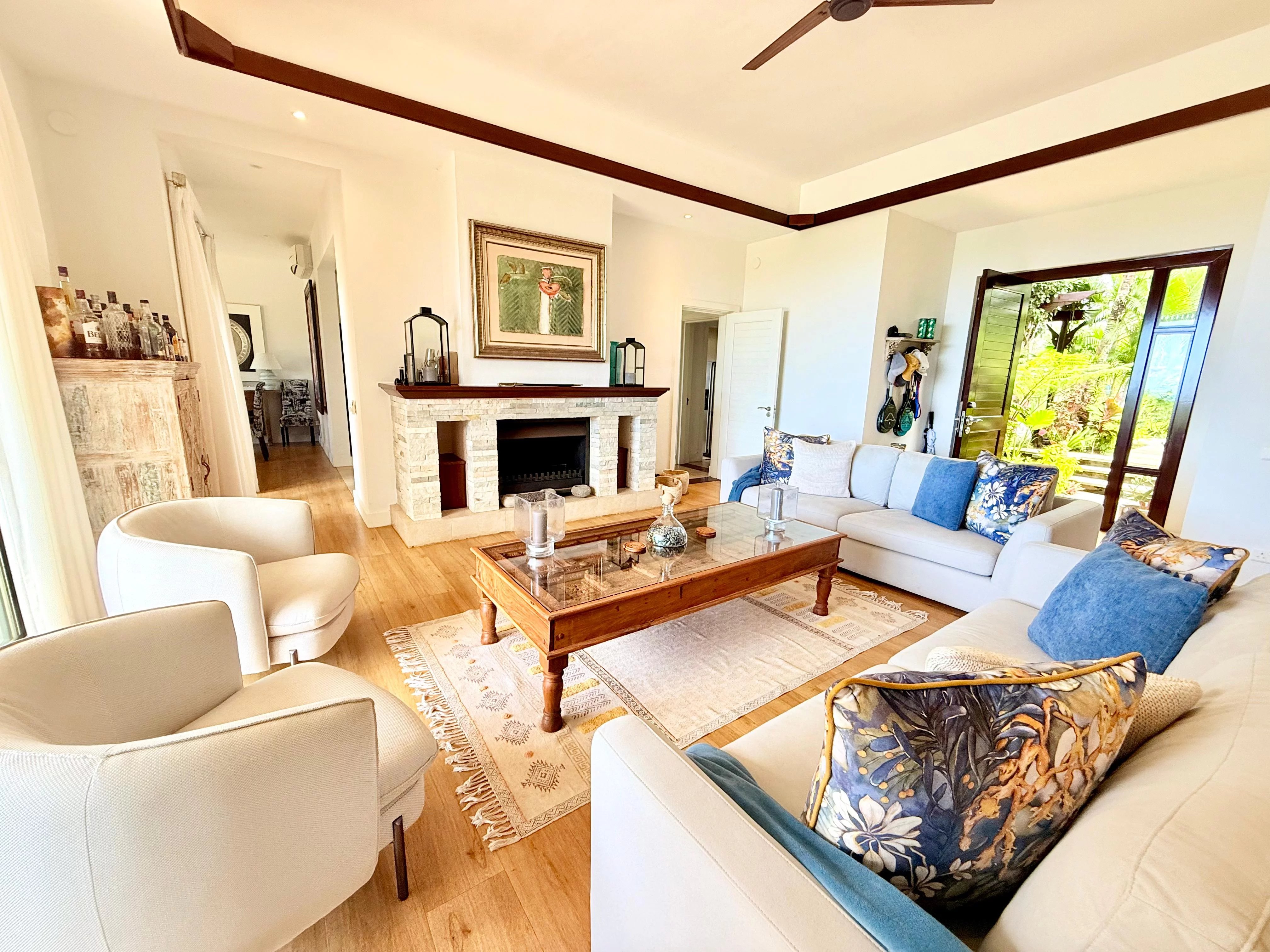 Entourée d’un jardin tropical mature, la villa bénéficie d’un cadre paisible et préservé. Les intérieurs, parfaitement entretenus, proposent quatre chambres en suite spacieuses, un bureau ainsi qu’un salon familial, offrant des espaces de vie flexibles et confortables.