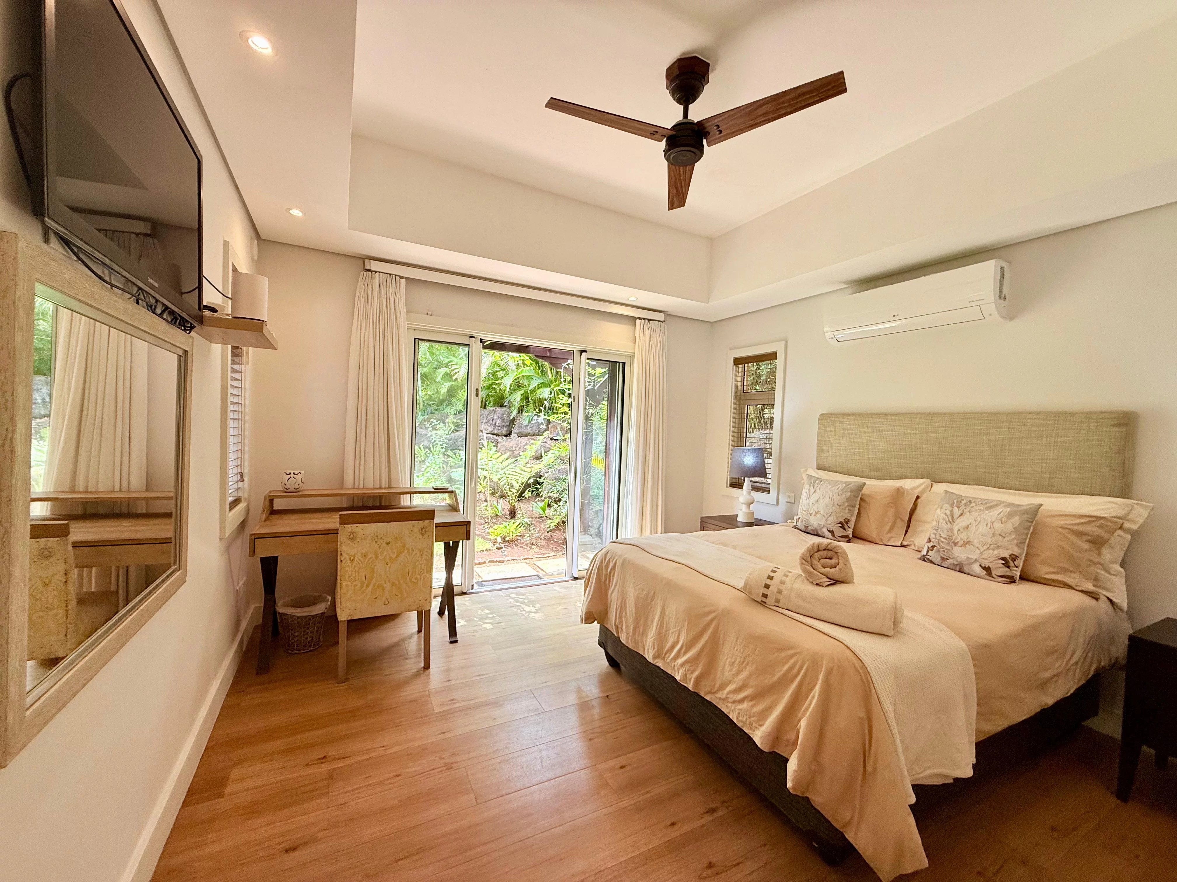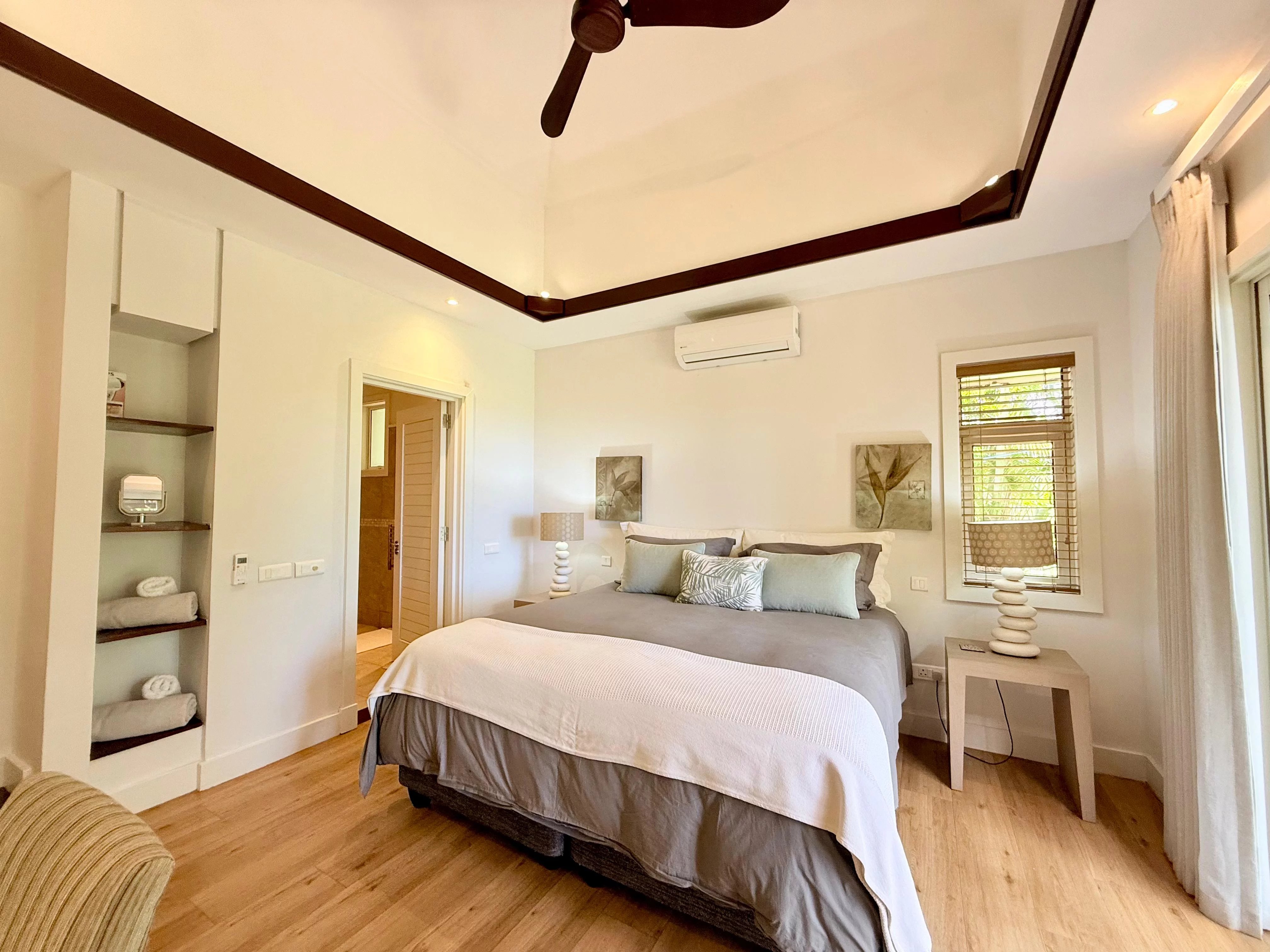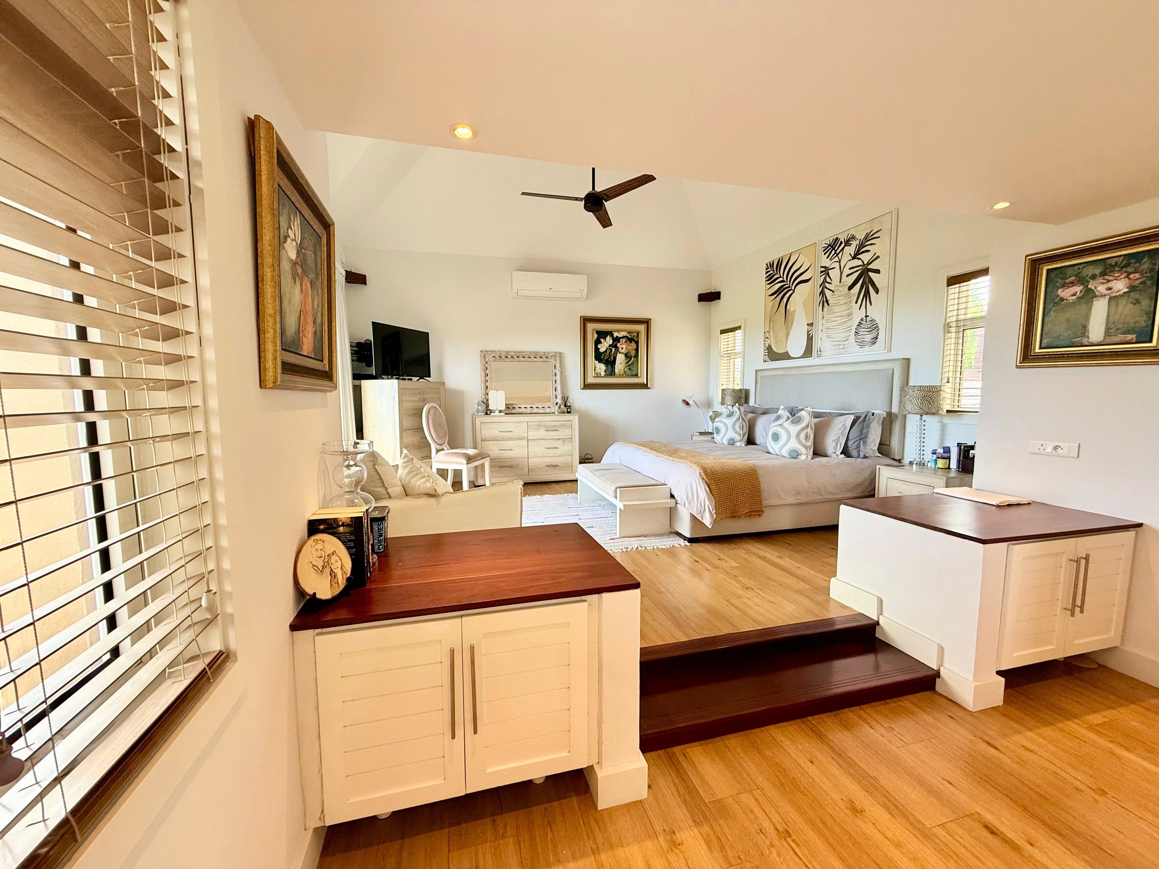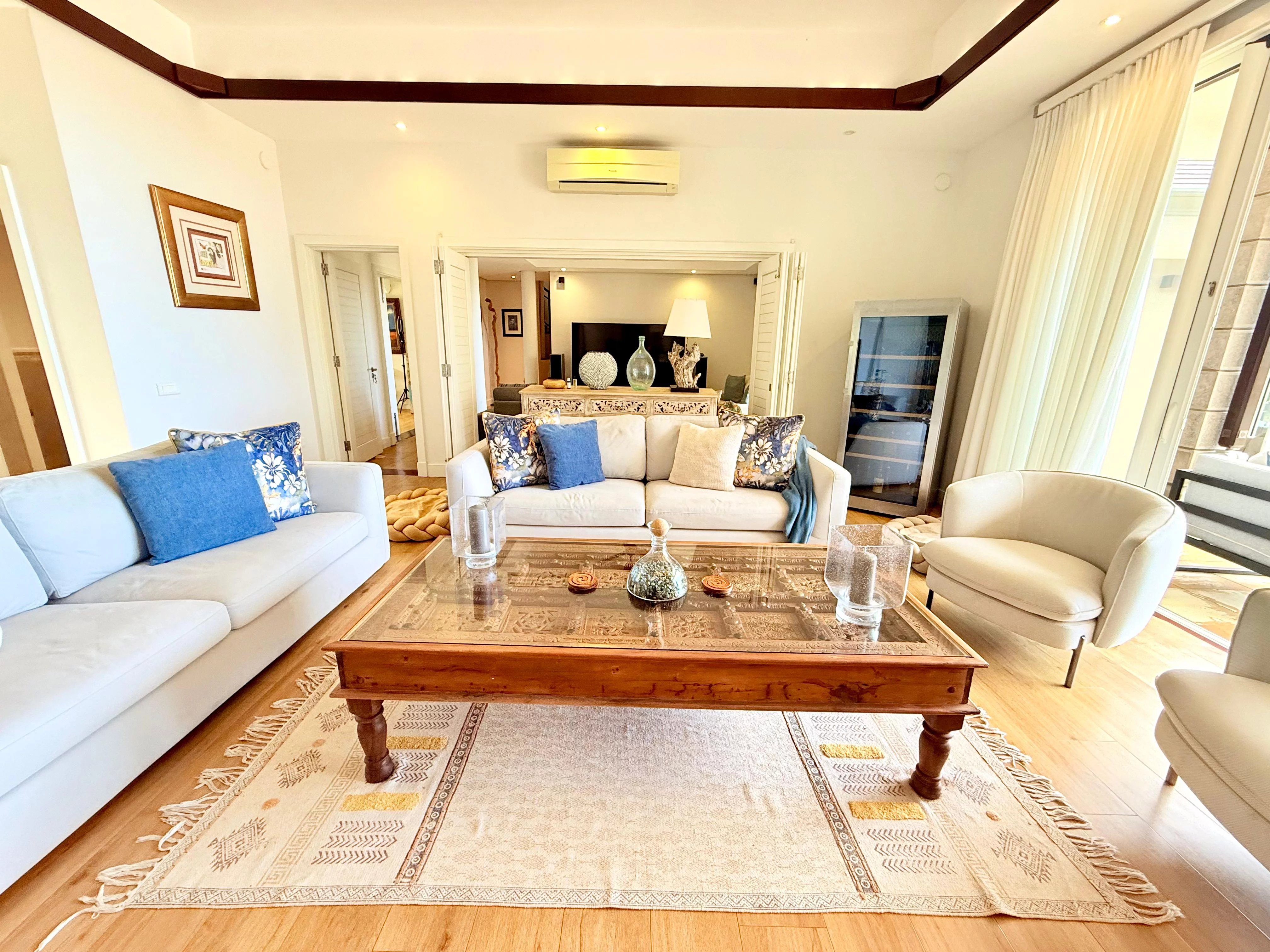 Entourée d’un jardin tropical mature, la villa bénéficie d’un cadre paisible et préservé. Les intérieurs, parfaitement entretenus, proposent quatre chambres en suite spacieuses, un bureau ainsi qu’un salon familial, offrant des espaces de vie flexibles et confortables.