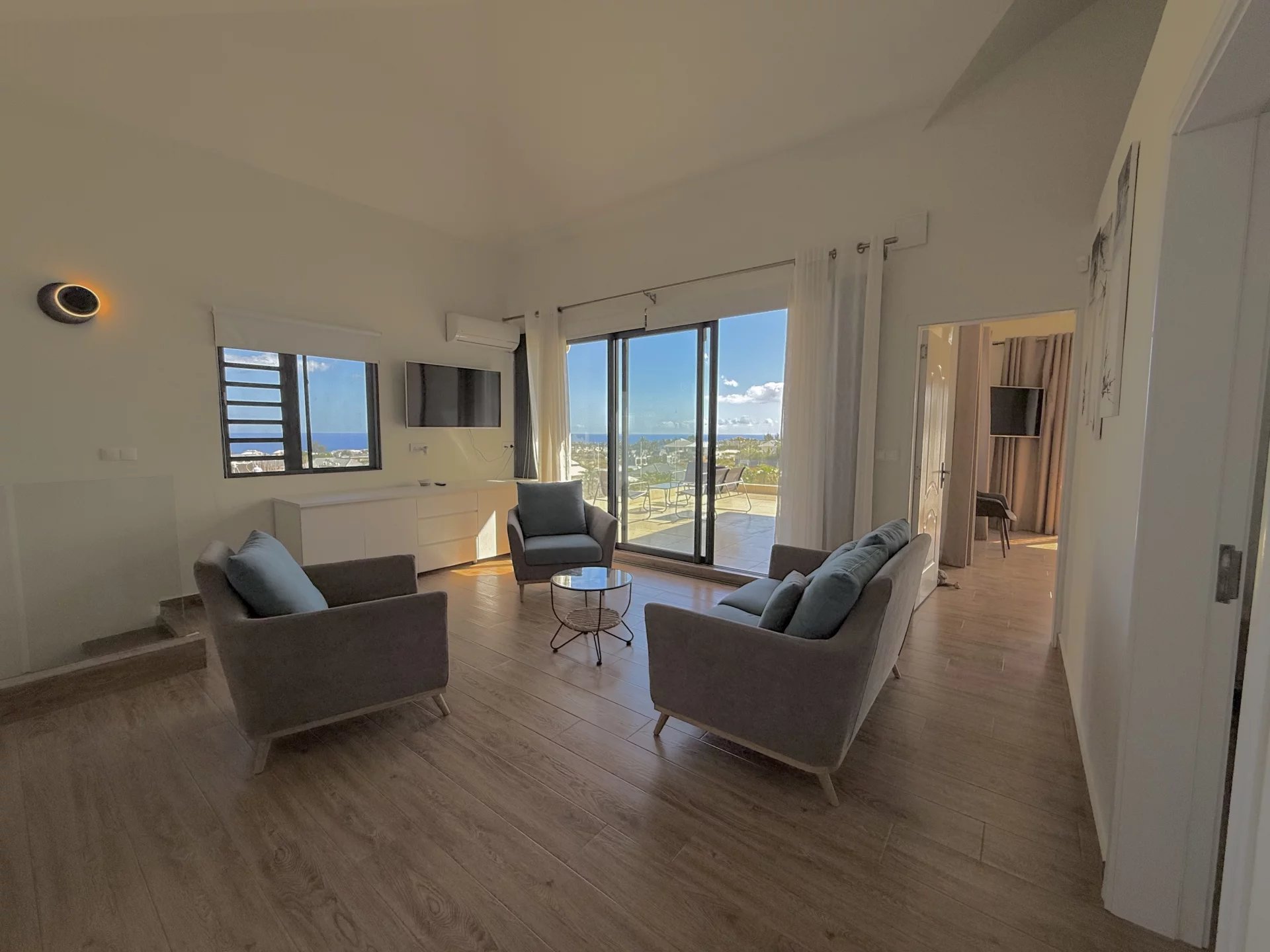Dès le rez-de-chaussée, laissez-vous séduire par une vue imprenable sur la mer et les jardins, un cadre idyllique pour des moments inoubliables en famille ou entre amis.