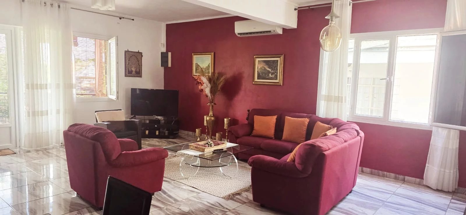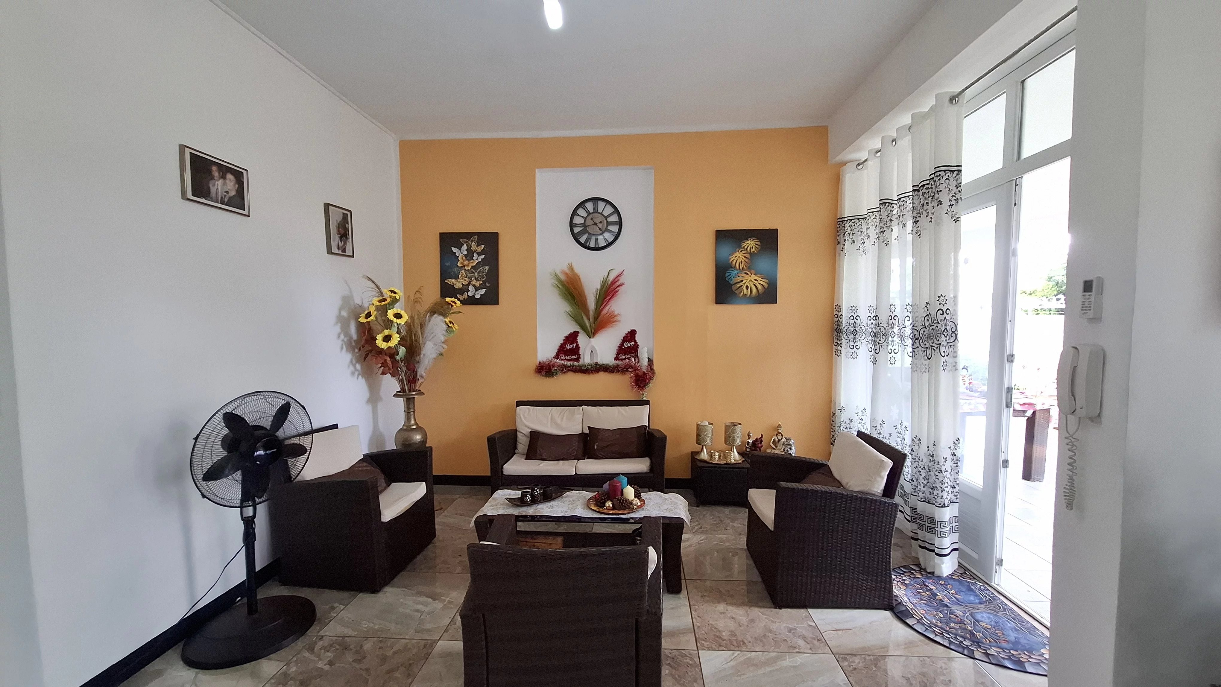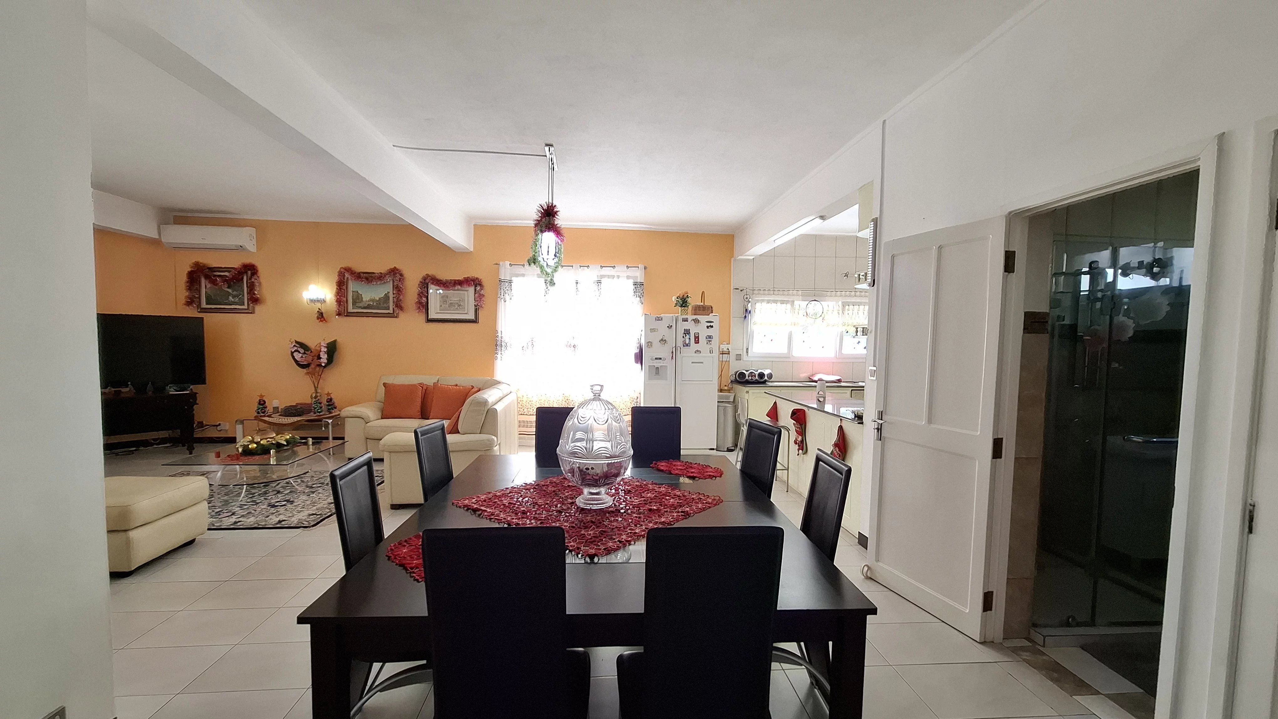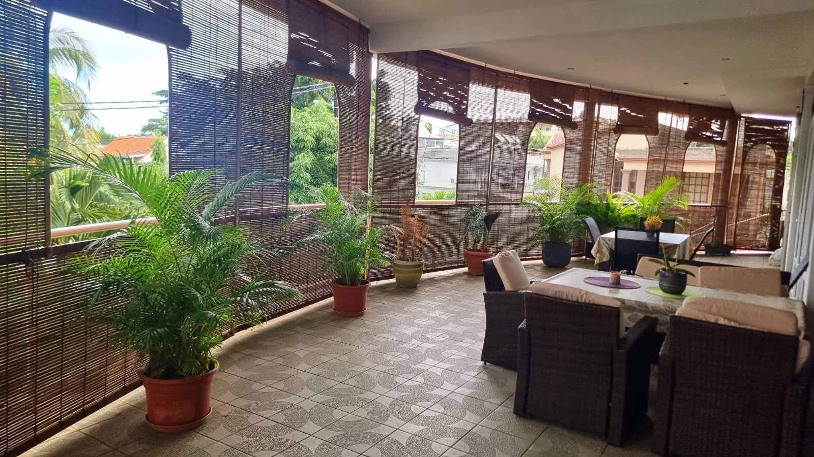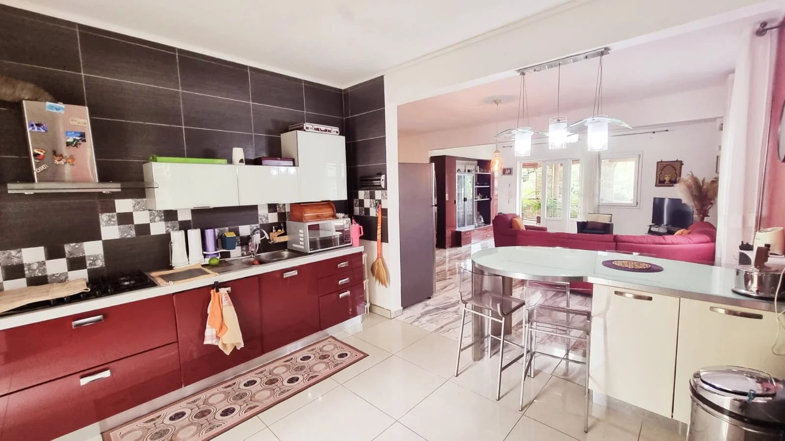Grande villa familiale en deux parties, très bien située au cœur de Flic en Flac, proche de la plage et des commodités. Le rez-de-chaussée et l'étage sont complètement indépendants. En bas, elle se compose de 3 chambres, dont une en suite, de 2 salles de douche et toilettes ainsi qu'une toilette pour les invités. L'entrée donne sur un immense salon, un petit salon, une salle à manger et une grande cuisine américaine. Les chambres se trouvent sur l'aile droite, de chaque côté d'un couloir menant à un grand garage pouvant accueillir 2 voitures. L'étage est la réplique du rez-de-chaussée, offrant une chambre supplémentaire et sa salle de douche (au-dessus du garage). Le petit jardin, très bien entretenu, ainsi que ses belles terrasses vous feront passer d'agréables soirées estivales.
