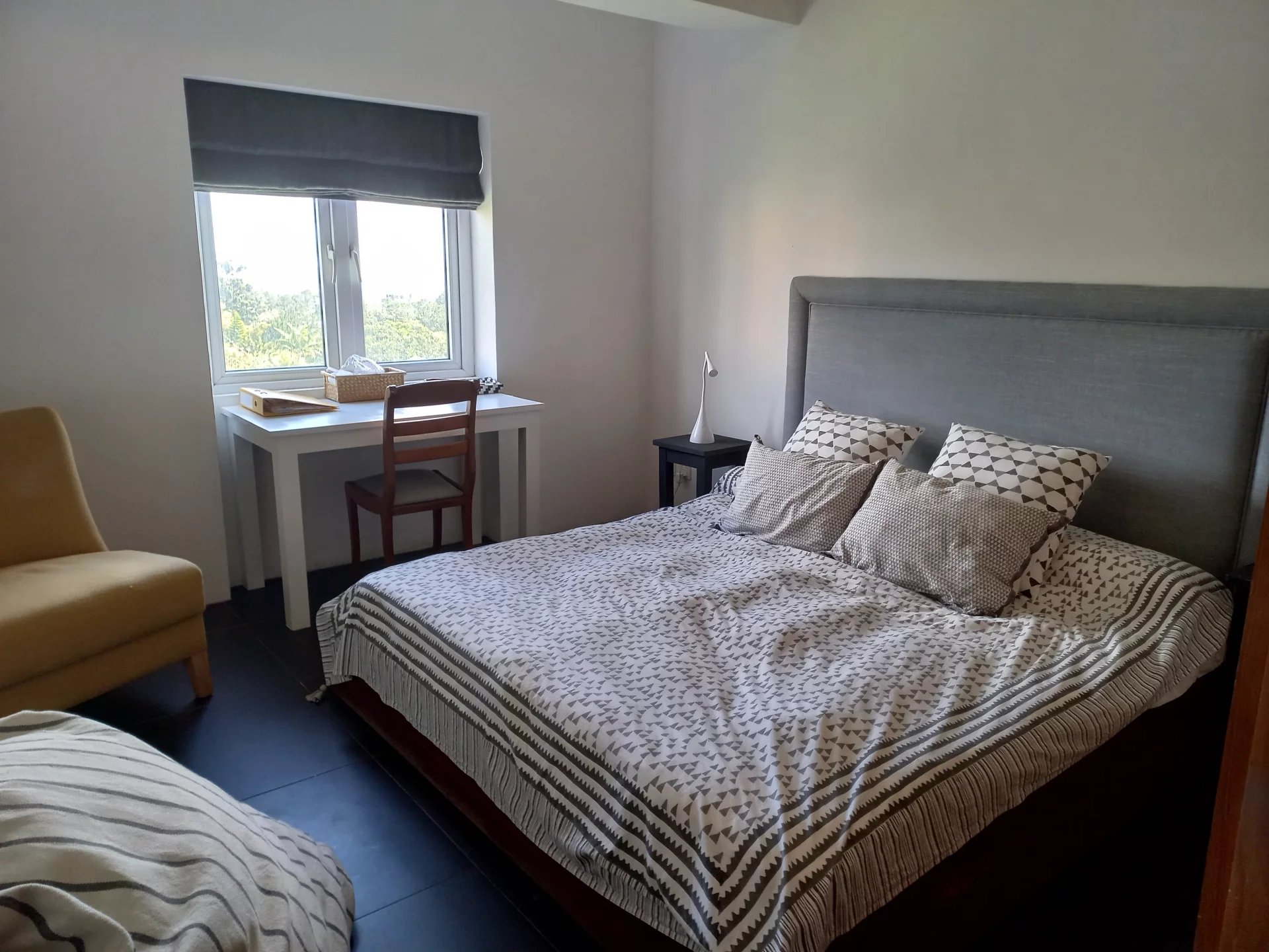 Une des chambres sert de bureau et a un balcon orienté au soleil couchant.