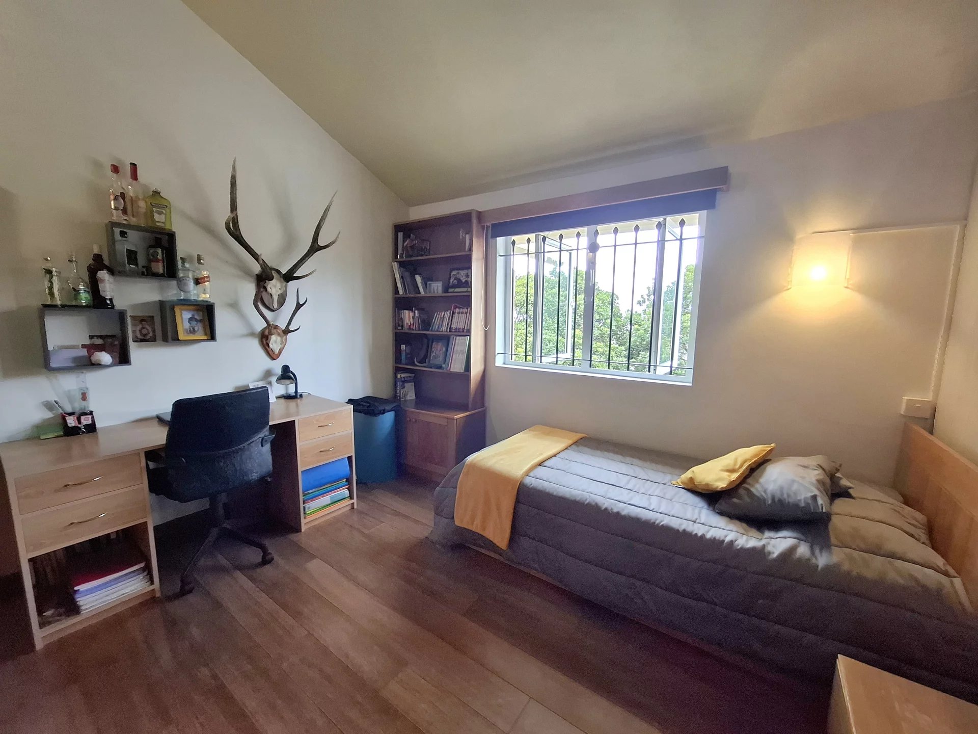 Au rez-de-chaussée, les pièces de vie lumineuses s’ouvrent sur une belle terrasse surplombant un jardin arboré et parfaitement entretenu : un véritable havre de paix pour recevoir ou profiter de moments en famille. Grâce à la dalle inclinée, la maison bénéficie d’une excellente hauteur sous plafond, renforçant la sensation d’espace et de volume. Un espace cheminée apporte chaleur et convivialité durant les hivers frais des hauteurs, complété par un coin TV idéal pour se détendre. La maison dispose également d’une cuisine fonctionnelle. Les portes et volets en bois ajoutent charme, caractère et authenticité à l’ensemble.