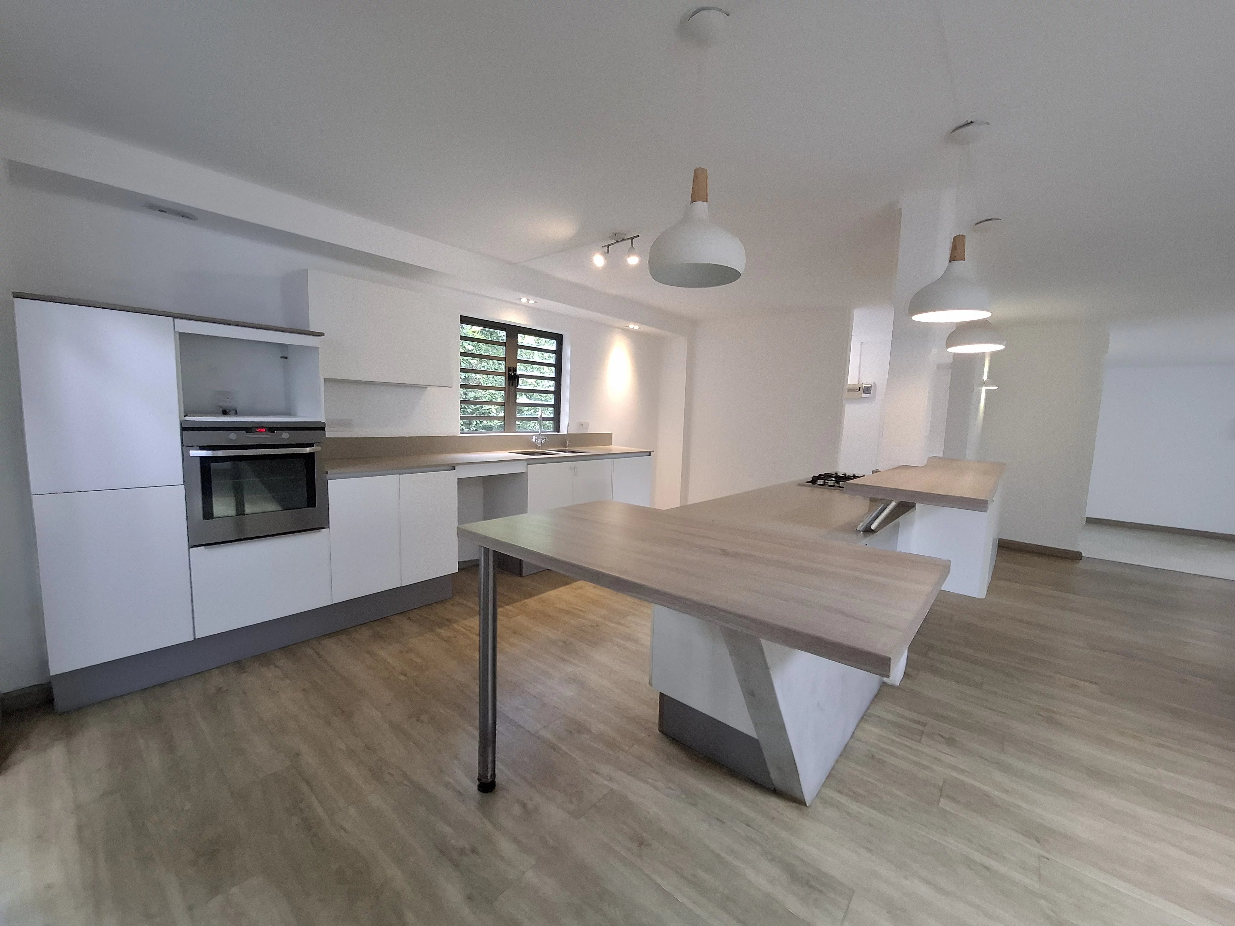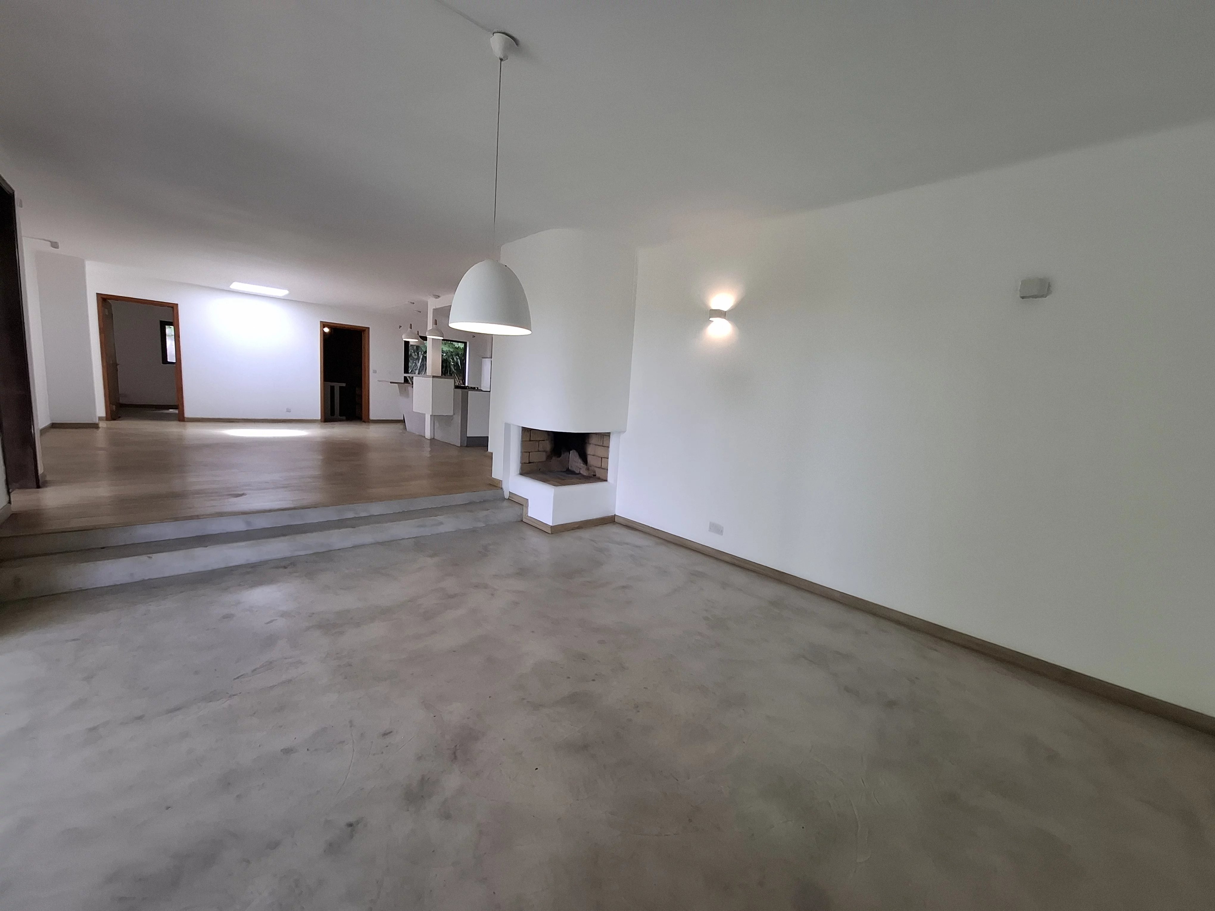 La cuisine moderne, ouverte sur l’espace de vie, crée une atmosphère conviviale et chaleureuse. Une cheminée élégamment positionnée entre le salon et la salle à manger sublime cet espace et invite à des moments de partage en famille.
