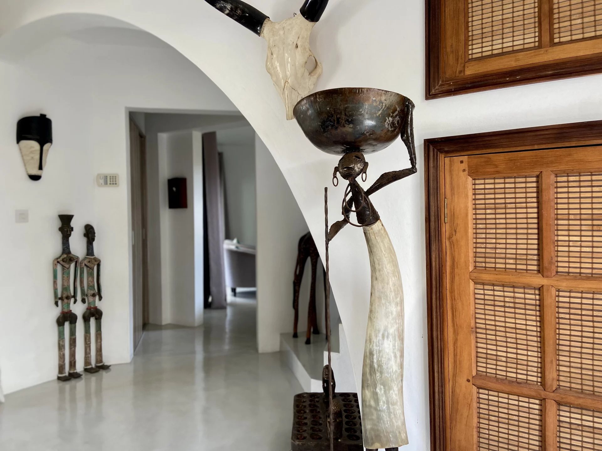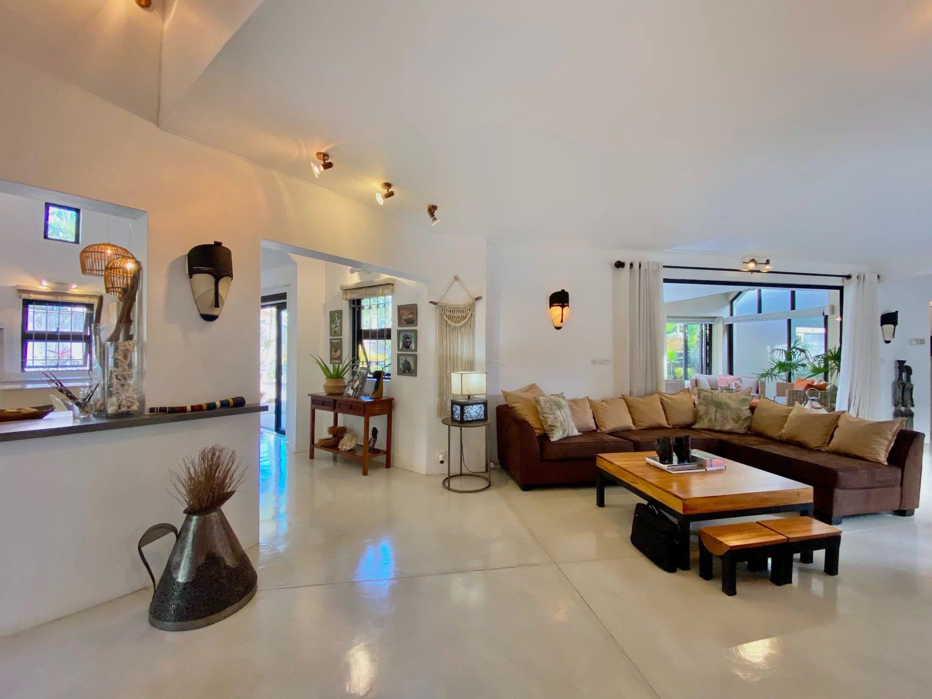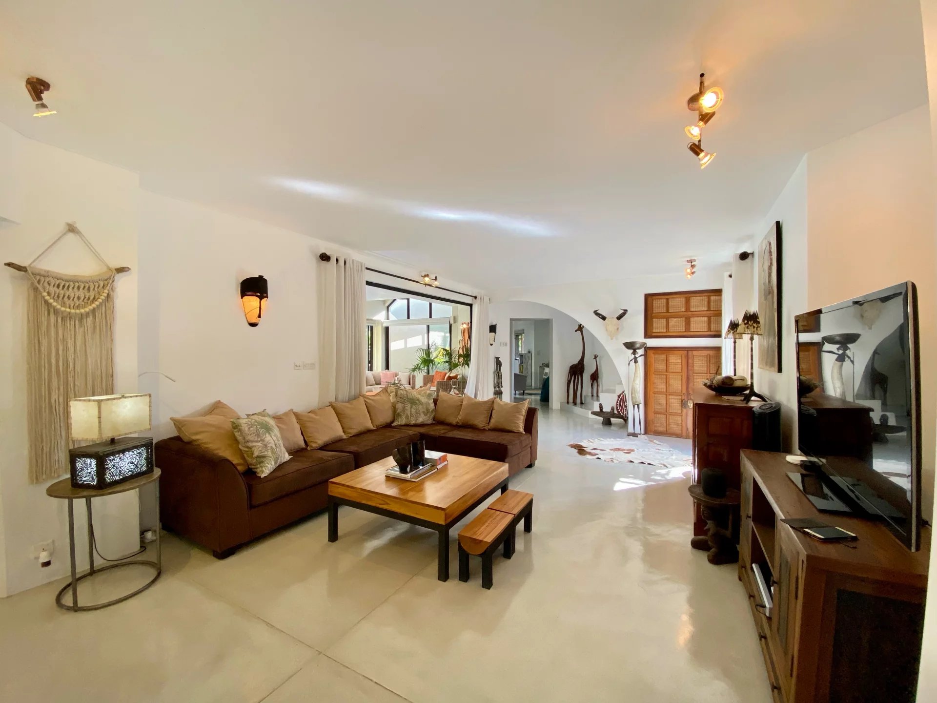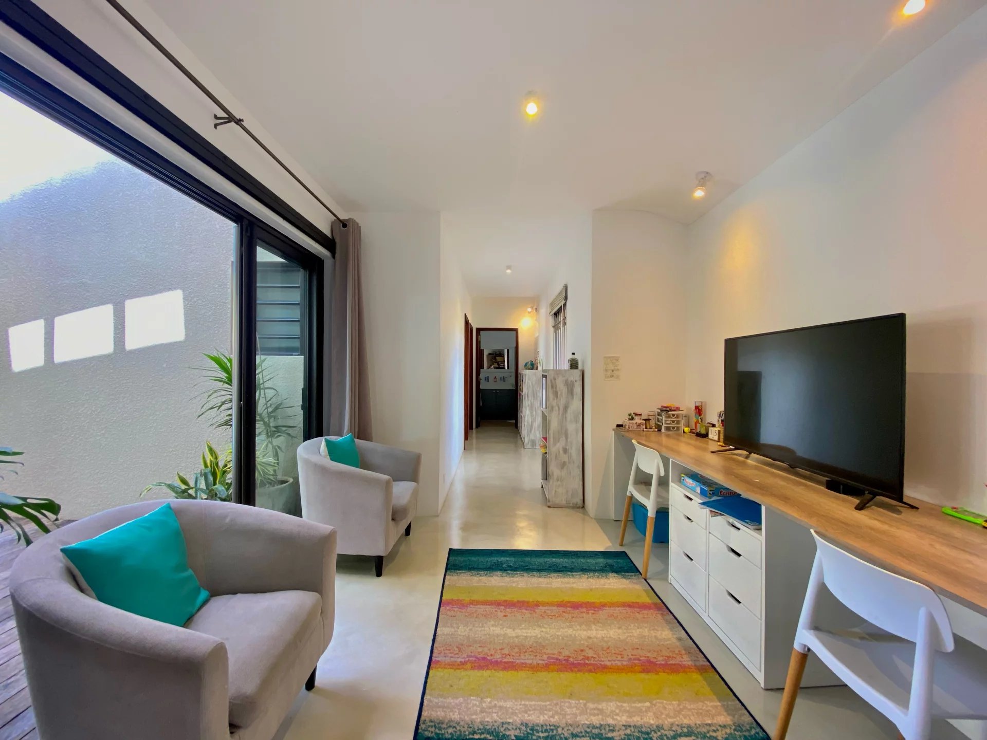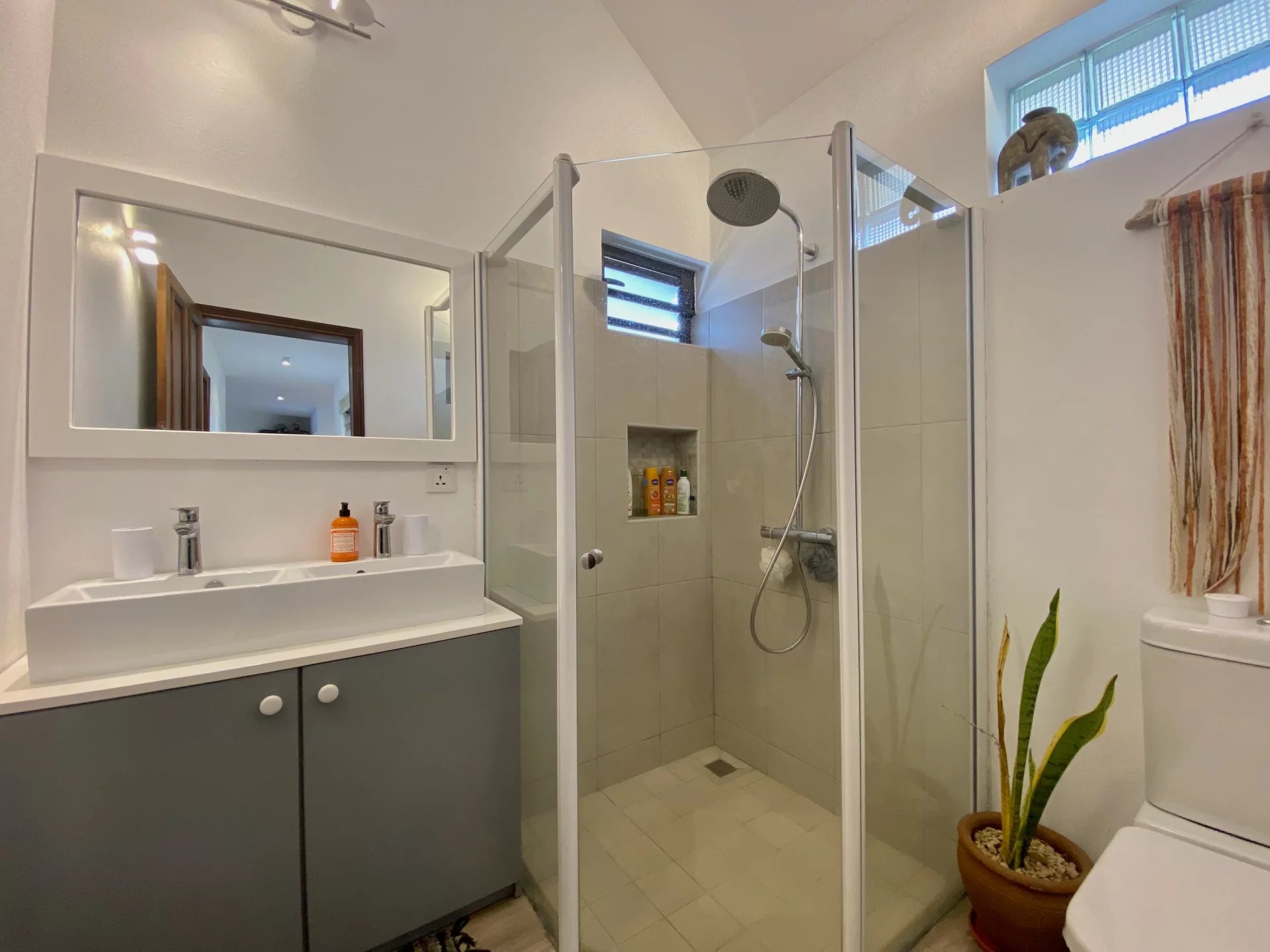 La villa possède 4 chambres possibilité 5, dont deux en suite. Elle se compose d'un grand bureau , d'une cuisine s'ouvrant sur un grand salon et d'un jardin tropical avec piscine et kiosk de 27 m².