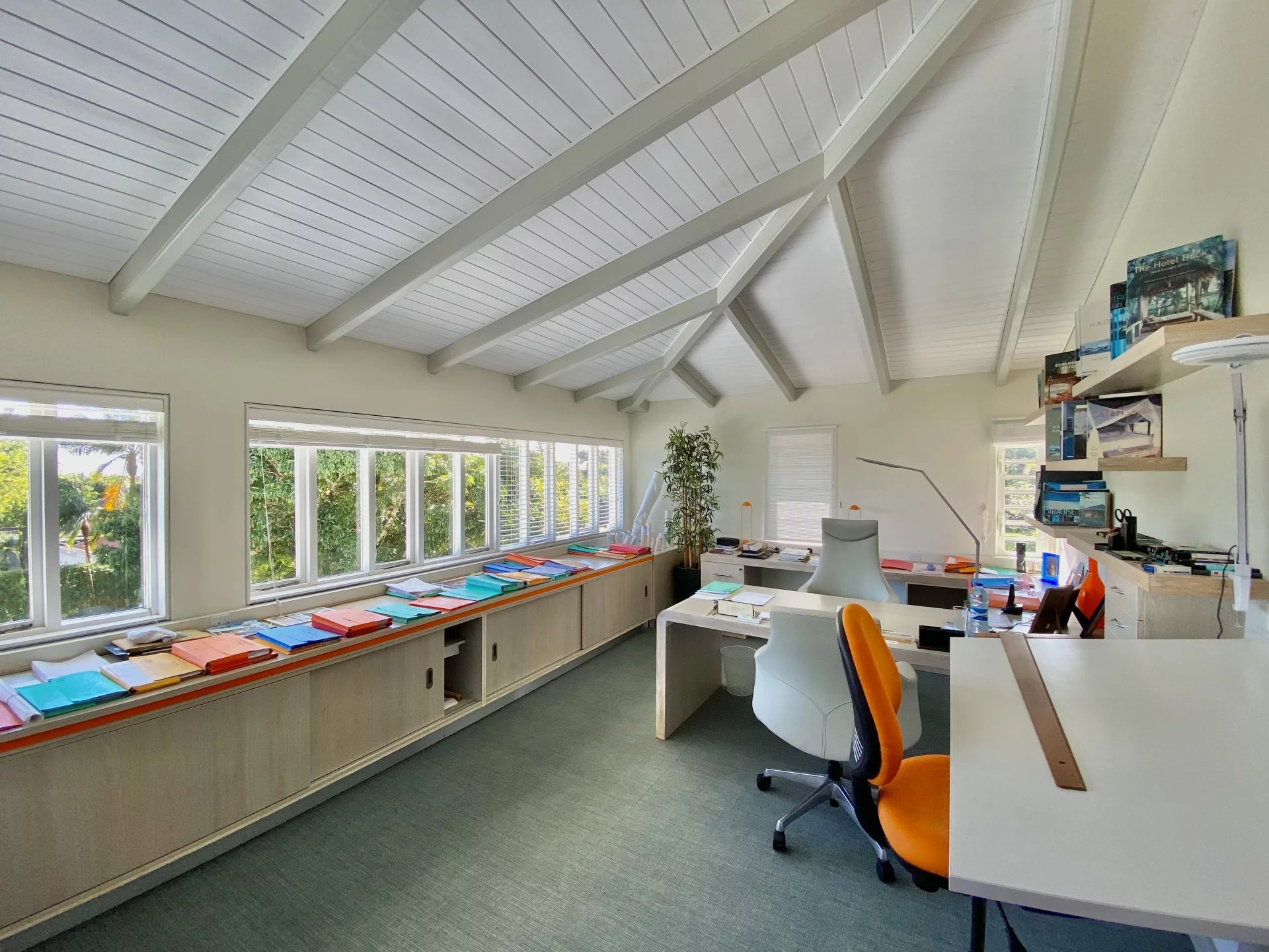 Au 1er étage se trouve un espace bureau de 107 m² qui communique avec le rez-de-chaussée par un escalier en colimaçon à l'intérieur et un 2ème escalier externe.