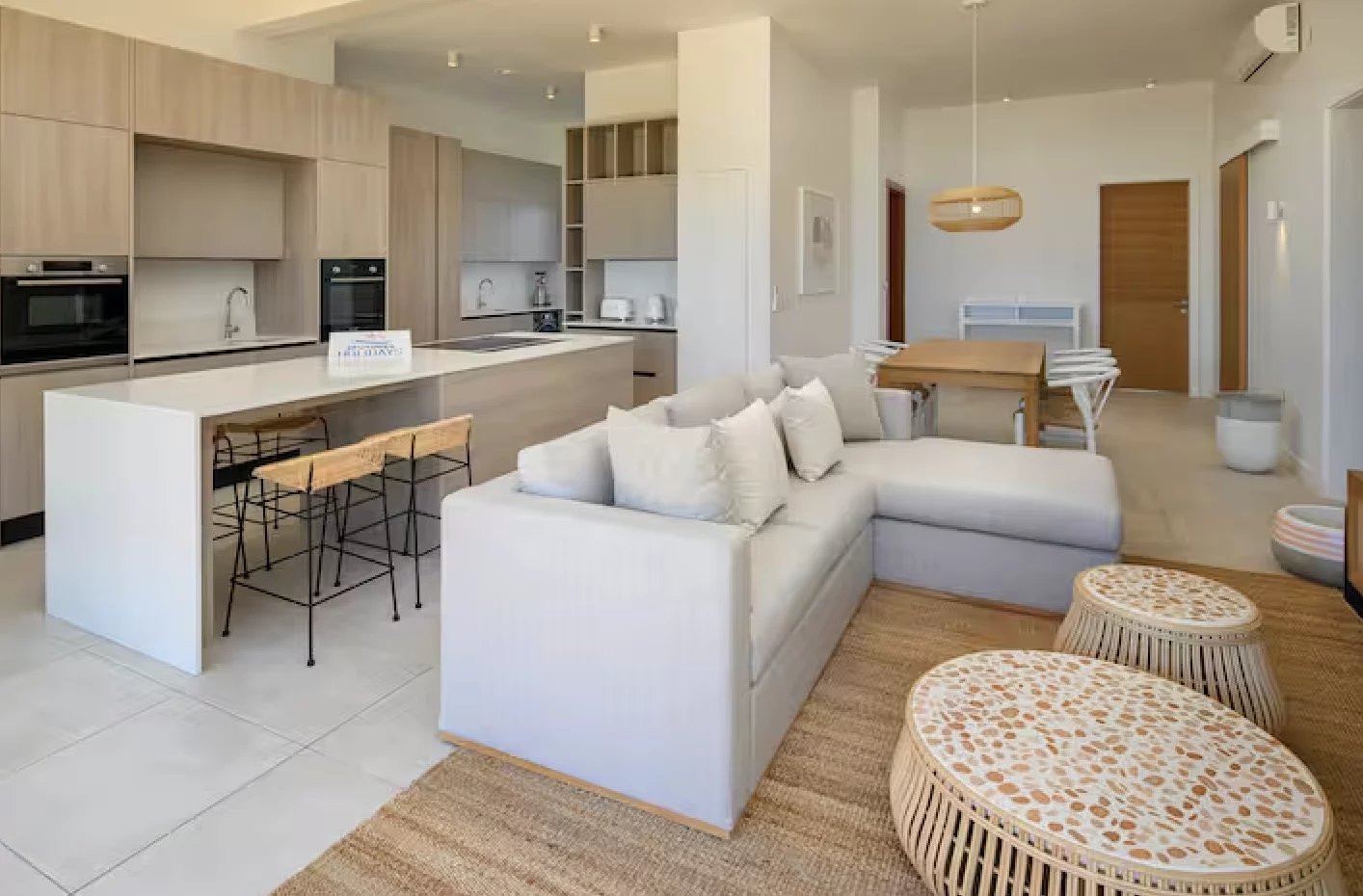 Niché au dernier étage d’une résidence récente et sécurisée, avec ascenseur, piscine et court de tennis, ce bien allie confort, intimité et élégance. De beaux volumes de vie offrent un spacieux séjour lumineux, une salle à manger chaleureuse et une cuisine ouverte entièrement équipée donnant sur une grande terrasse face à la mer et au lagon — l’endroit idéal pour partager des moments inoubliables en famille ou entre amis.