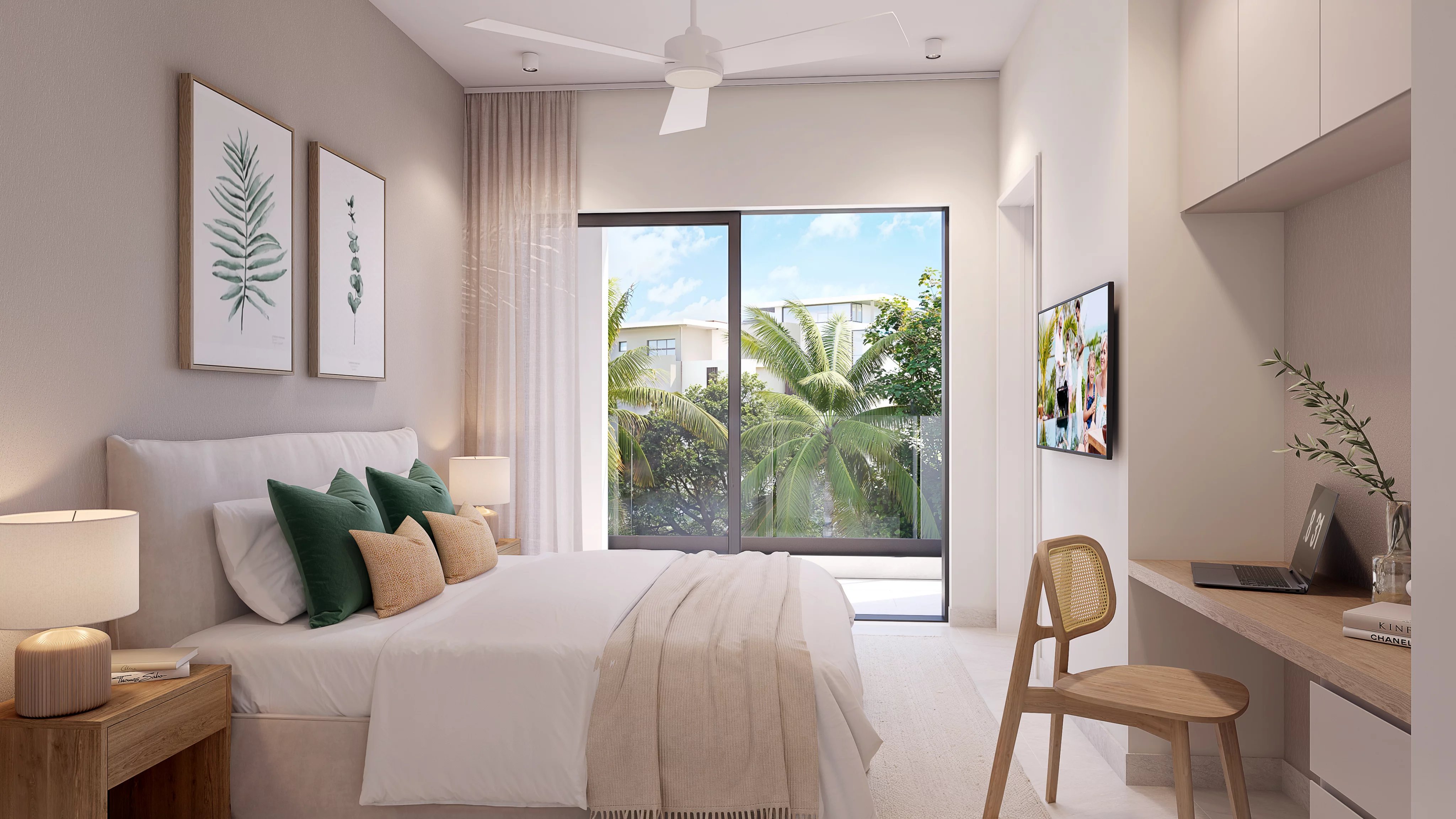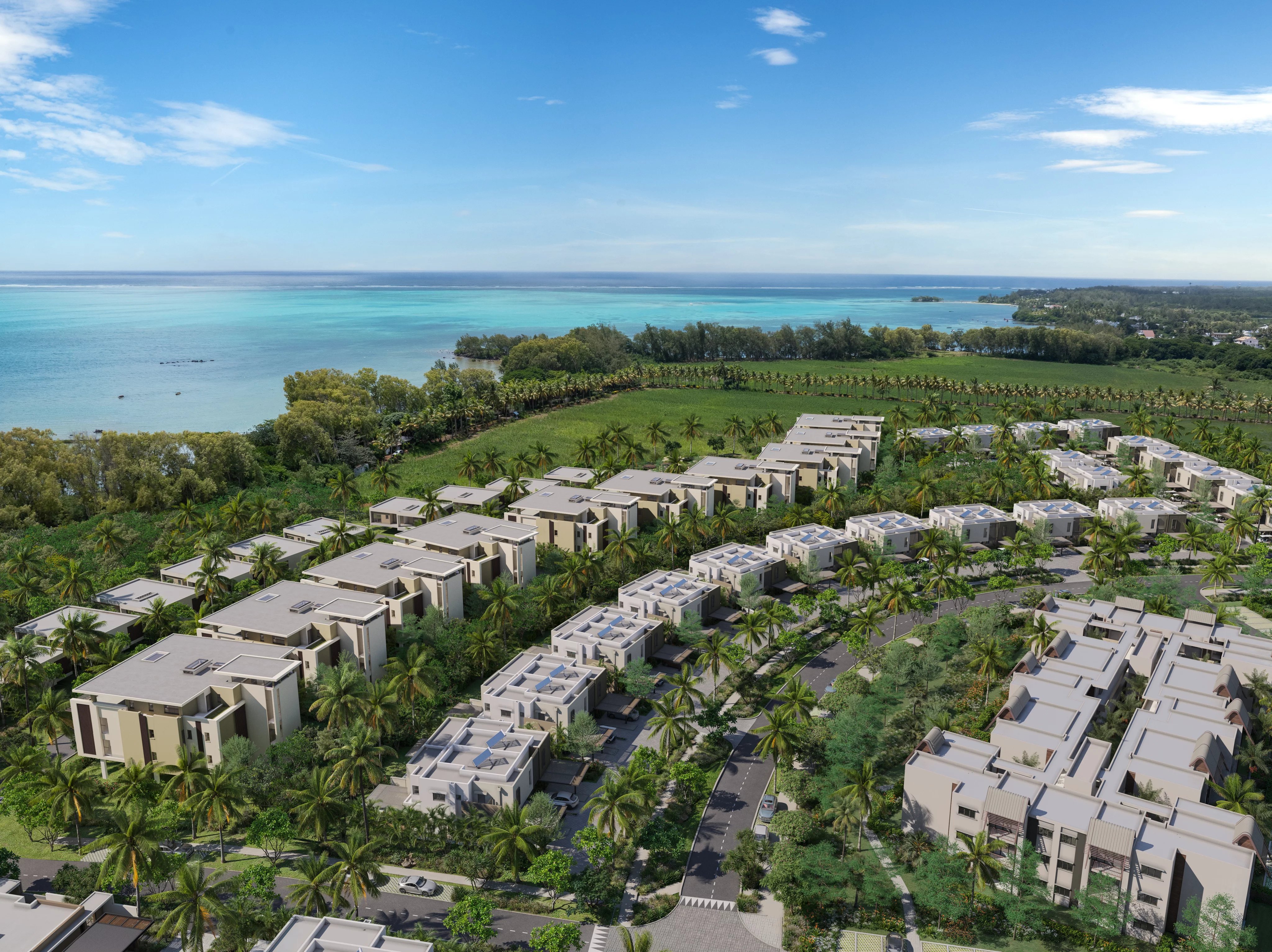 Pensé pour maximiser la lumière et la fluidité des espaces, ces résidences adoptent une configuration ouverte où la cuisine, la salle à manger et le séjour s’enchaînent harmonieusement. Cette continuité se prolonge vers la terrasse couverte et le jardin, créant une véritable expérience de vie entre intérieur et extérieur. Que ce soit pour un café matinal paisible ou une soirée détendue, chaque espace s’adapte au rythme du quotidien.