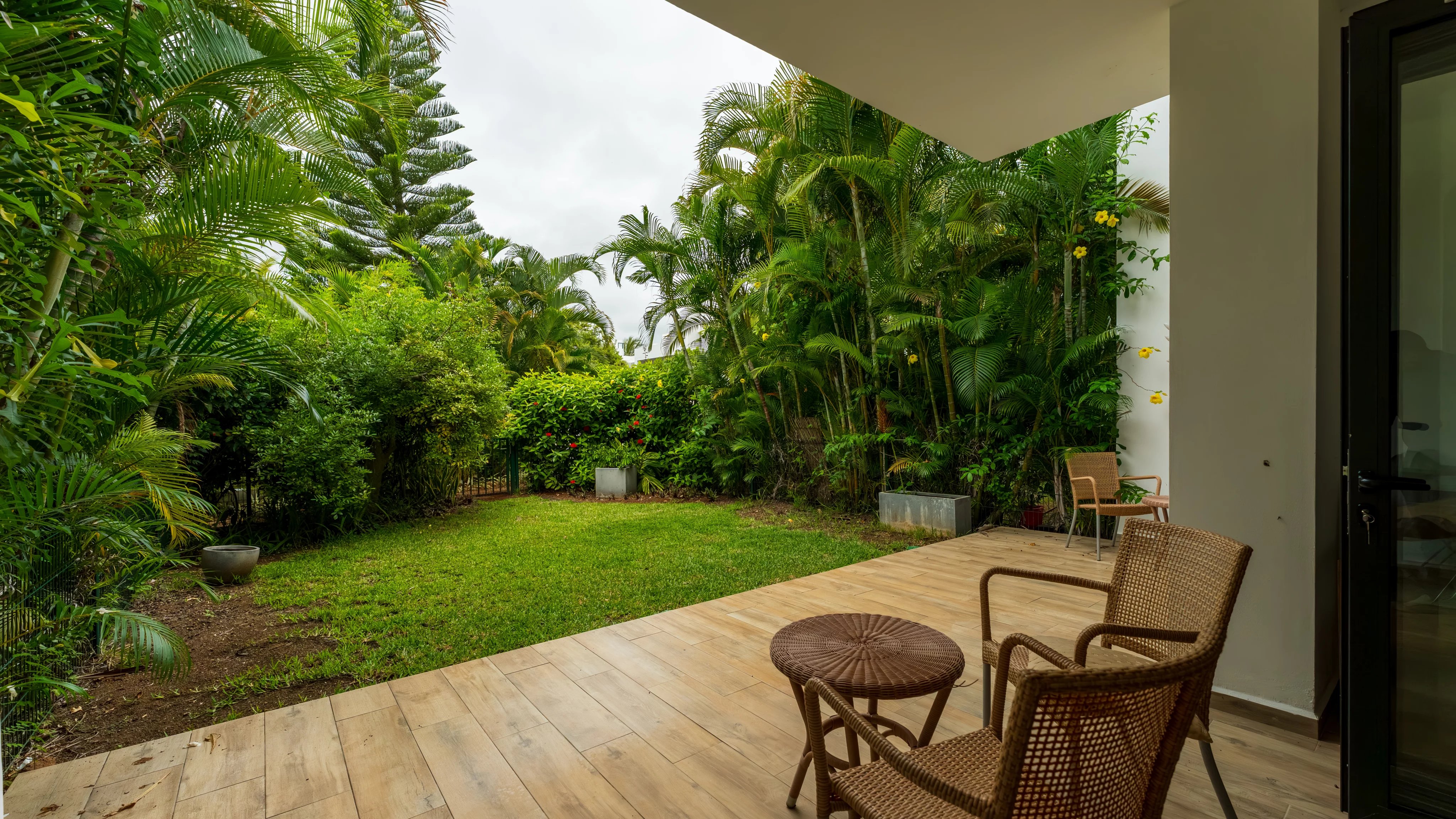 Répartie sur trois niveaux, la propriété offre une superficie totale de 193 m² (GIA incluant vérandas et balcons couverts), avec une surface notariée de 164,56 m². Elle repose sur une parcelle d’environ 213 m², comprenant un jardin privé clos d’environ 100 m², ainsi qu’un rooftop privatif de 42 m² offrant une vue panoramique sur l’océan Indien.