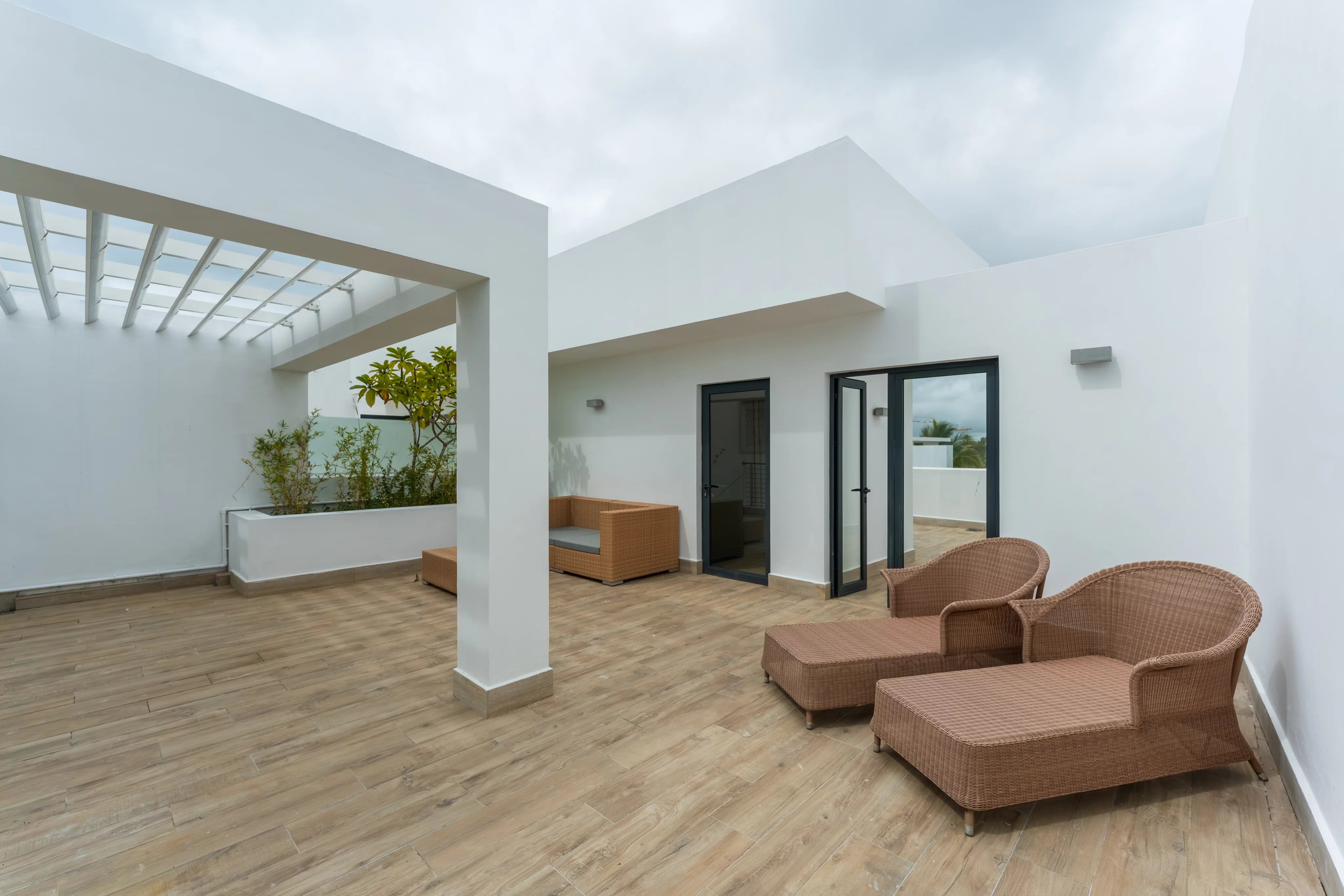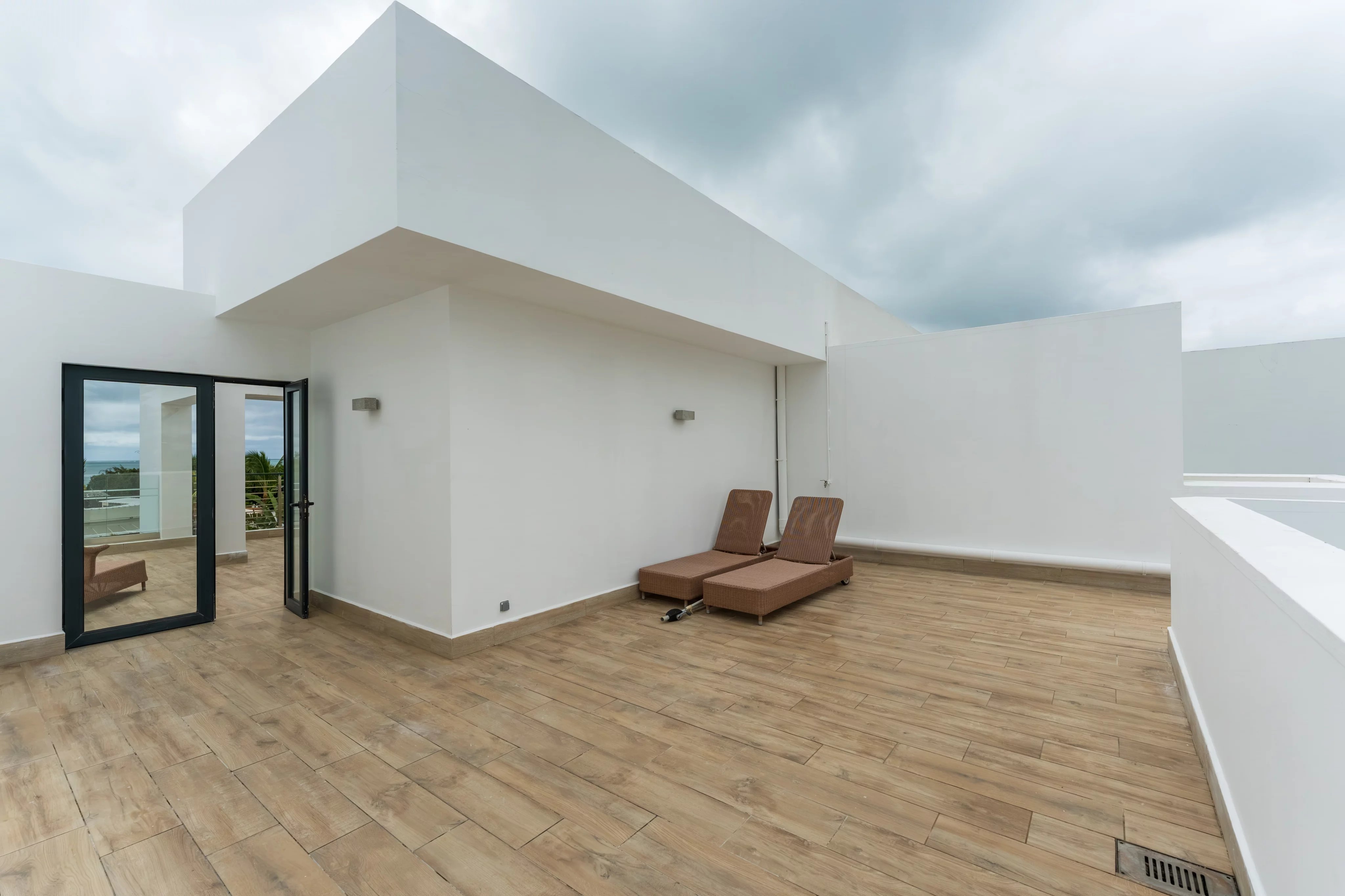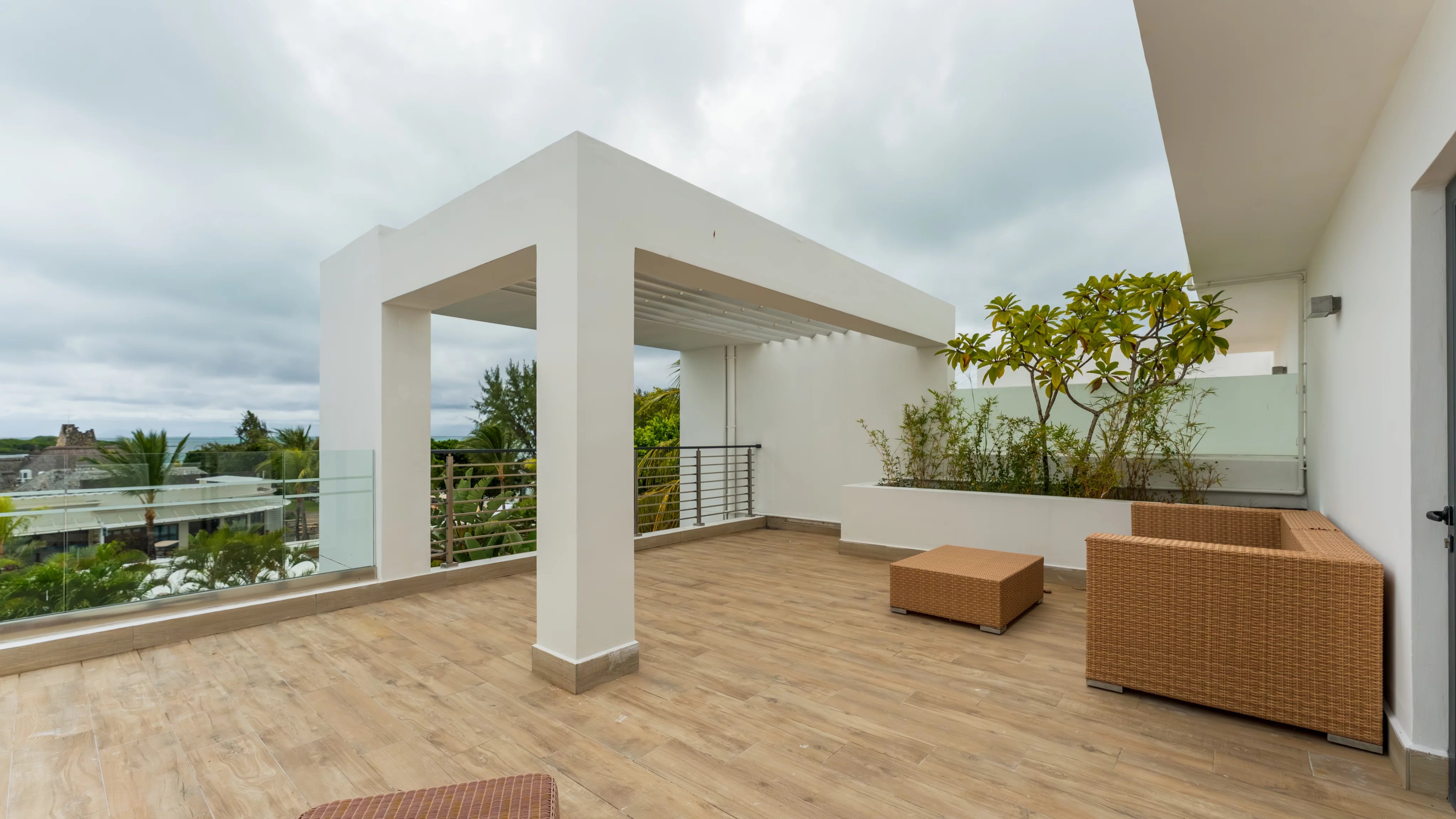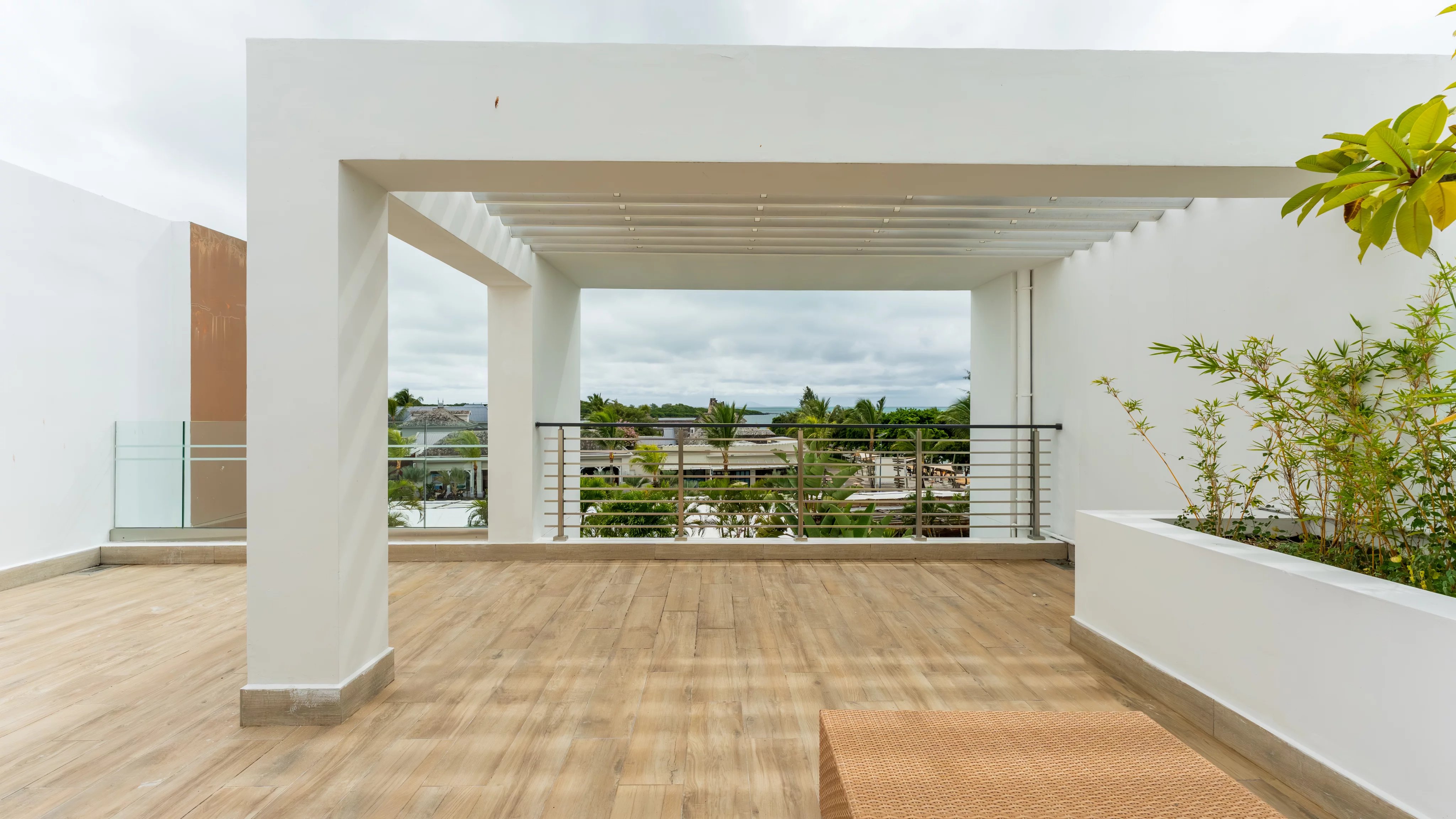 Le dernier niveau dévoile un rooftop privatif exceptionnel, véritable espace de vie à ciel ouvert avec vue panoramique sur la mer, le village et le lagon, parfait pour se détendre ou profiter de soirées au coucher du soleil.