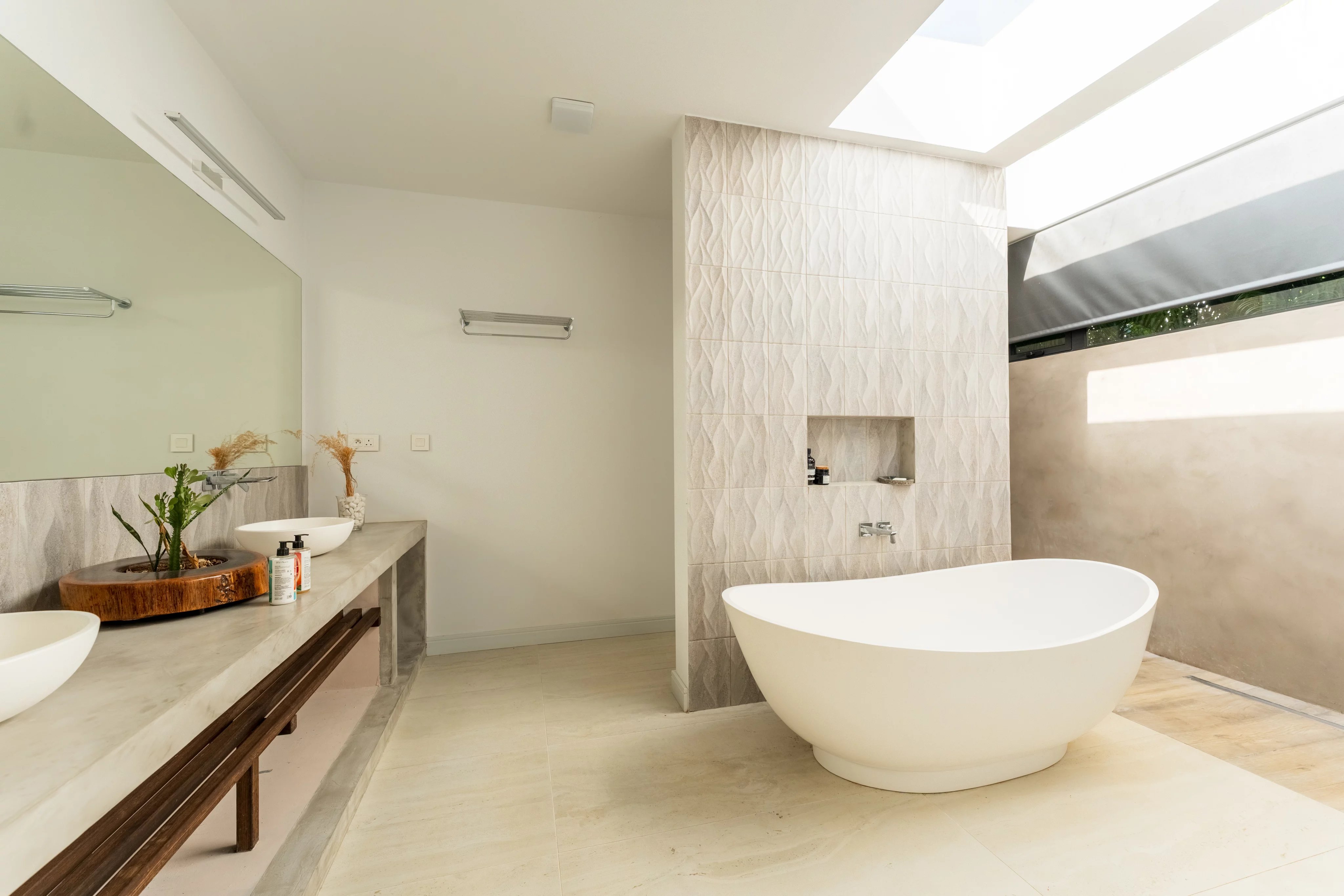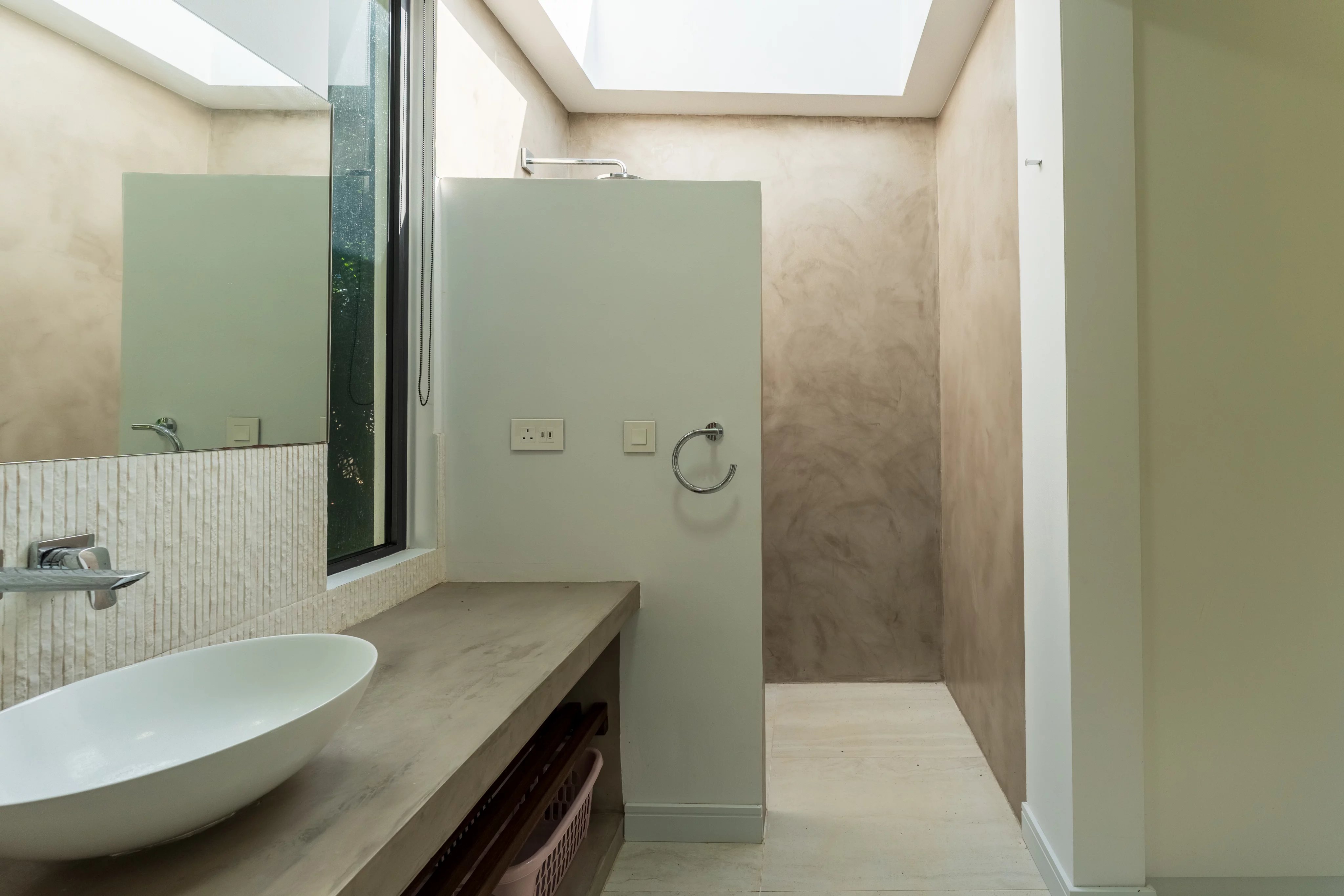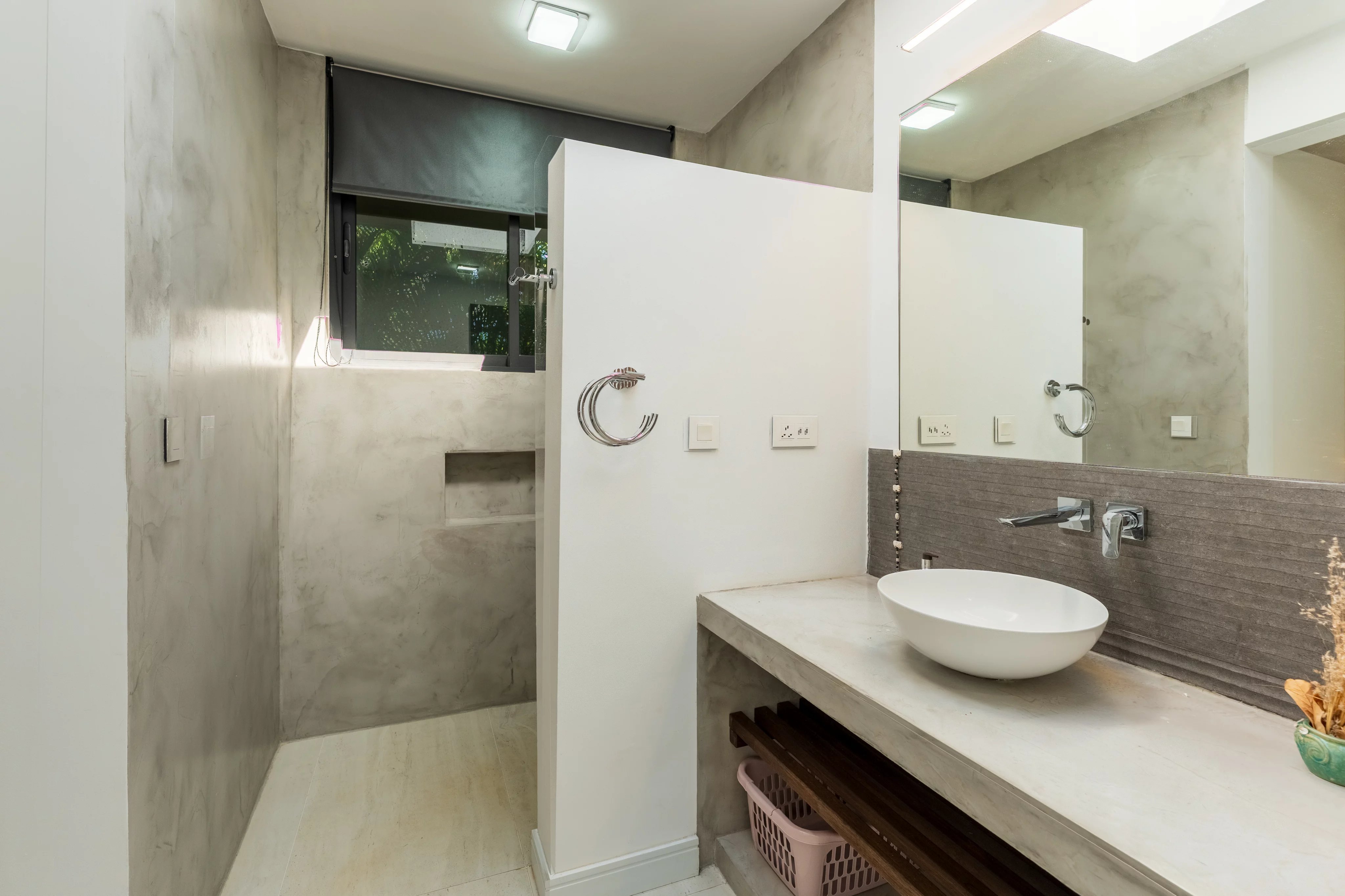 La villa dispose de 4 chambres avec salle de bain, d'un séjour lumineux ouvert sur la terrasse, le jardin et la piscine. Les grandes ouvertures permettent de profiter pleinement de la vue sur le parcours et de la lumière naturelle. Les quatre chambres avec salle de bain sont confortables et spacieuses.