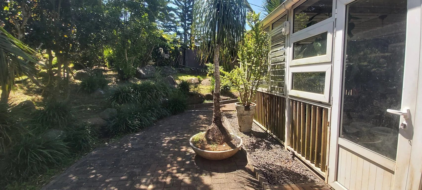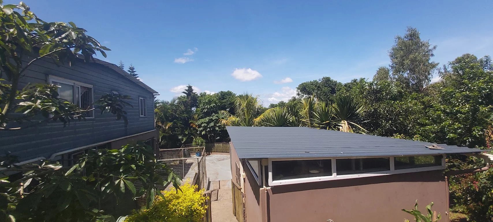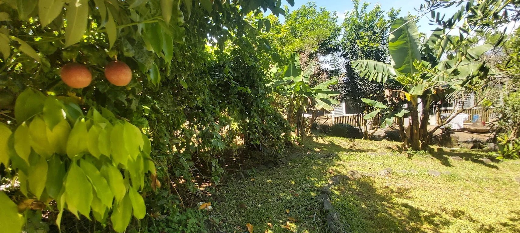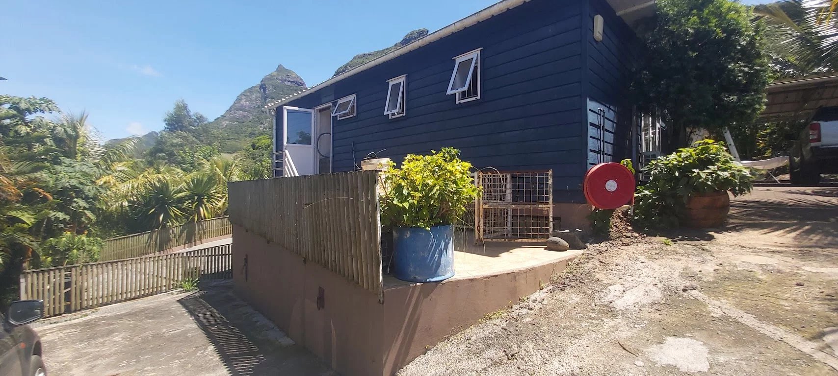 Une maison conteneur bien aménagée occupe la zone résidentielle (10 perches converties), avec un séjour, une cuisine ouverte sur terrasse, deux chambres (dont une en suite), et une buanderie.
