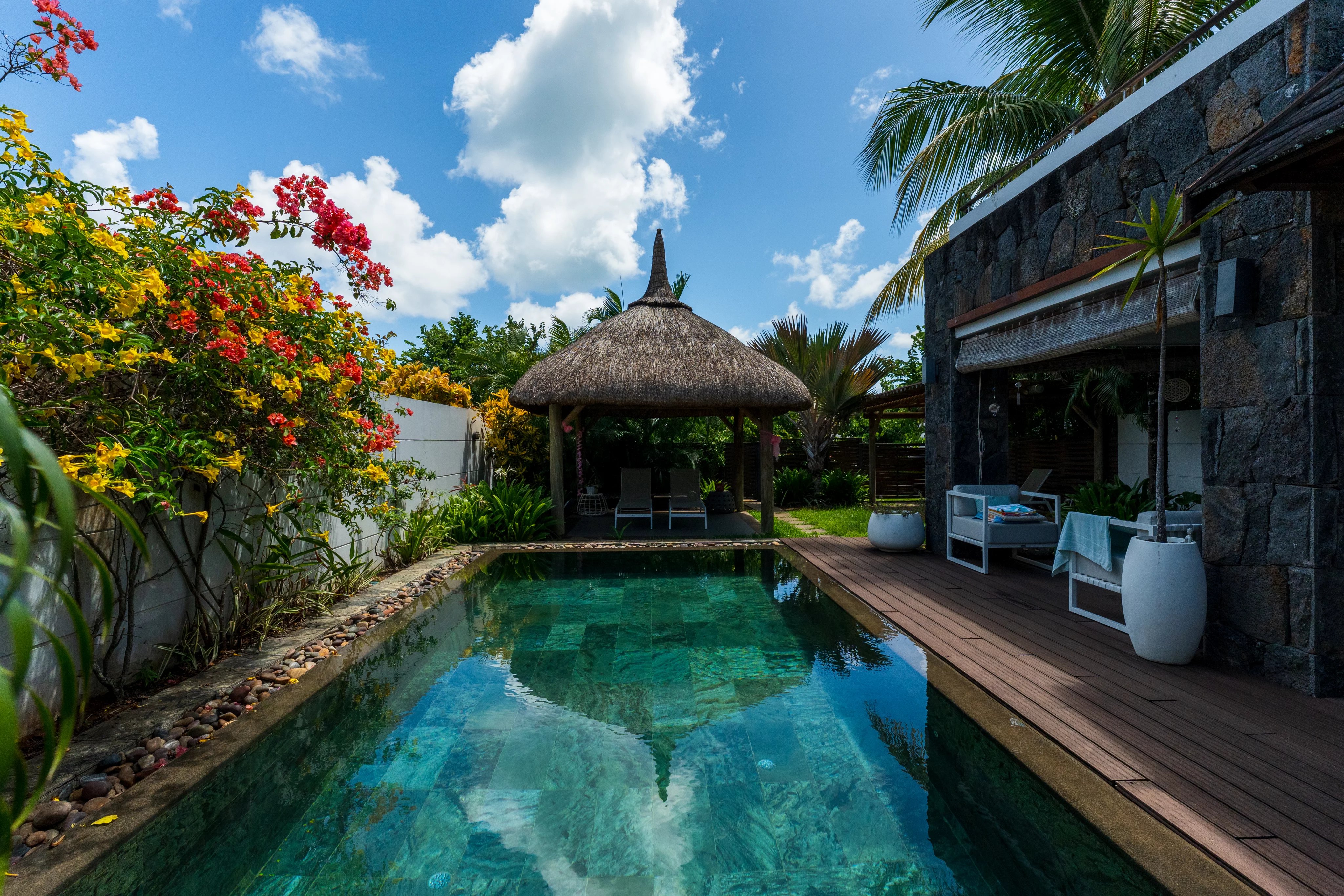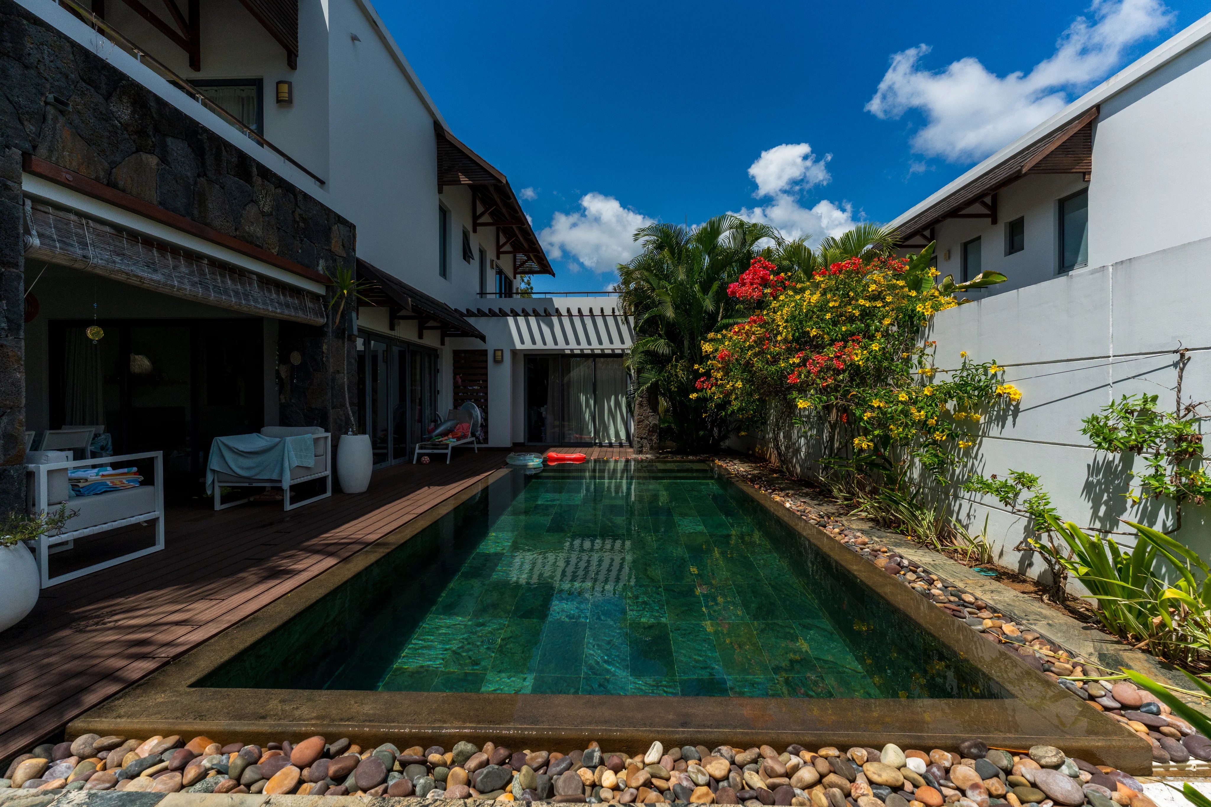 Située à environ 200 mètres de la plus grande plage du nord et à seulement quelques minutes du centre-ville de Grand Baie, cette villa mitoyenne fait partie d'une résidence idéalement placée.