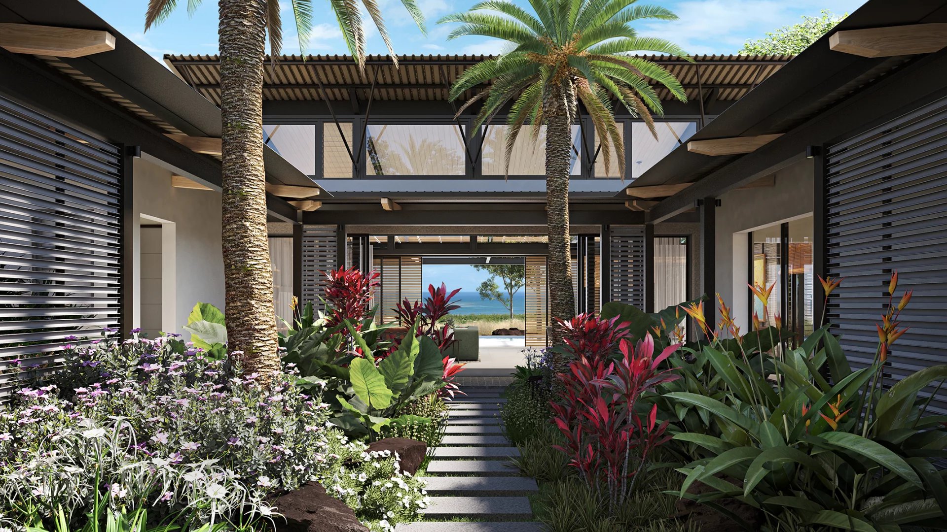 Cette villa de 430 m² est implantée sur un terrain de 2,007 m² et jouxte un golf 18 trous. Orientée à l'ouest et offrant de magnifiques couchers de soleil, ce concept de villa a l'avantage d'être protégé des vents dominants tout en offrant une belle lumière naturelle. Pour permettre à leurs propriétaires de profiter pleinement des chaudes après-midi de la région de Riviere Noire, ces villas sont adaptées avec de grandes pergolas et des stores verticaux pour ralentir les ardeurs du soleil.