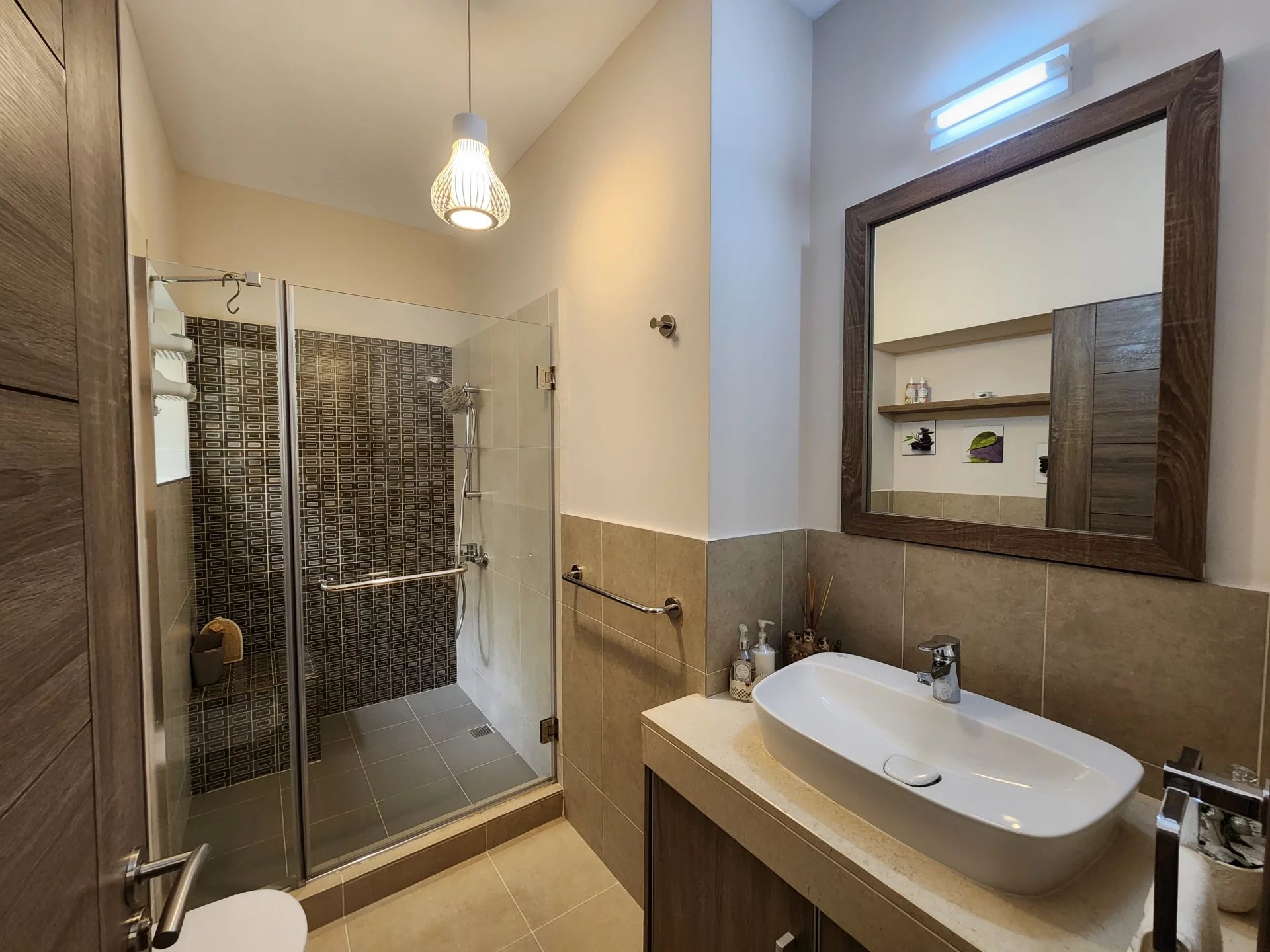 Cet appartement cosy est doté d'une entrée menant à une salle à manger et un salon climatisé donnant sur un balcon avec une belle vue. La chambre principale en suite climatisée donne sur un autre petit balcon. Une chambre en suite climatisée additionnelle, une cuisine américaine très bien équipée avec sa buanderie attenante et un parking couvert complètent ce bien.