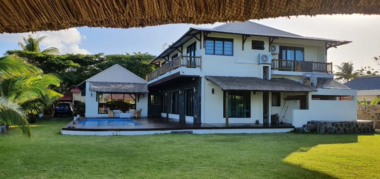 Située à Poste de Flacq, dans un environnement résidentiel paisible, cette villa de 400 m² répartie sur deux niveaux allie confort et fonctionnalité.