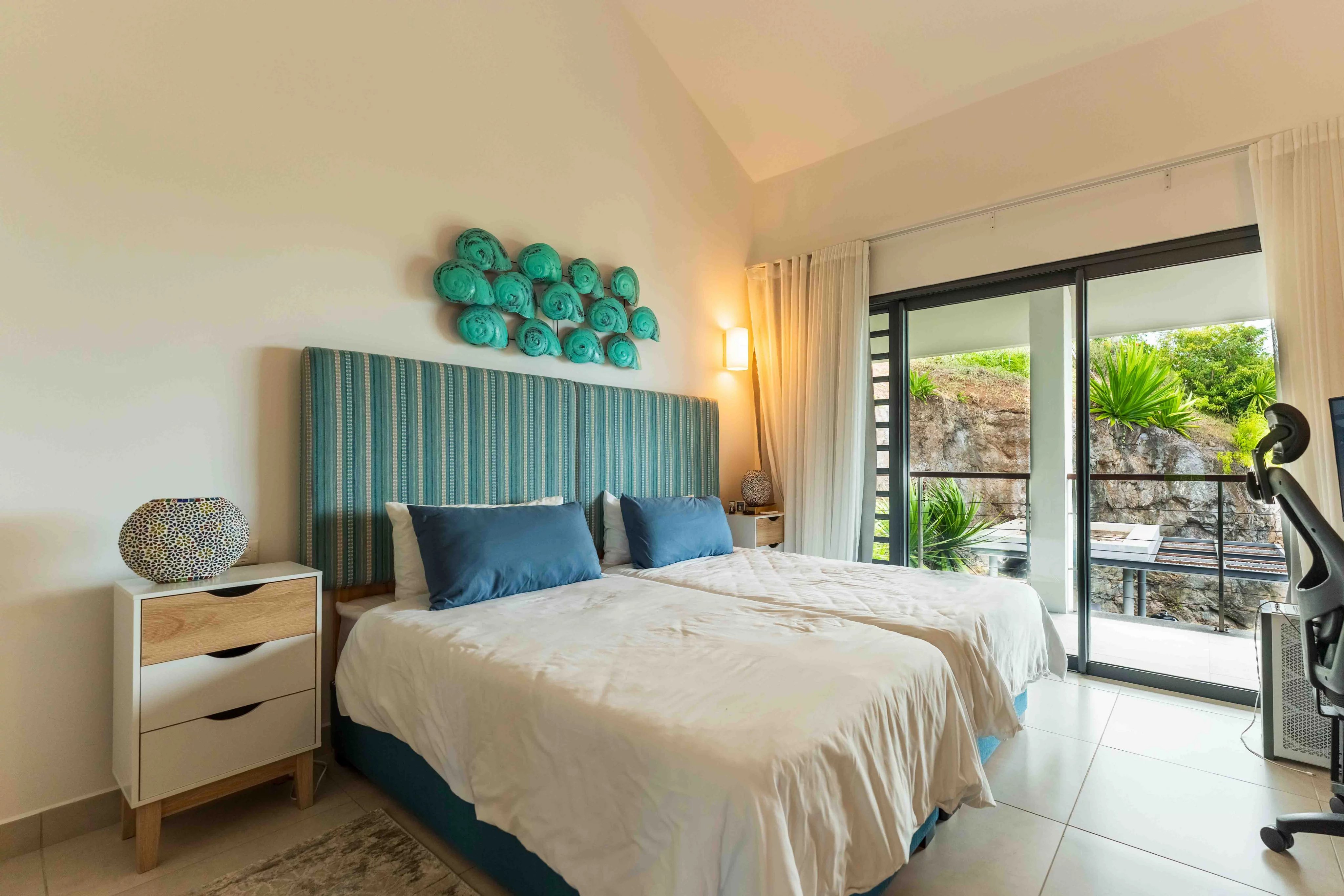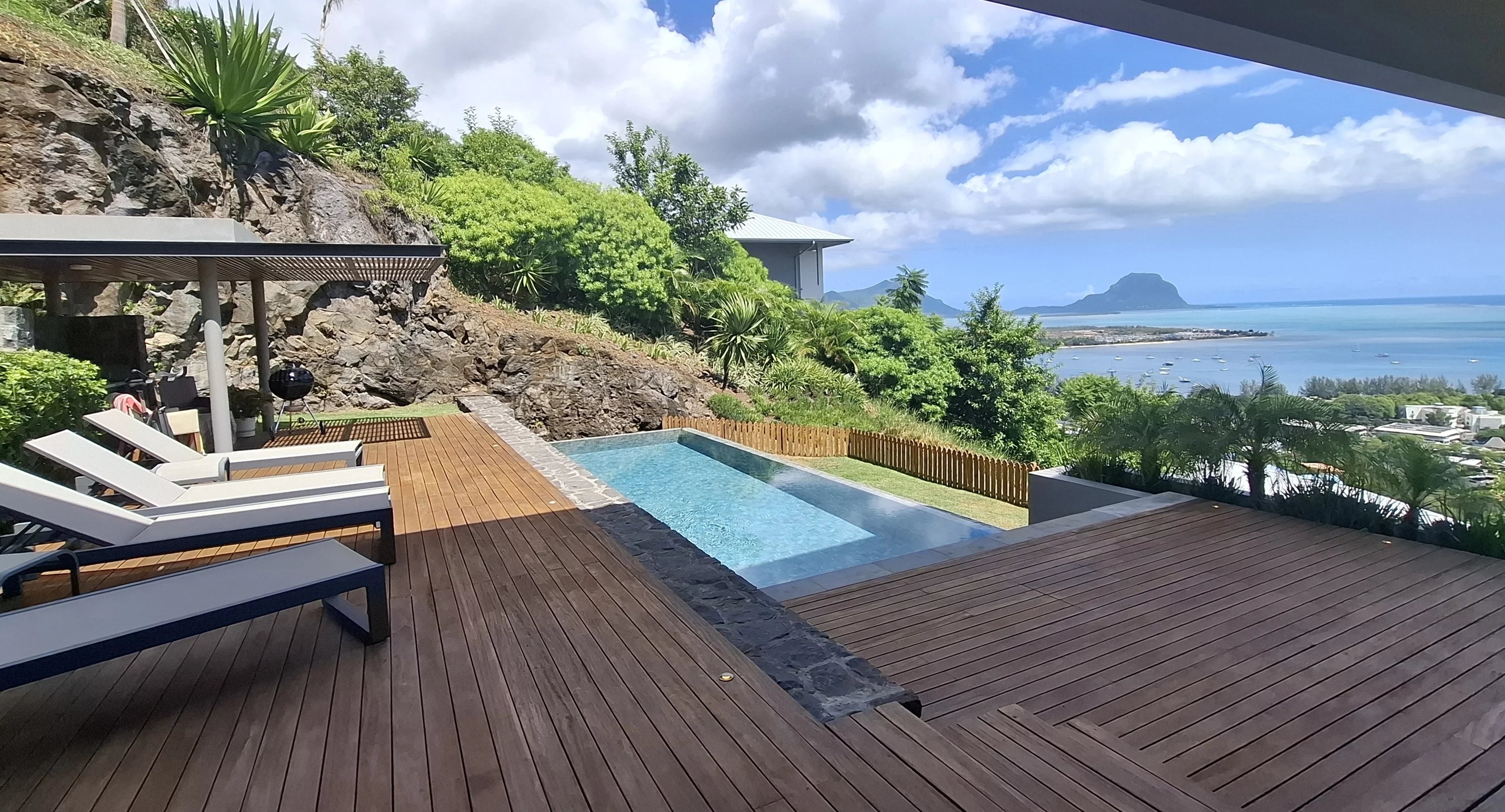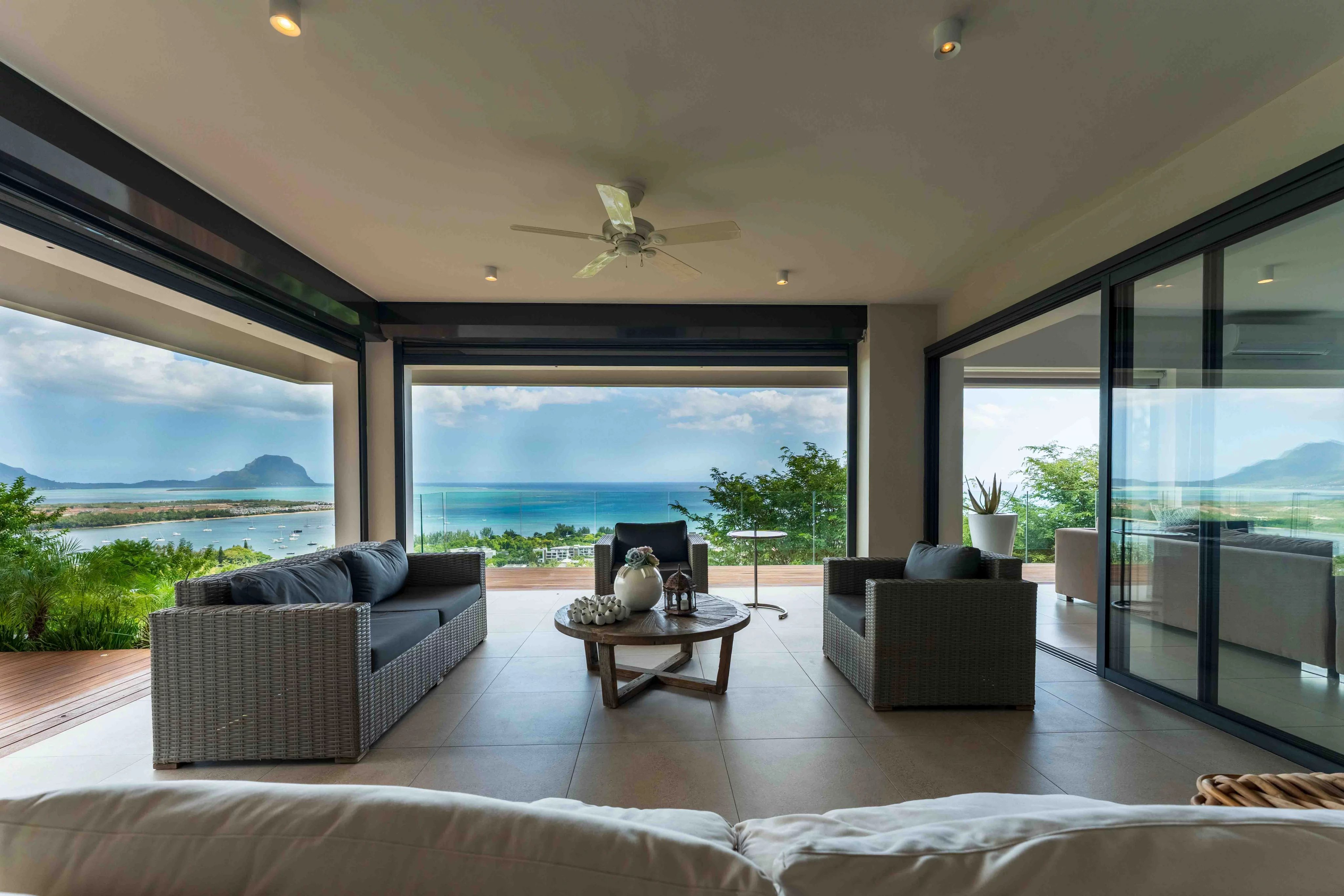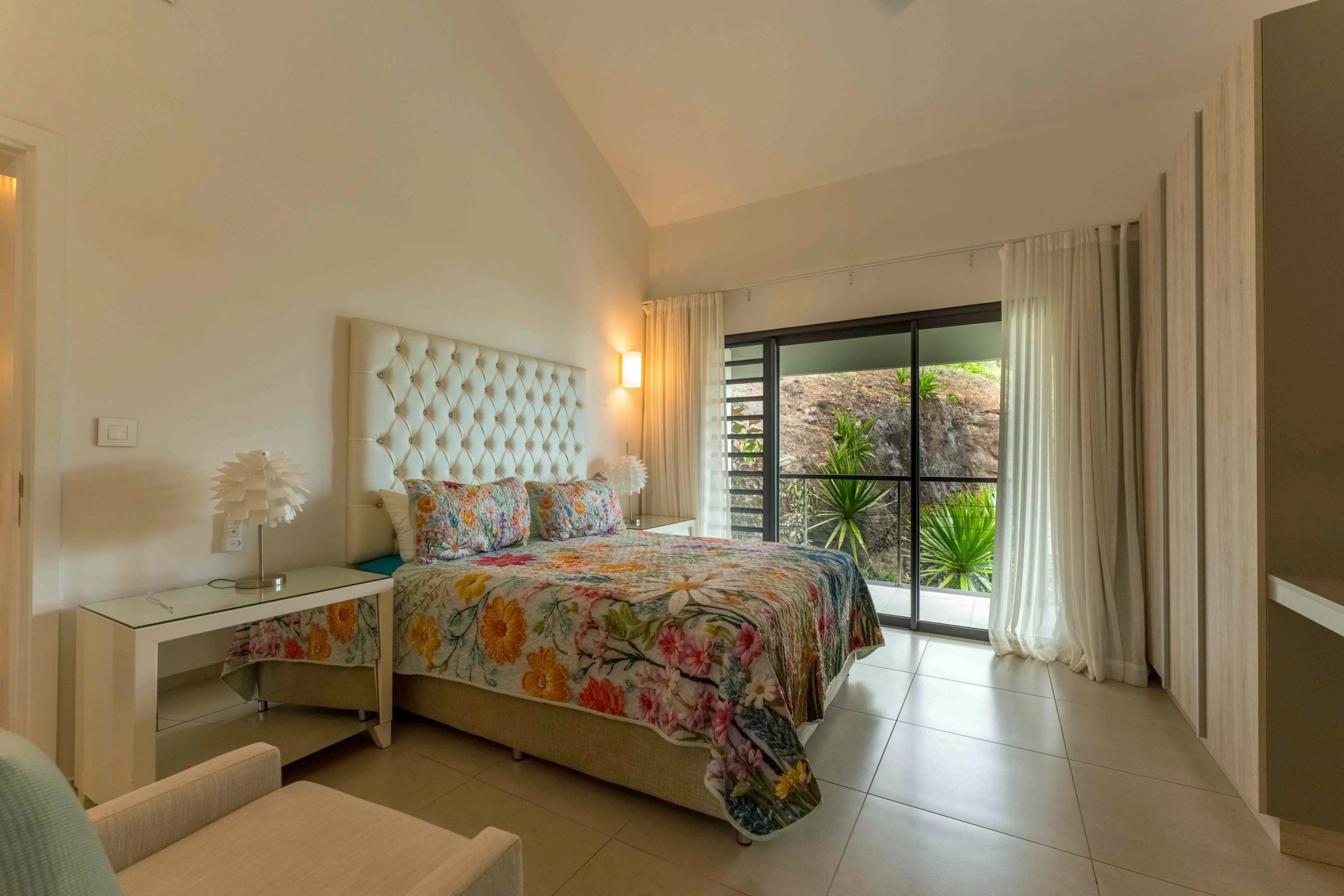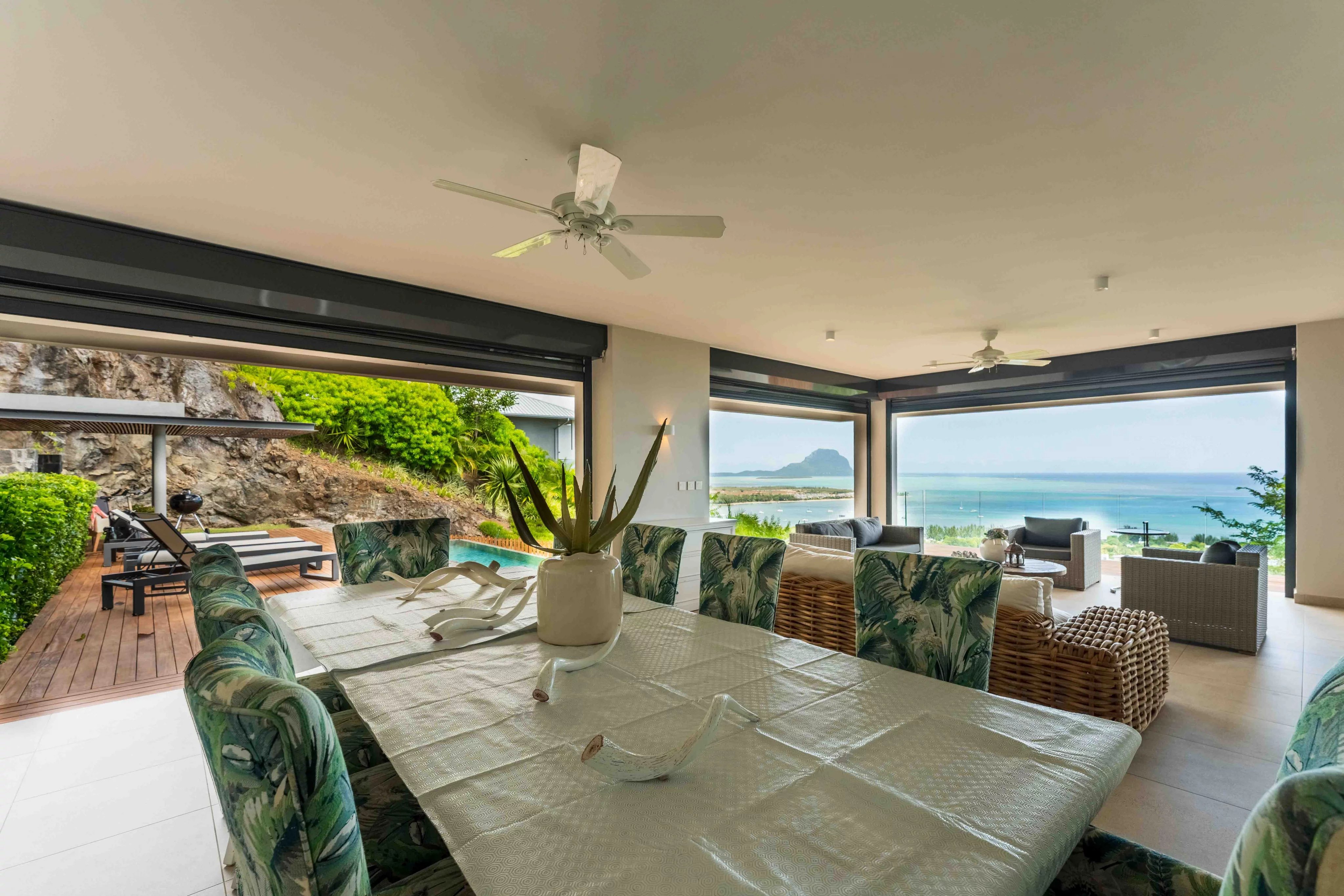En retrait de la villa principale, un ravissant cottage indépendant offre une suite complète (chambre et salle de bains attenante). Cet espace est idéal pour accueillir des invités en toute intimité tout en profitant du cadre majestueux de la montagne ainsi que de la baie de Rivière Noire et du Morne.