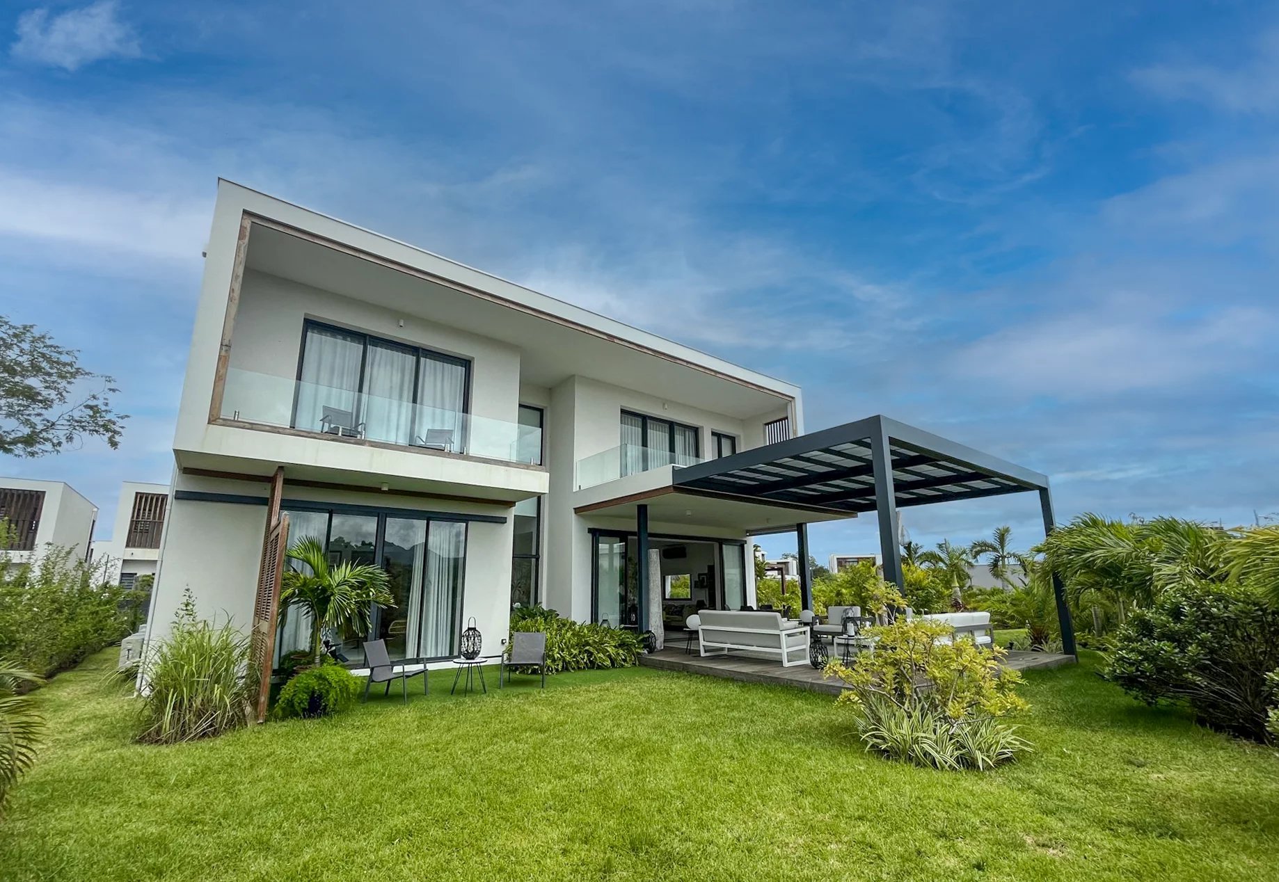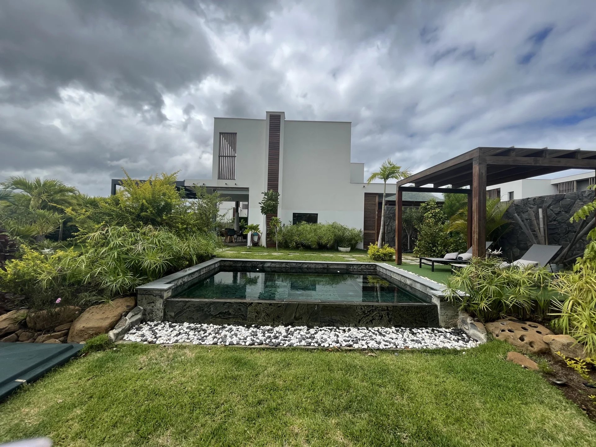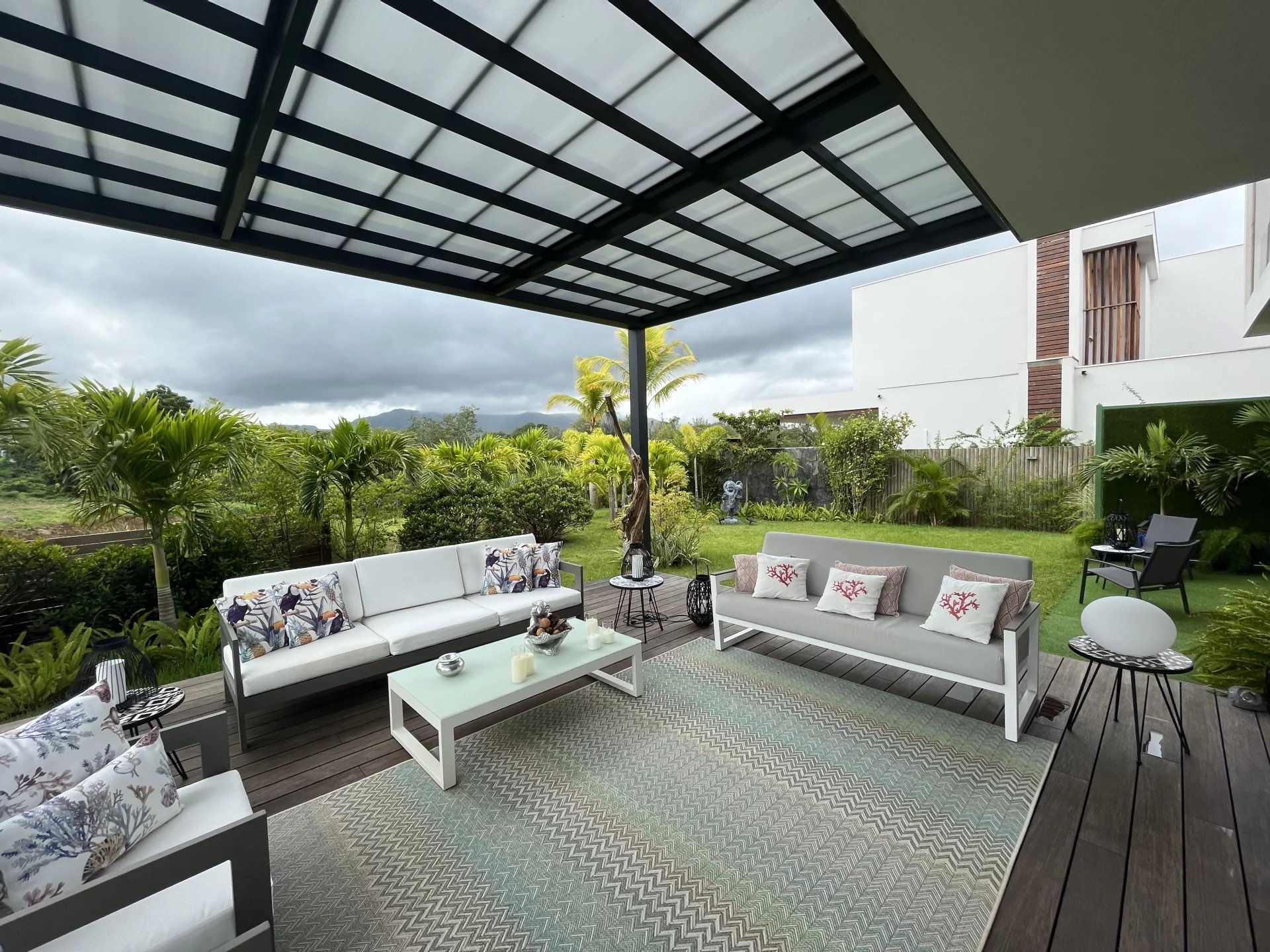 Située au sein de 26 hectares de végétation luxuriante pour un développement harmonieux et durable, cette villa contemporaine de 276 m² sur un terrain de 860 m² offre une vue sur un jardin planté avec un certain goût et la montagne du Rempart.