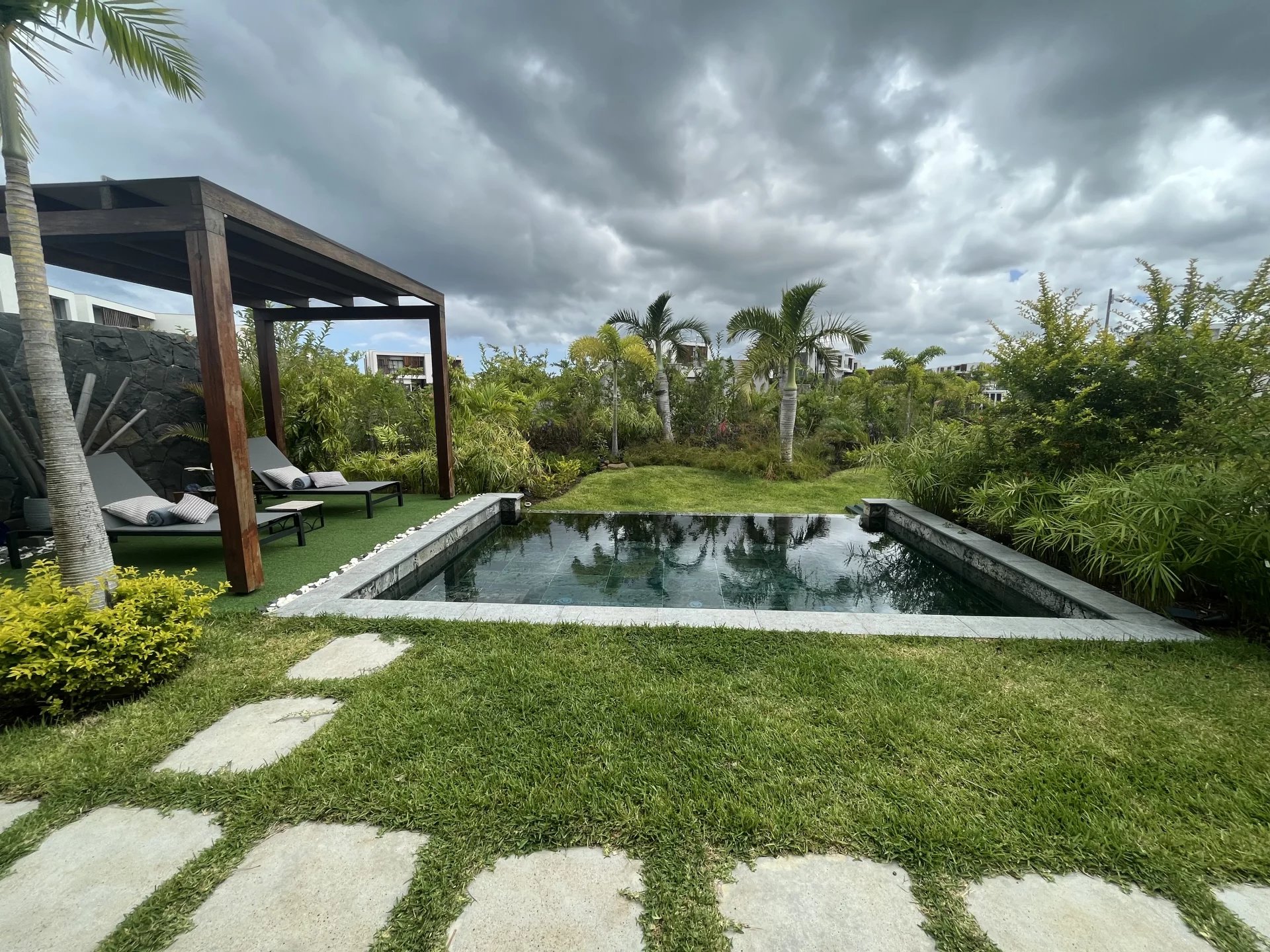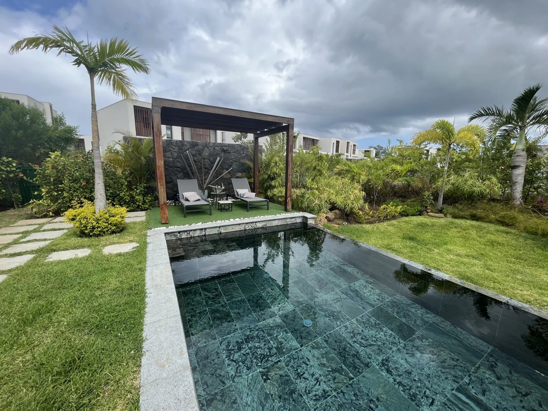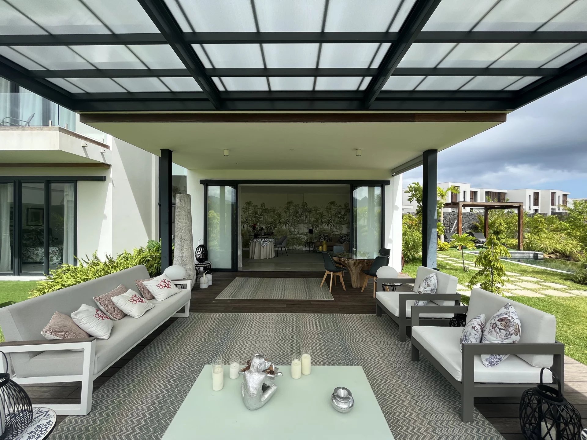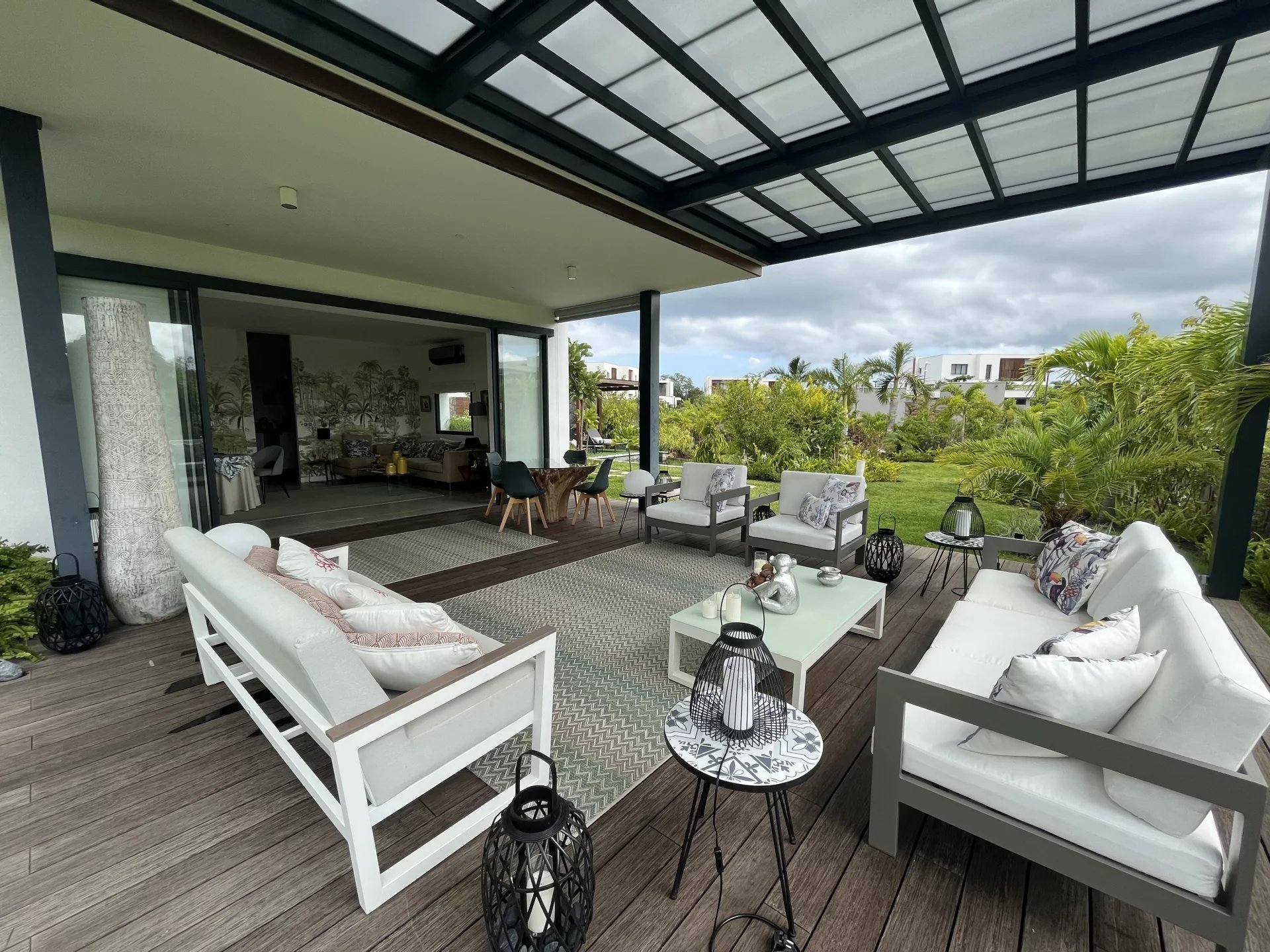 Située au sein de 26 hectares de végétation luxuriante pour un développement harmonieux et durable, cette villa contemporaine de 276 m² sur un terrain de 860 m² offre une vue sur un jardin planté avec un certain goût et la montagne du Rempart.