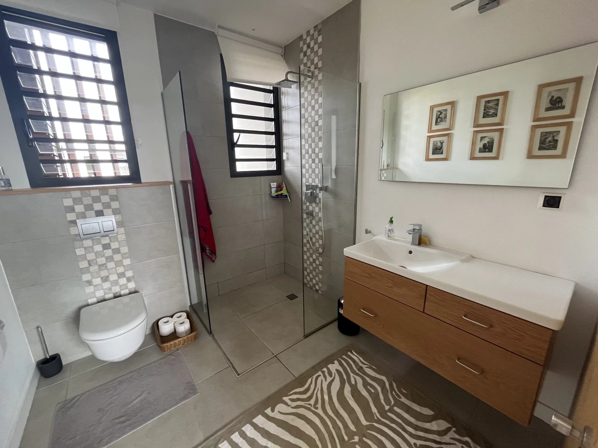 Dans un quartier populaire et recherché, cette villa aux prestations raffinées et décorées avec goût bénéficie d'un accès direct à la future Smart City de Cap Tamarin, à proximité du golf de Tamarina, d'un centre commercial et d'un centre sportif.