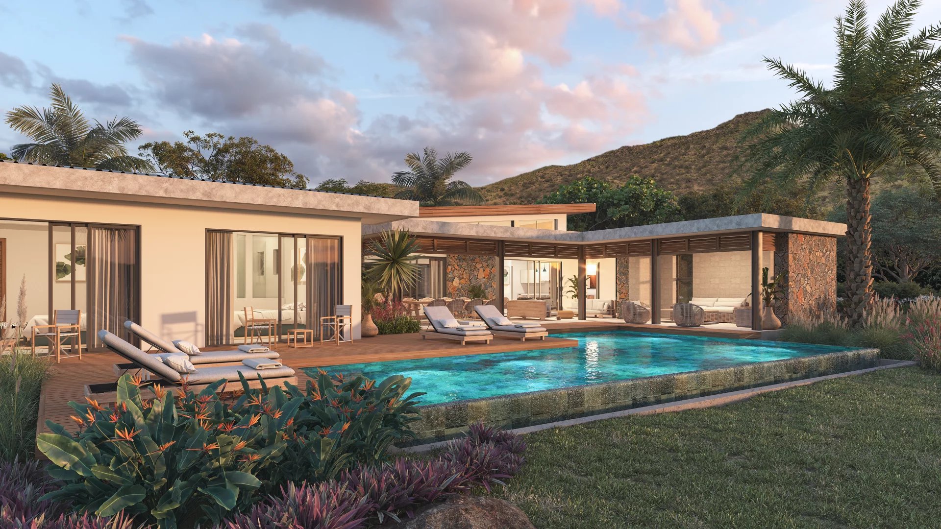 La résidence bénéficie d’un emplacement magnifique avec vue panoramique sur les belles montagnes de Tamarin où tranquillité et repos sont les maîtres mots.