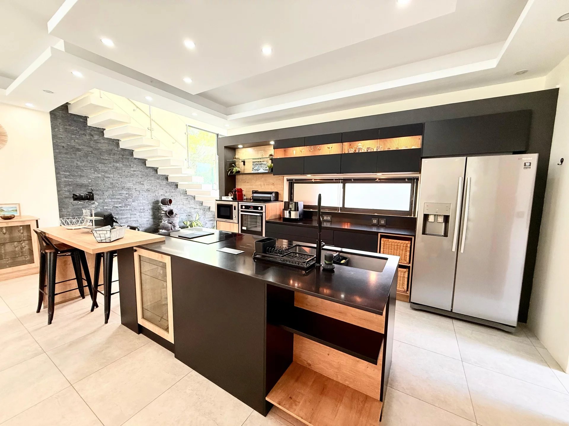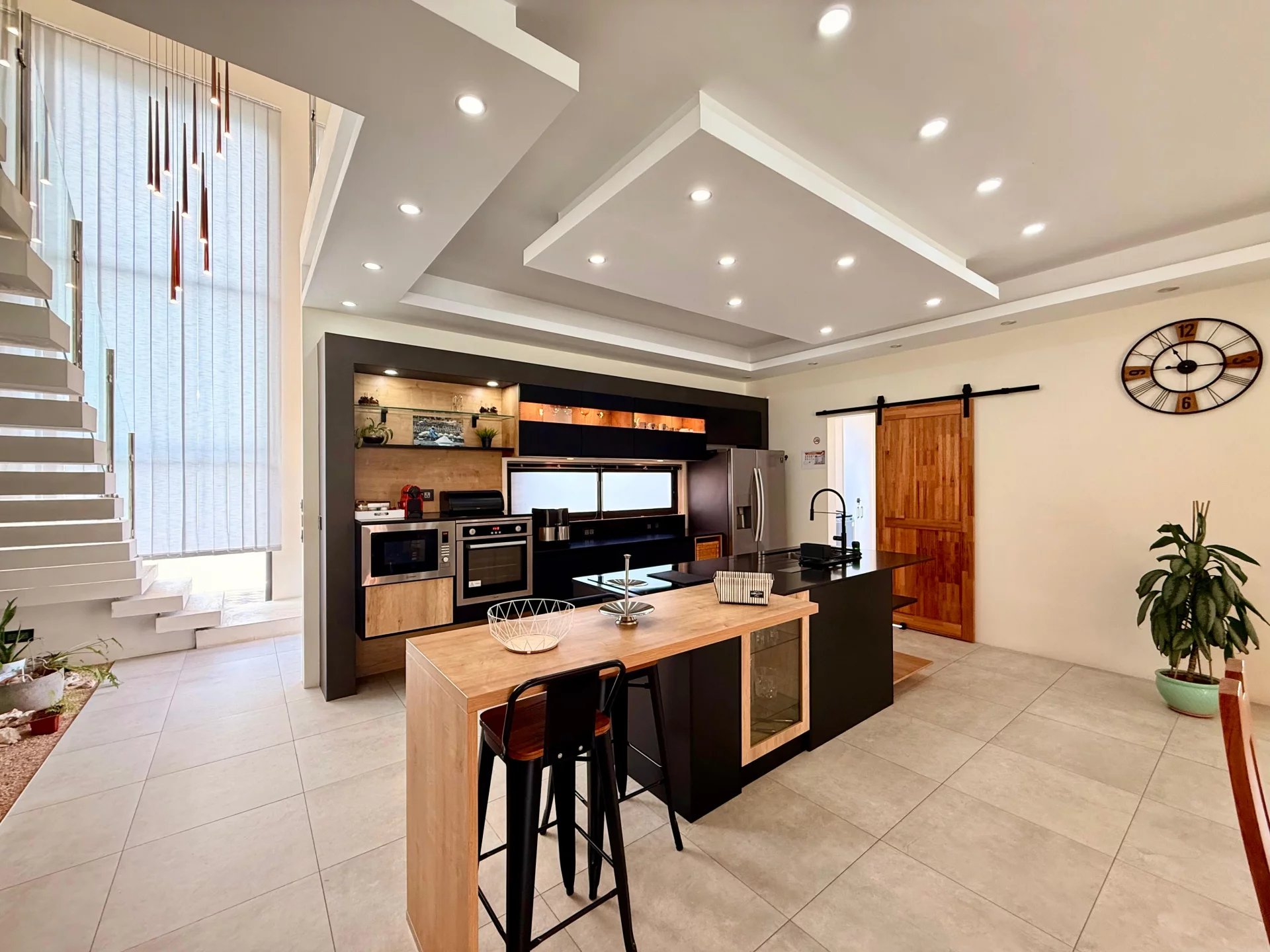 Des espaces lumineux et raffinés avec une cuisine Nolte très spacieuse, moderne et équipée d'une buanderie et d'une arrière-cuisine.