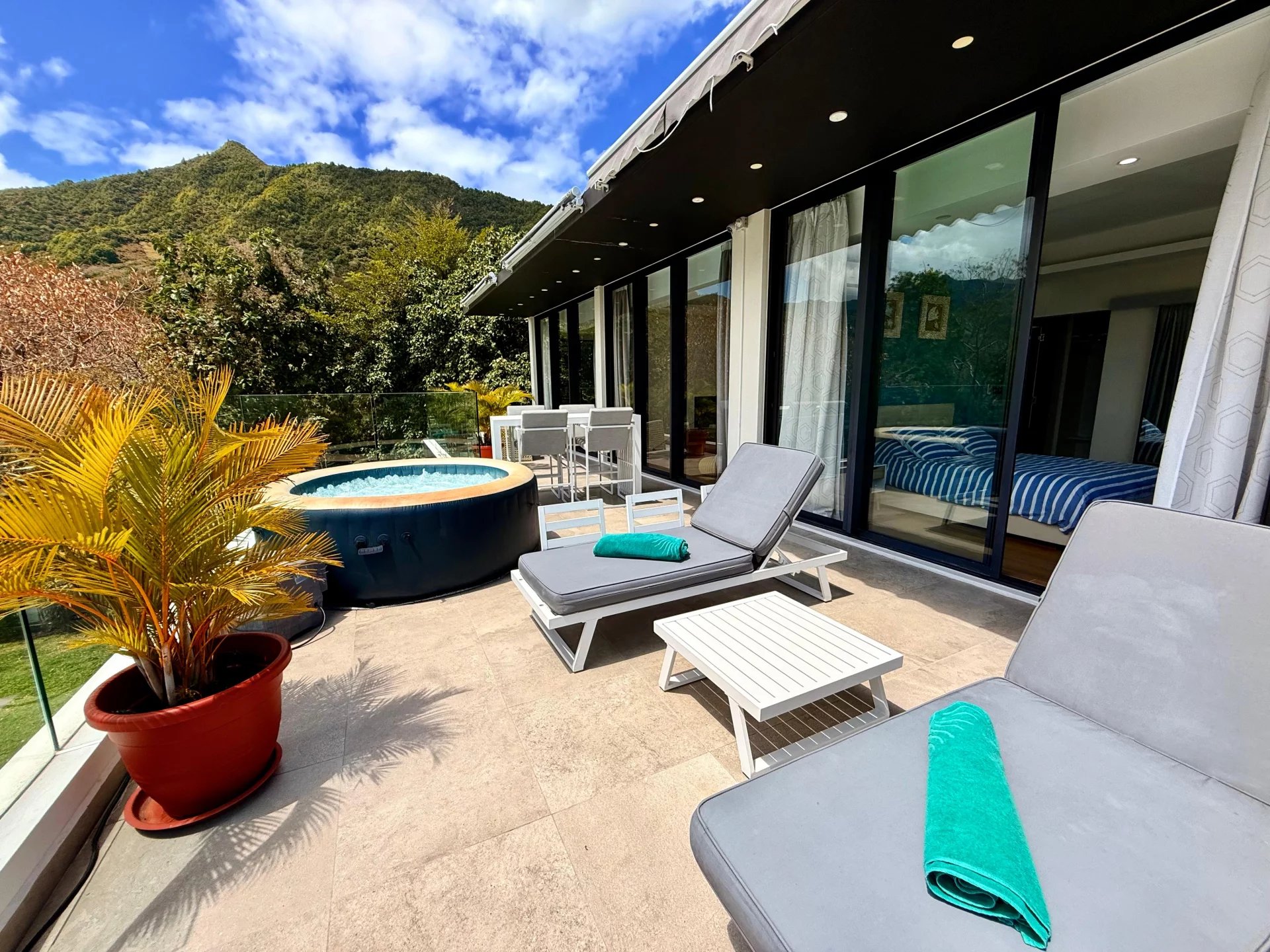 Un jacuzzi panoramique complète ce cadre idyllique.