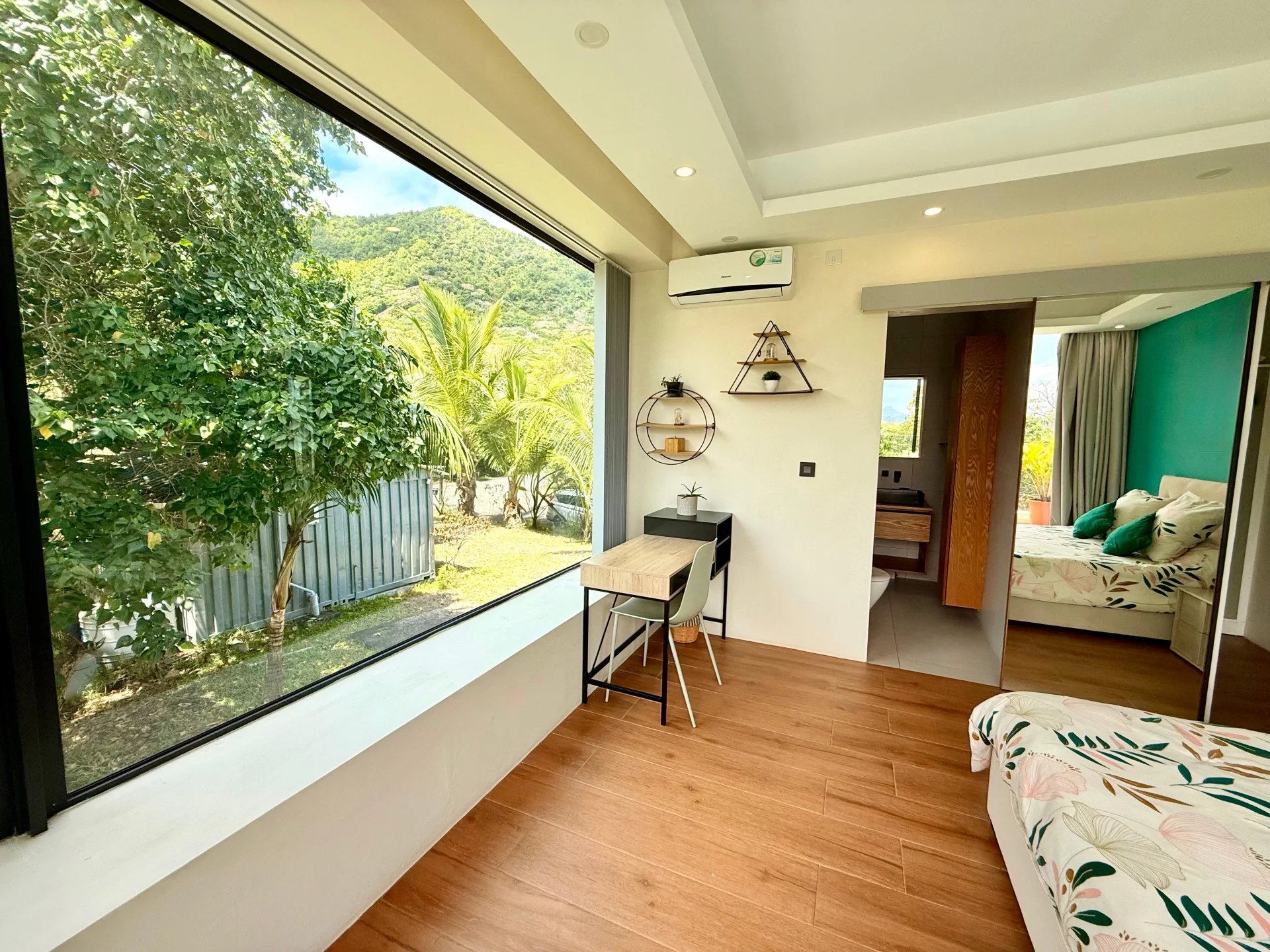 Découvrez une villa unique, nichée au cœur de La Gaulette, offrant un cadre naturel rare et une vue panoramique époustouflante sur Le Morne, La Tourelle, l’île aux Bénitiers et le lagon turquoise.