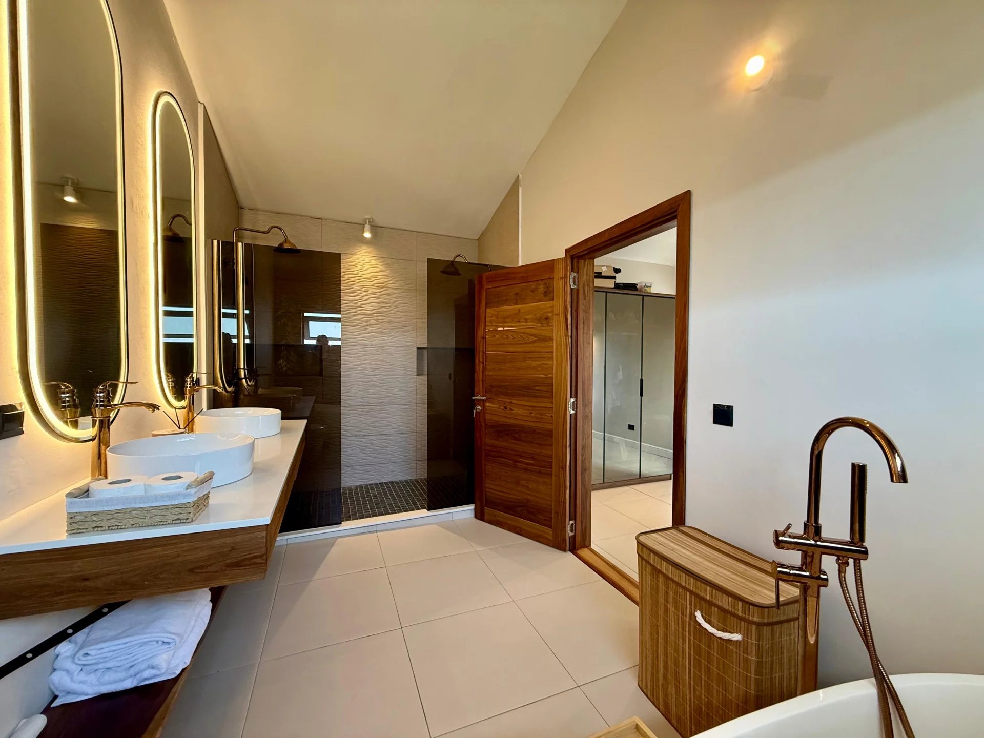 Édifiée sur un terrain de 760 m², la villa offre 365 m² d’espaces de vie soigneusement conçus pour un confort contemporain. Le rez-de-chaussée s’ouvre sur une vaste cuisine moderne entièrement aménagée et équipée, incluant une cave à vin et champagne premium, qui communique harmonieusement avec une salle à manger lumineuse et un salon cosy au style raffiné.