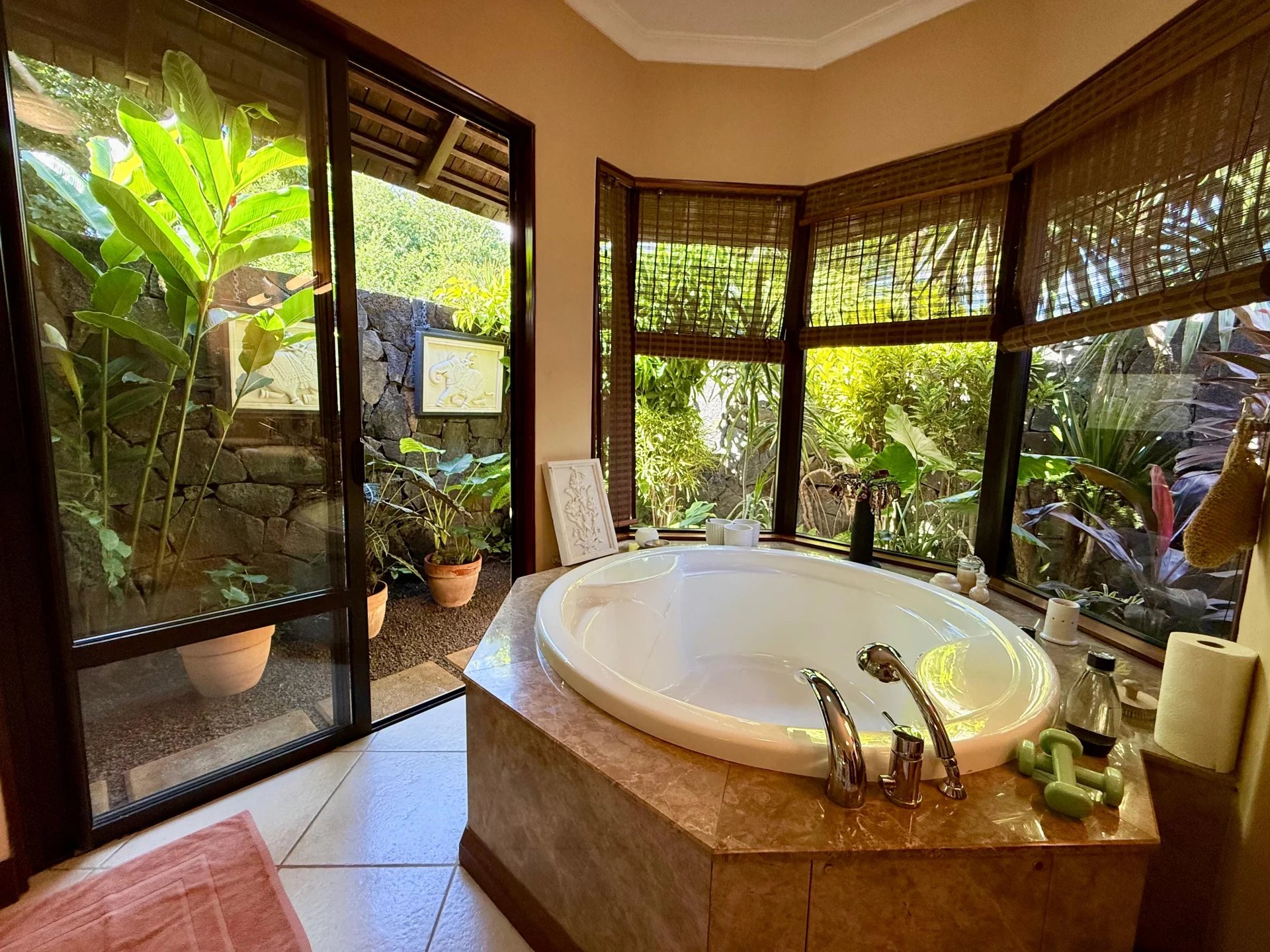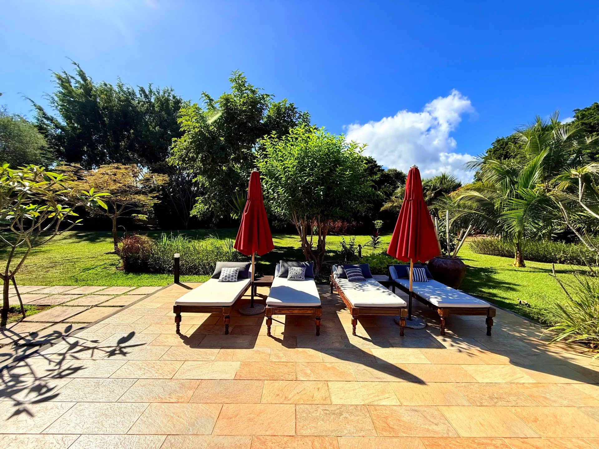 La villa comprend une résidence principale avec 3 chambres en suite, ainsi qu’un pavillon indépendant composé de 2 chambres en suite avec dressings. Un cabinet séparé a été aménagé en bureau spacieux, idéal pour le télétravail. Vous profiterez également d’une grande cuisine ouverte, de généreux espaces de vie intérieurs et extérieurs, d’une vaste piscine, d’un espace barbecue, et d’un jardin tropical luxuriant agrémenté d’arbres fruitiers.